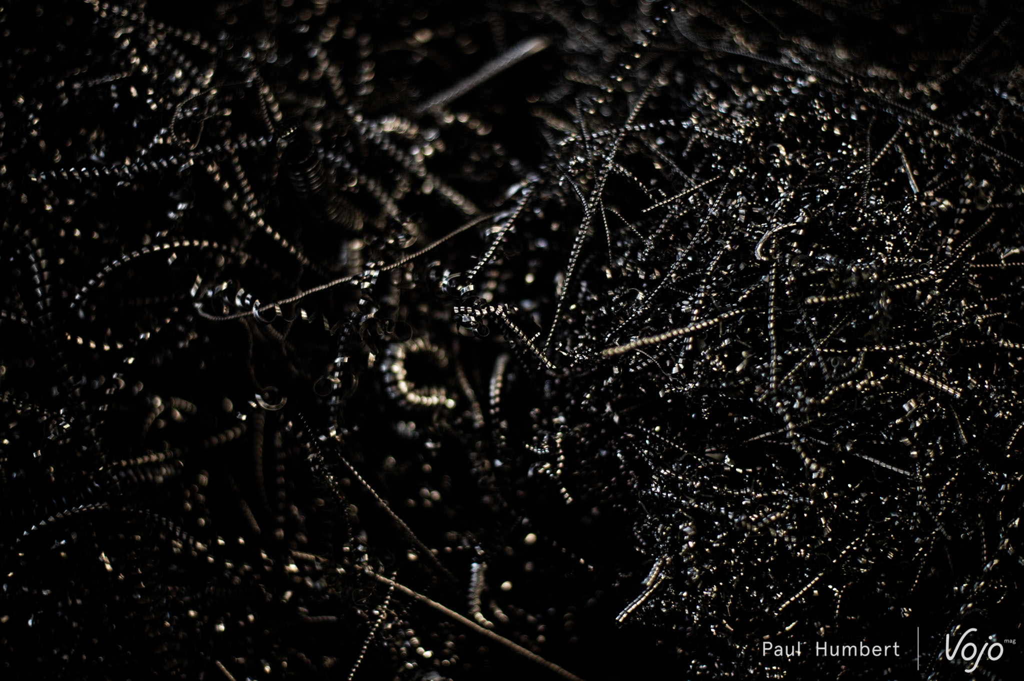 Tous les outils sont donc à disposition pour produire des moyeux. Après les premières étapes de production, les moyeux sont polis une fois jetés dans une machine remplie de coques de noix abrasives (et concassées).