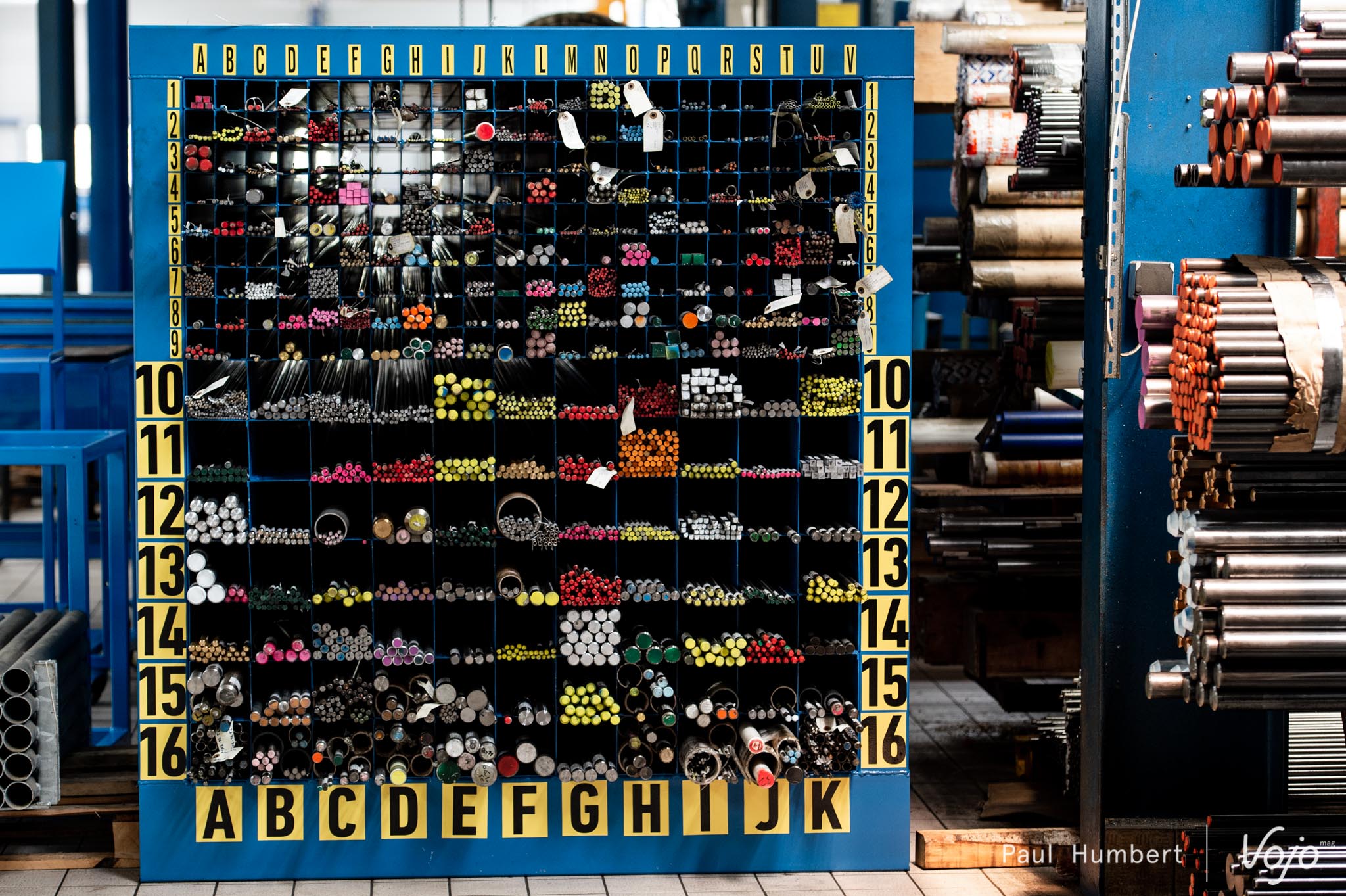 Après avoir traversé les bureaux en franchissant la porte de l’atelier, on se retrouve devant un grand magasin qui abrite toutes les pièces d’outillage.