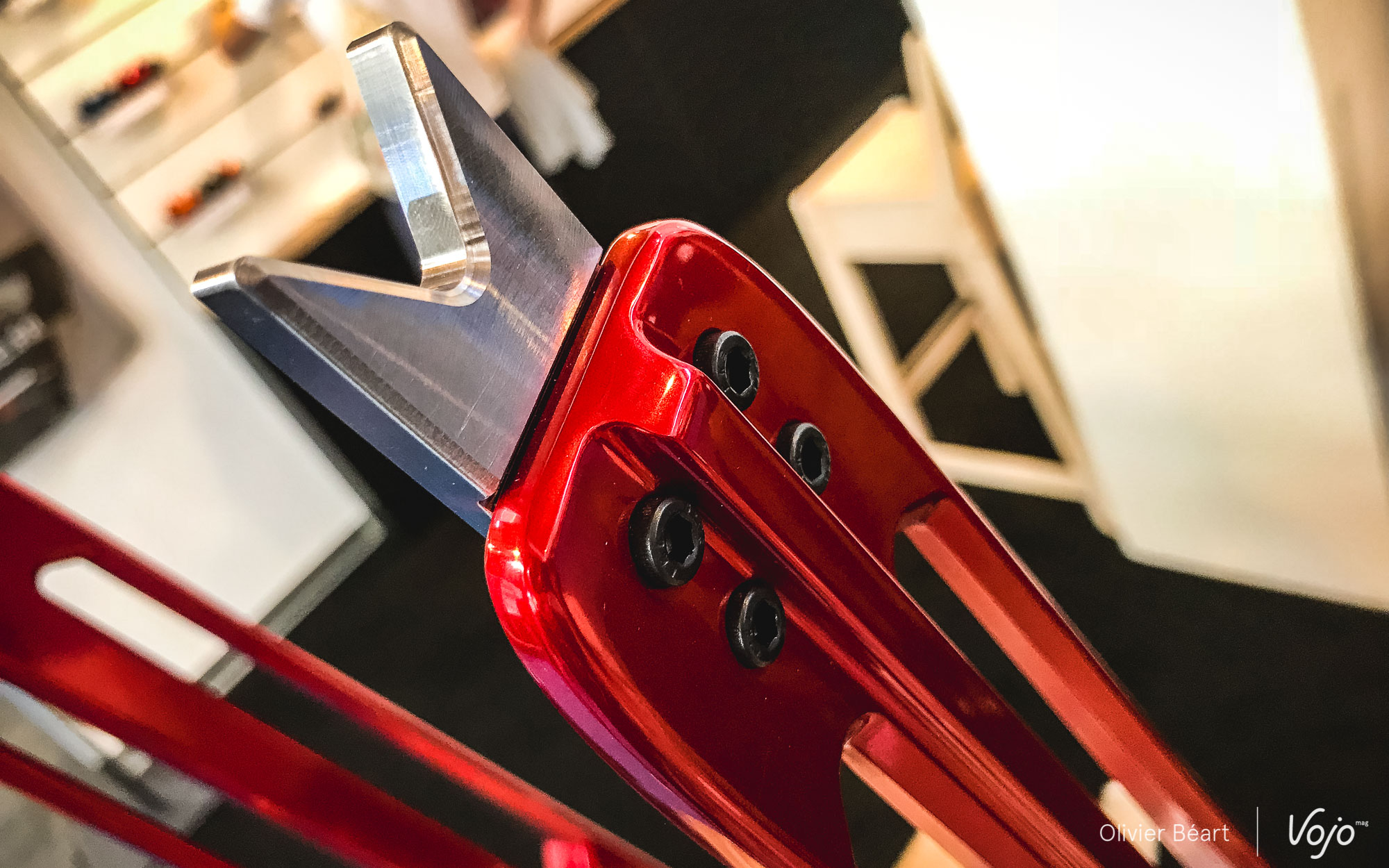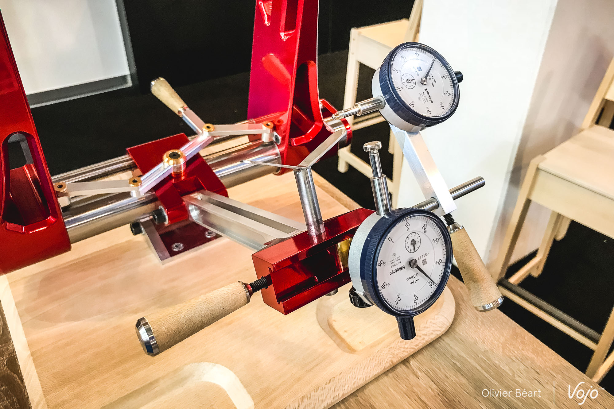 Dans la même dynamique, l’entreprise s’est entourée d’un designer pour mettre au point un superbe banc de montage que nous découvrions à l’Eurobike. Un banc de montage que l’on aimerait avoir dans son salon, c’est bien une première.