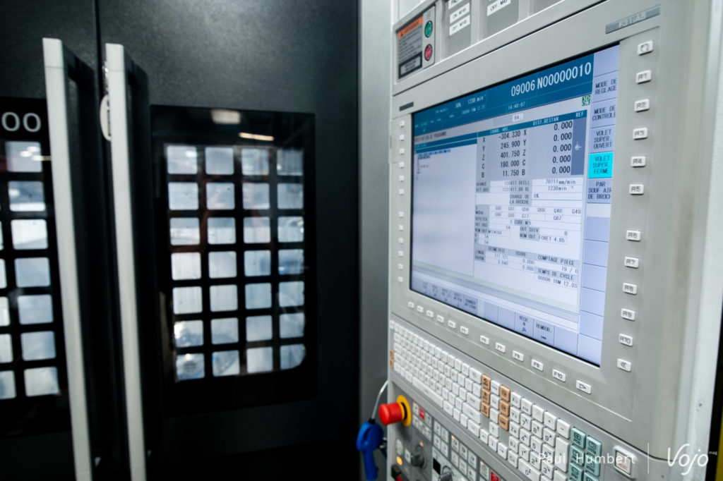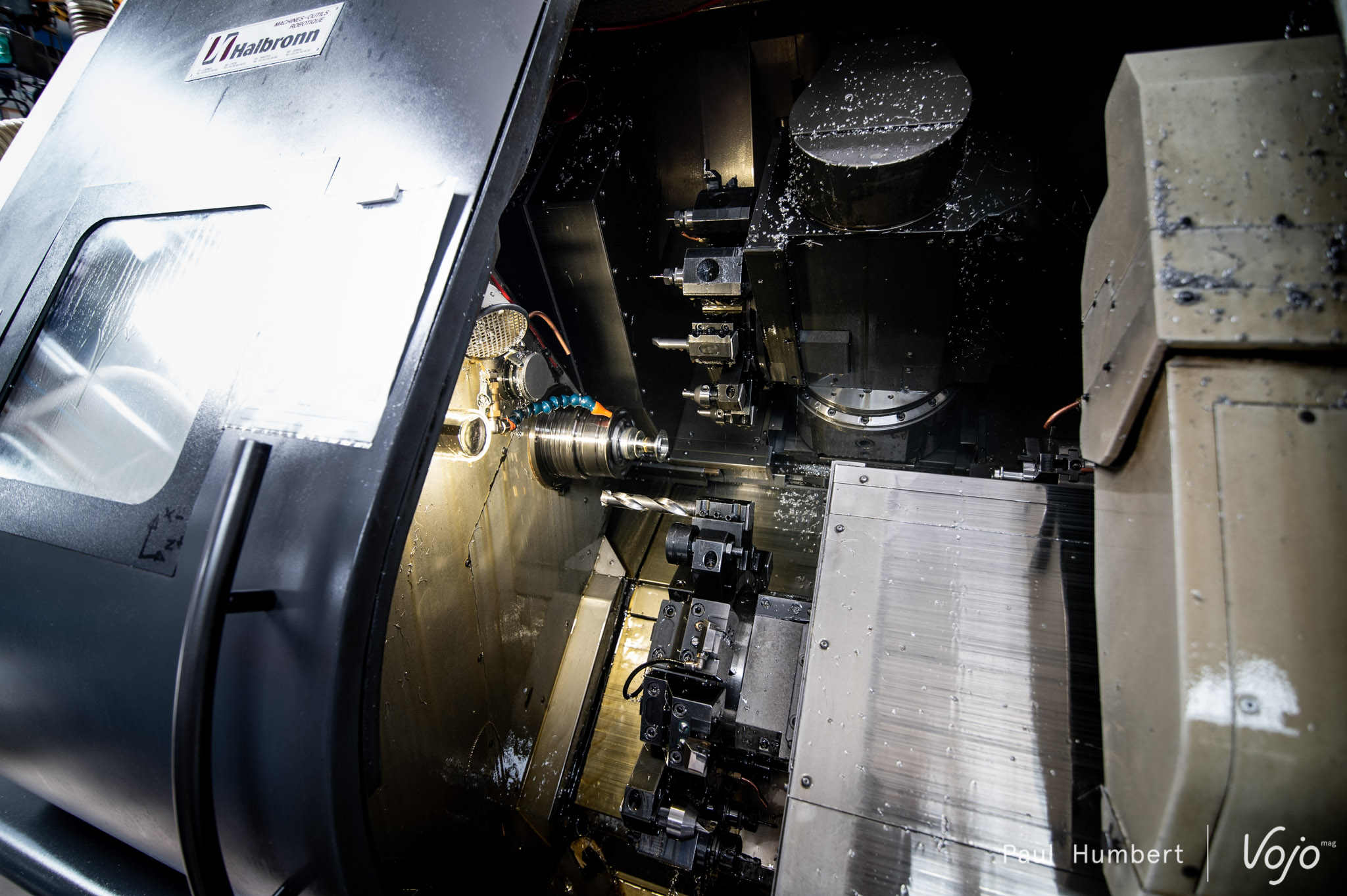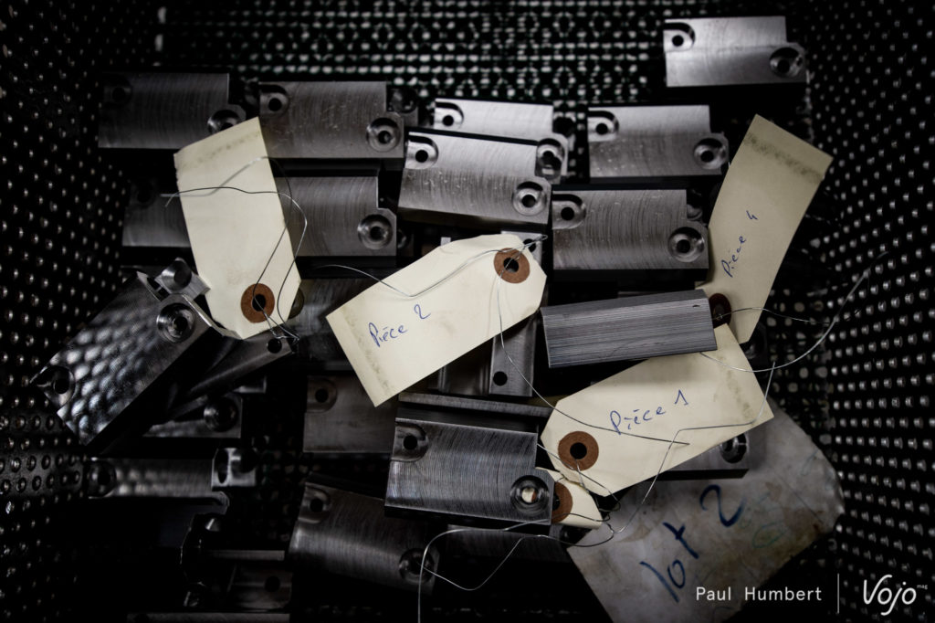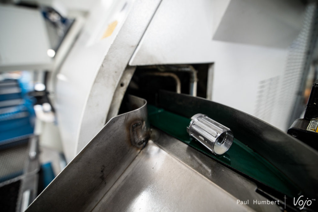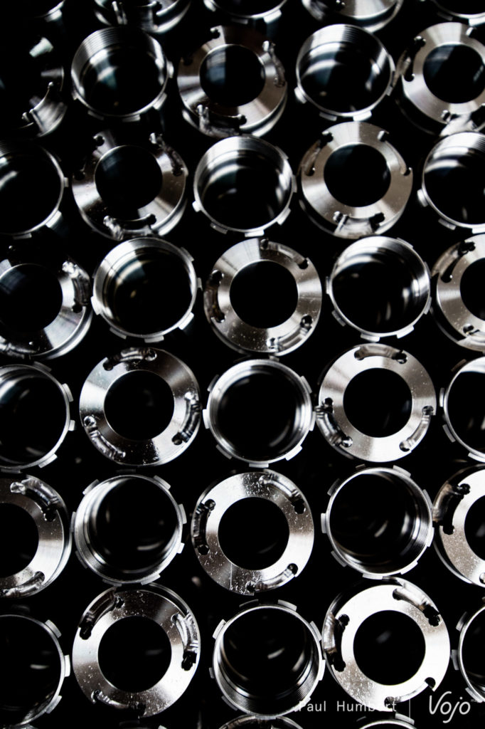 Dans les allées de l’atelier, on voit des stocks de pièces qu’il nous est difficile de reconnaitre, à l’exception des moyeux bien entendu. On passe donc devant des composants qui équiperont des enceintes de luxe, des axes en titane de pédales françaises bien connues, et des pièces pour les hélicoptères.