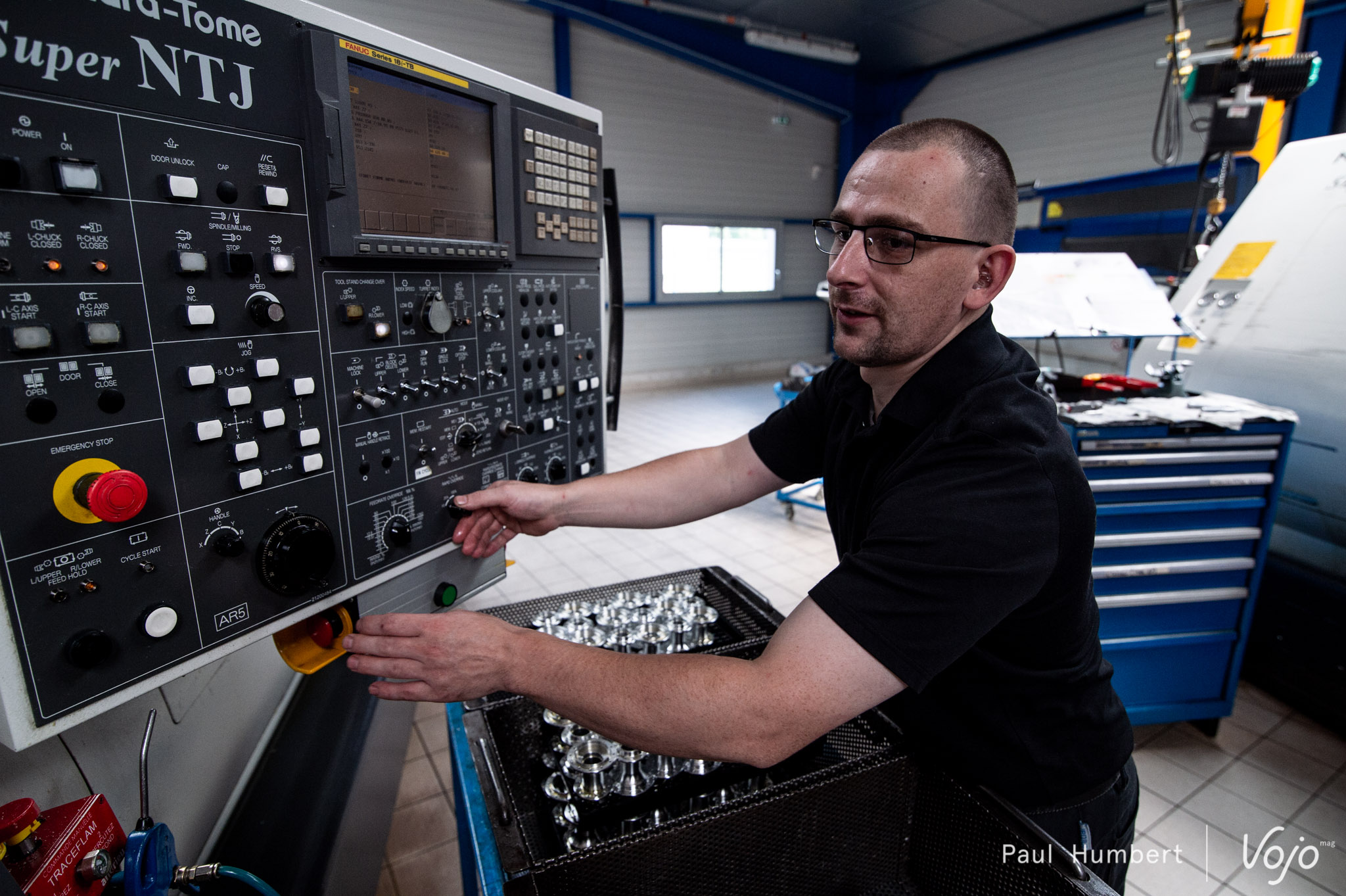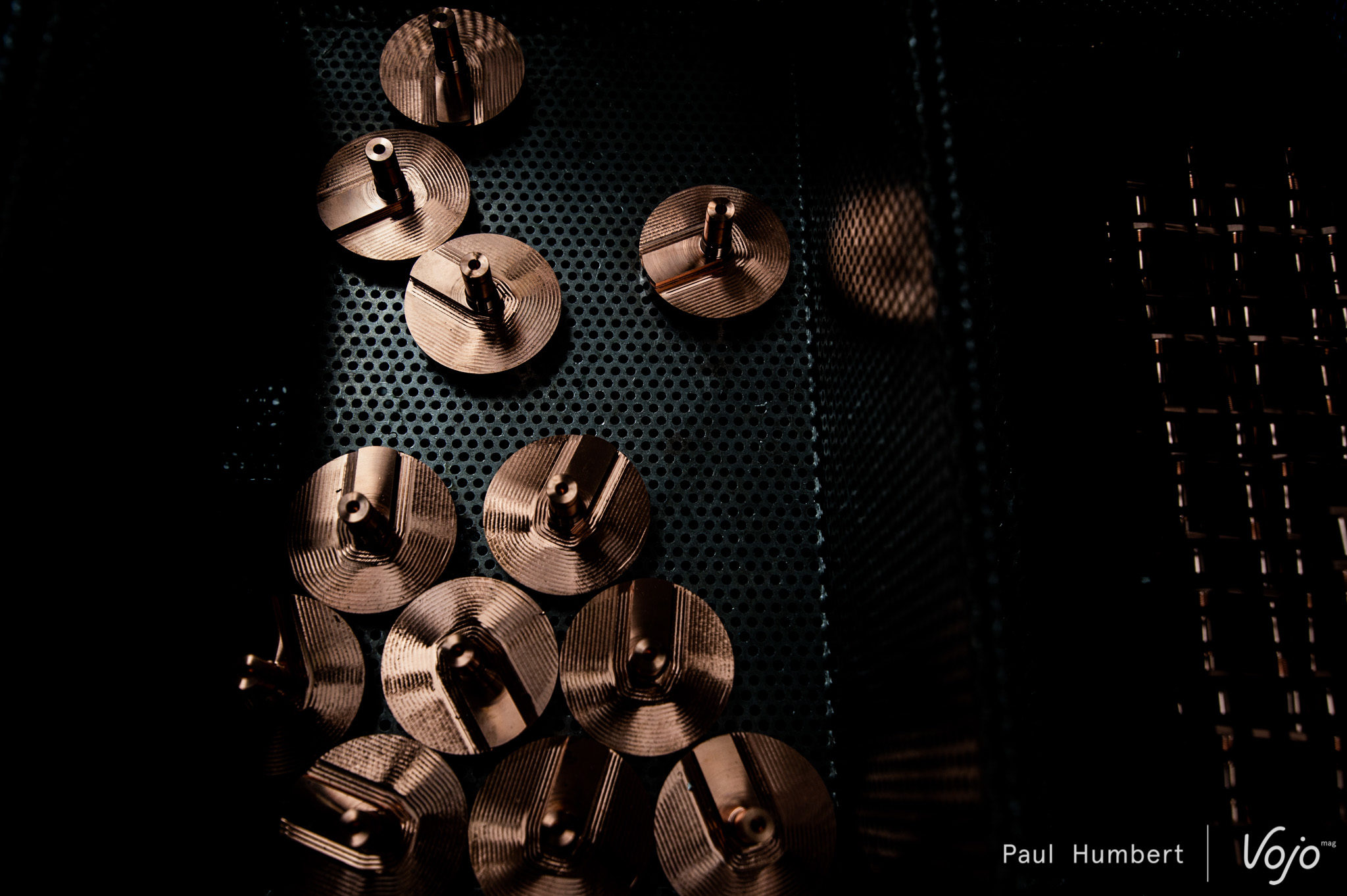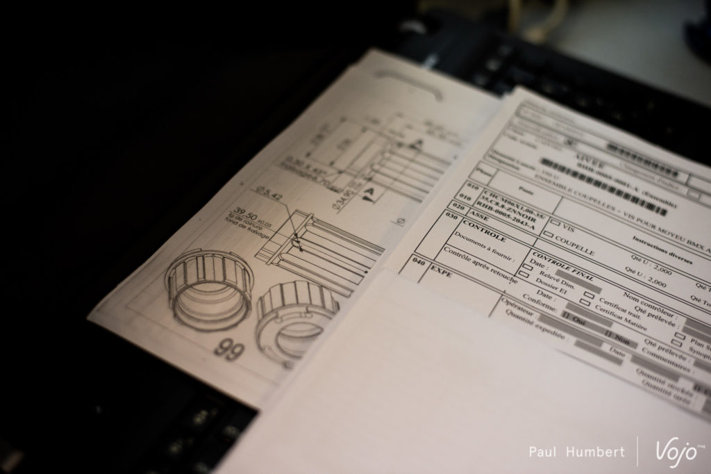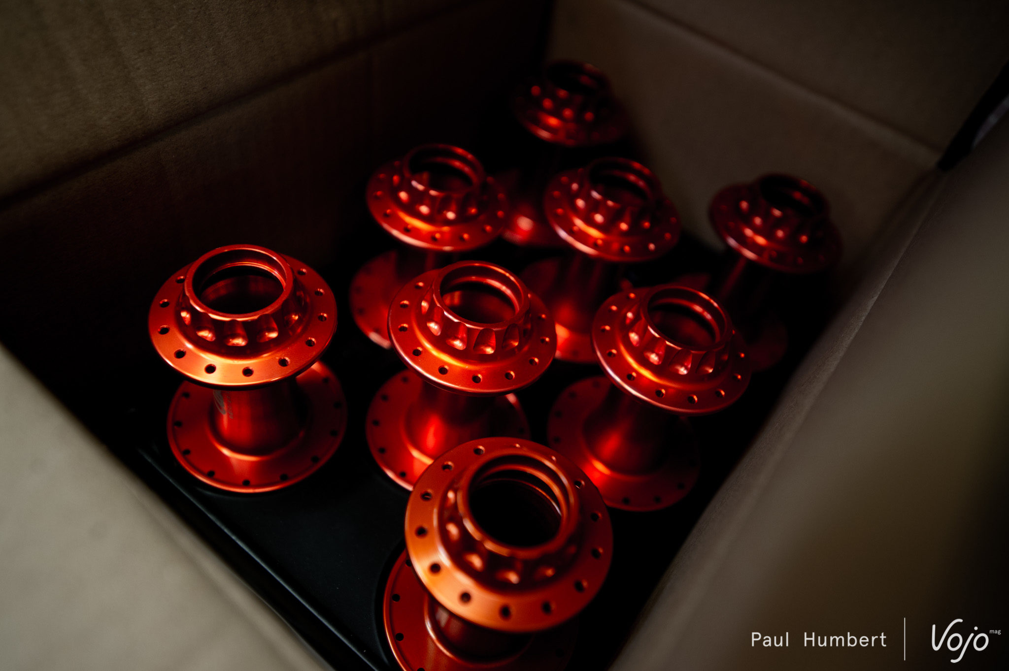 Dans les allées de l’atelier, on voit des stocks de pièces qu’il nous est difficile de reconnaitre, à l’exception des moyeux bien entendu. On passe donc devant des composants qui équiperont des enceintes de luxe, des axes en titane de pédales françaises bien connues, et des pièces pour les hélicoptères.