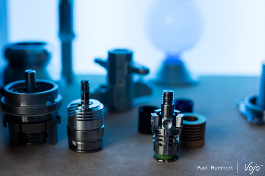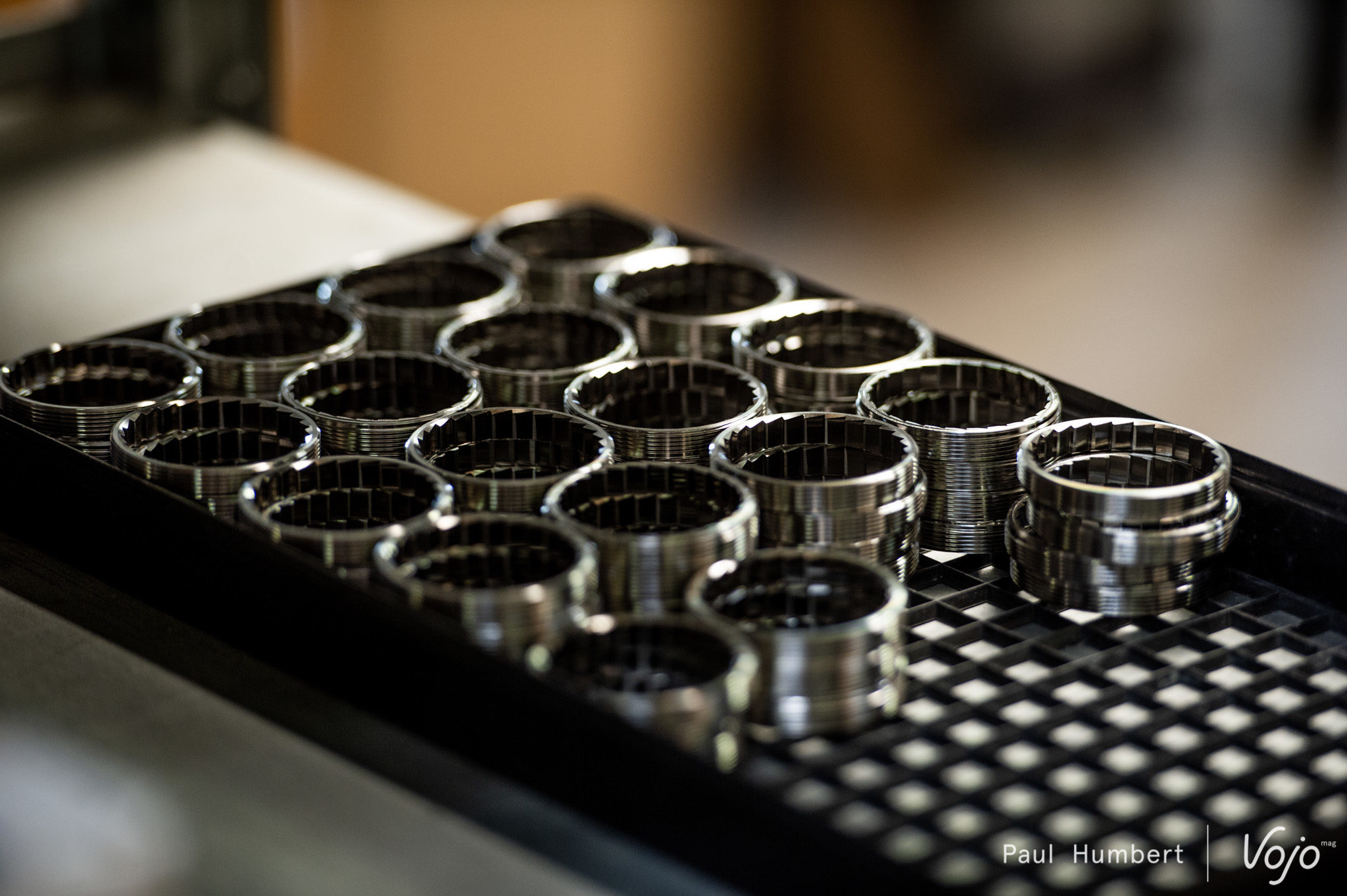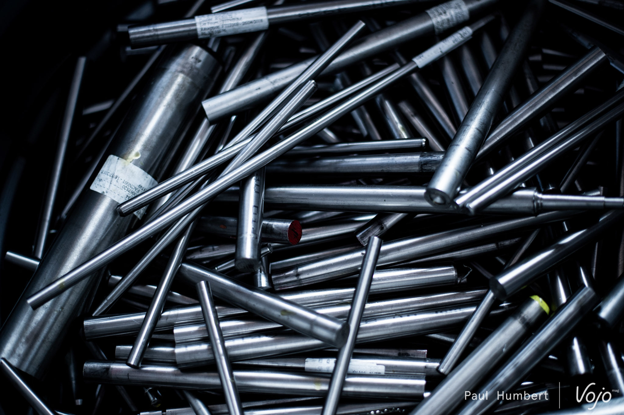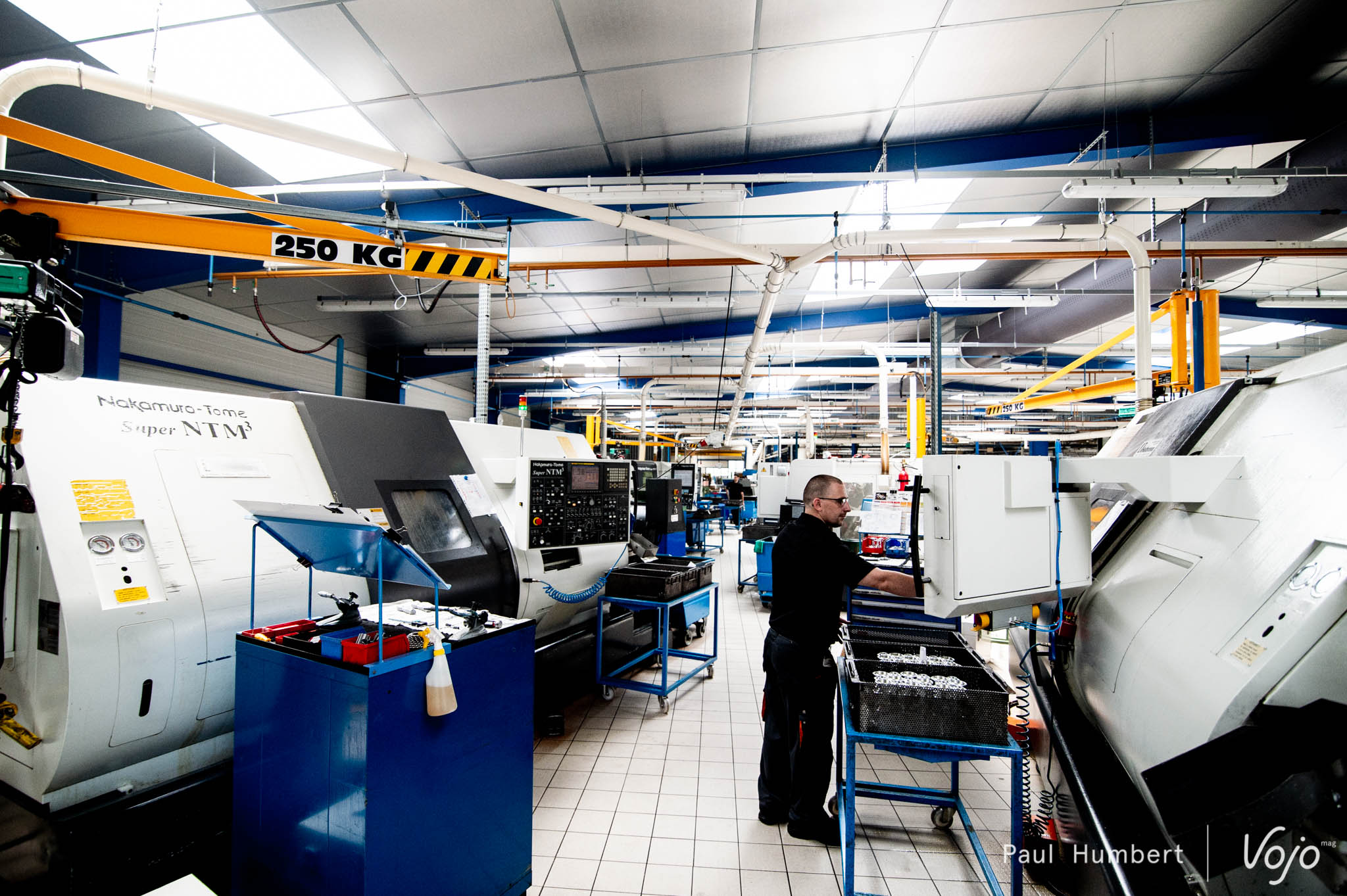 Dans les allées de l’atelier, on voit des stocks de pièces qu’il nous est difficile de reconnaitre, à l’exception des moyeux bien entendu. On passe donc devant des composants qui équiperont des enceintes de luxe, des axes en titane de pédales françaises bien connues, et des pièces pour les hélicoptères.