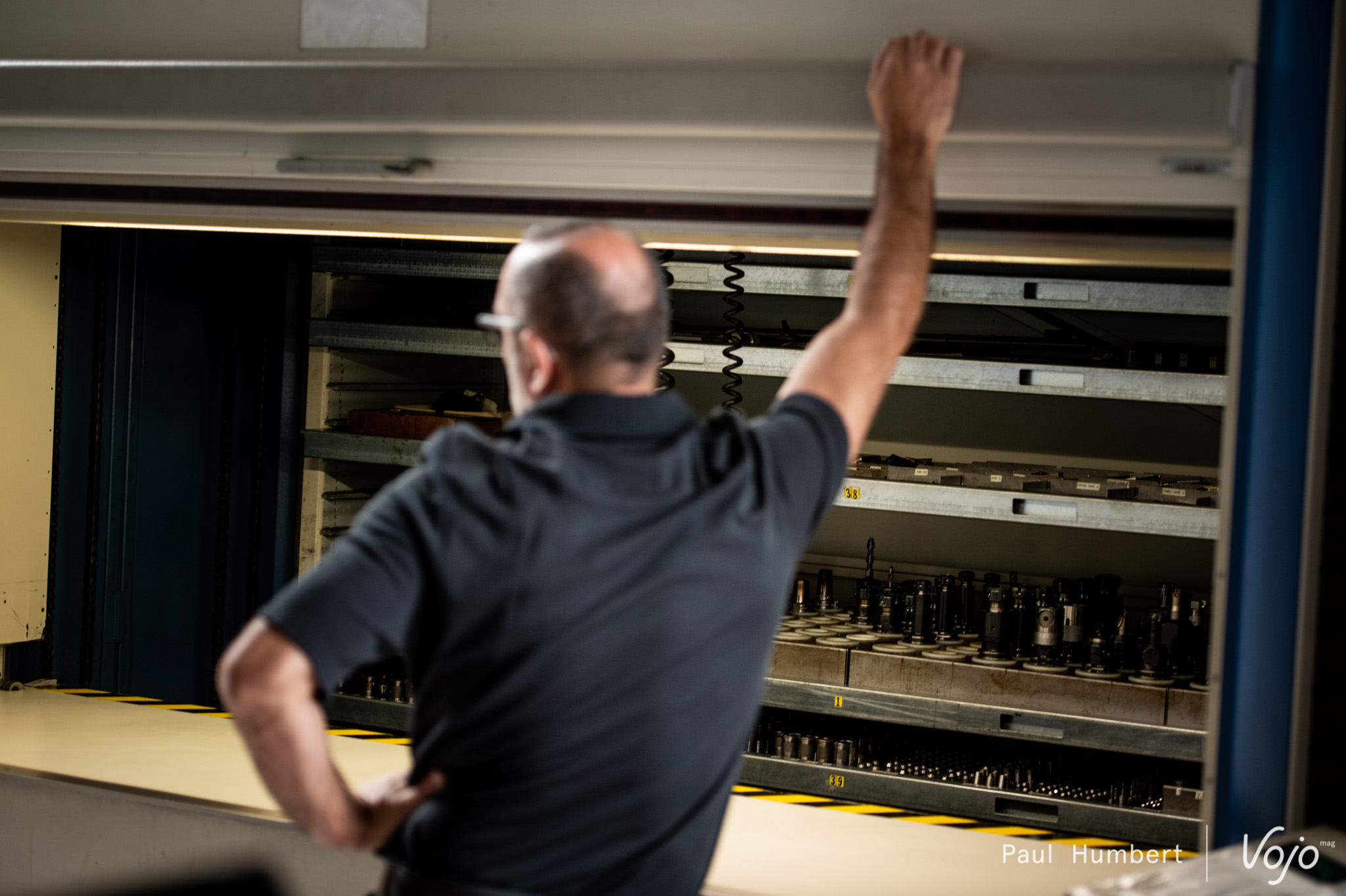 Après avoir traversé les bureaux en franchissant la porte de l’atelier, on se retrouve devant un grand magasin qui abrite toutes les pièces d’outillage.