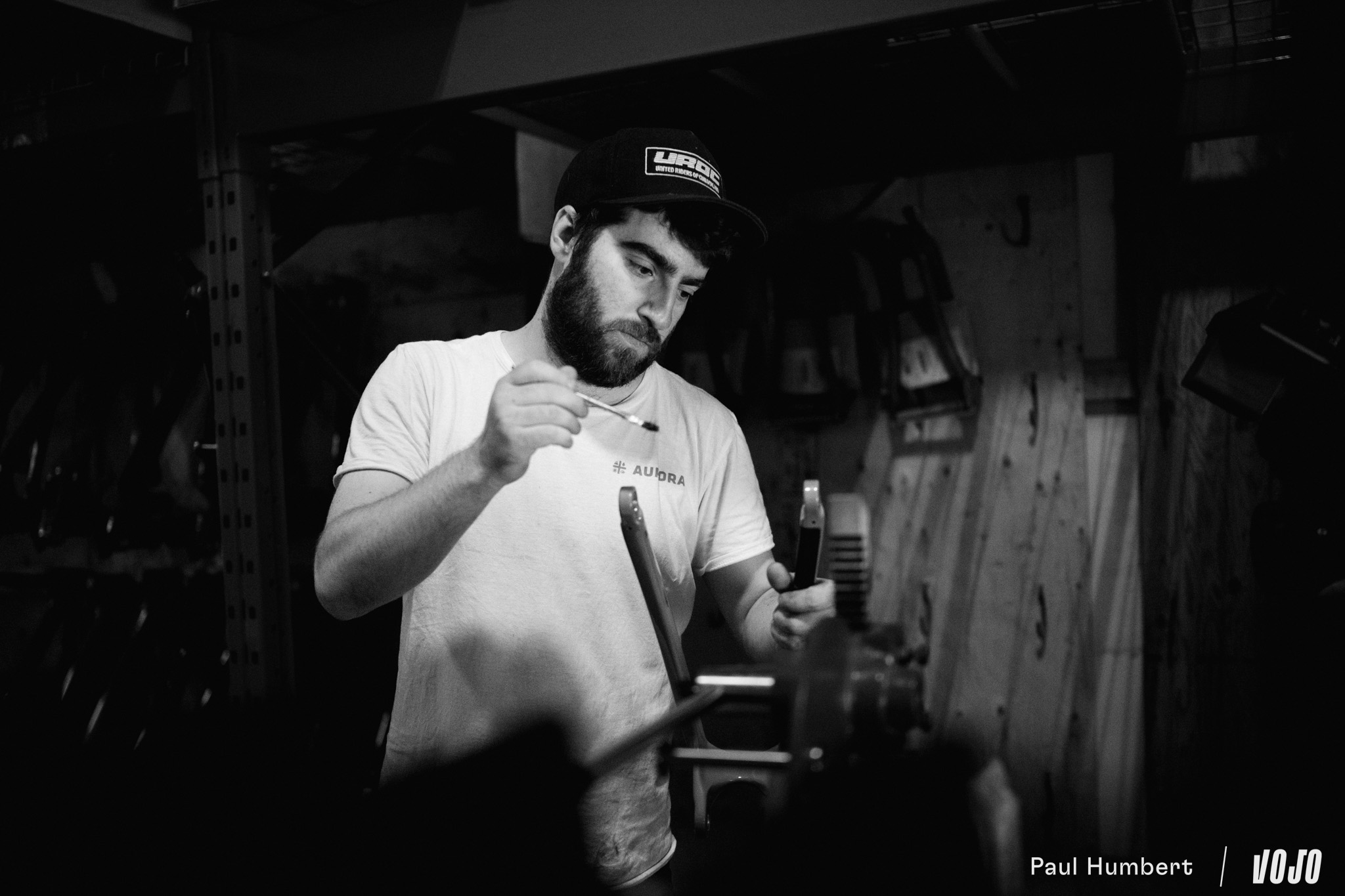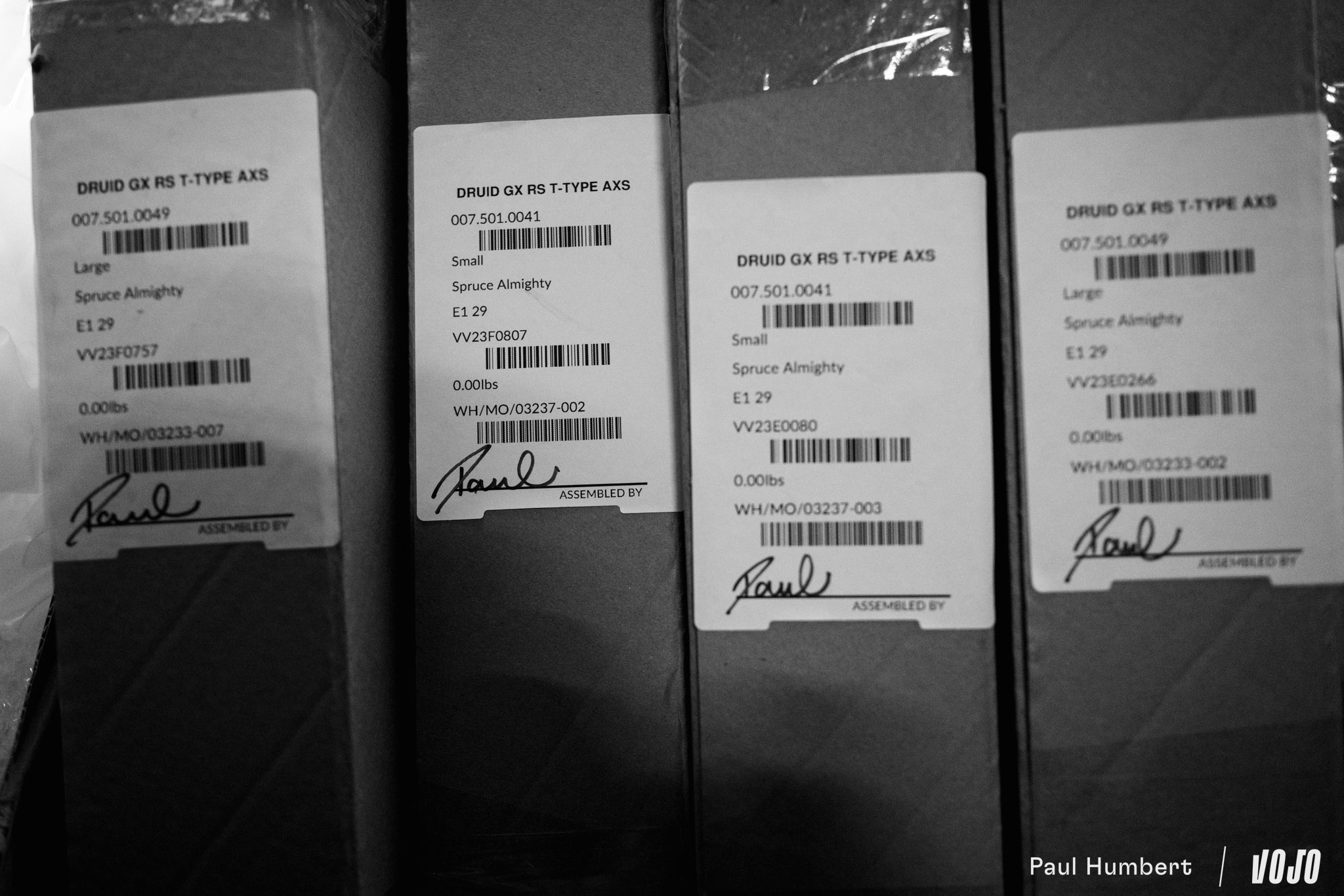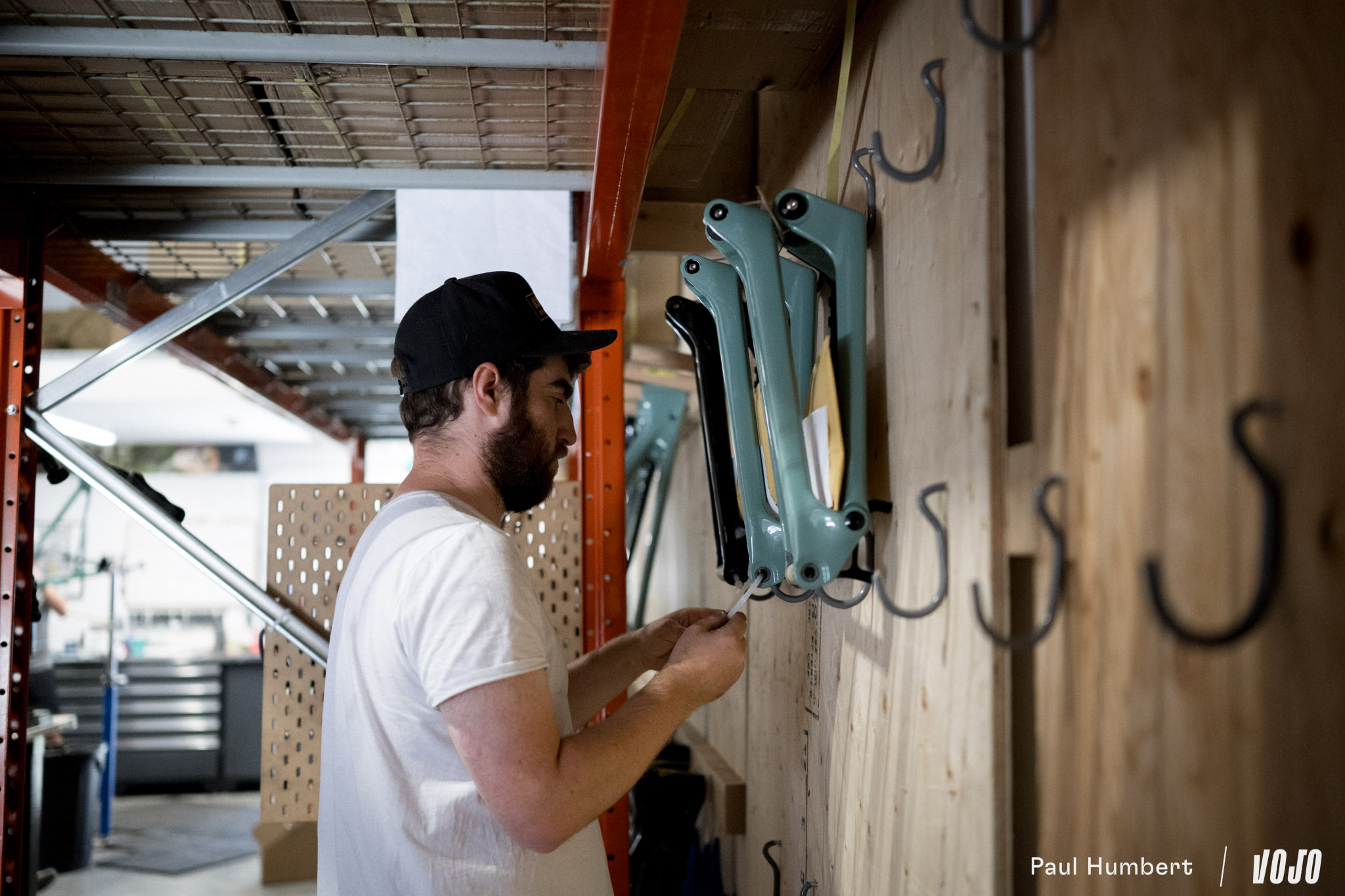 Quand nous arrivons, nous croisons une dizaine de personnes. Ils sont une vingtaine à travailler pour l’entreprise au total. Certains terminent d’installer les roulements sur la nouvelle itération du Druid, et tous les autres se préparent à aller rouler. Les employés ne passent pas par quatre chemins : « Ici on conçoit et on assemble les vélos avec lesquels on a envie d’aller rider. »