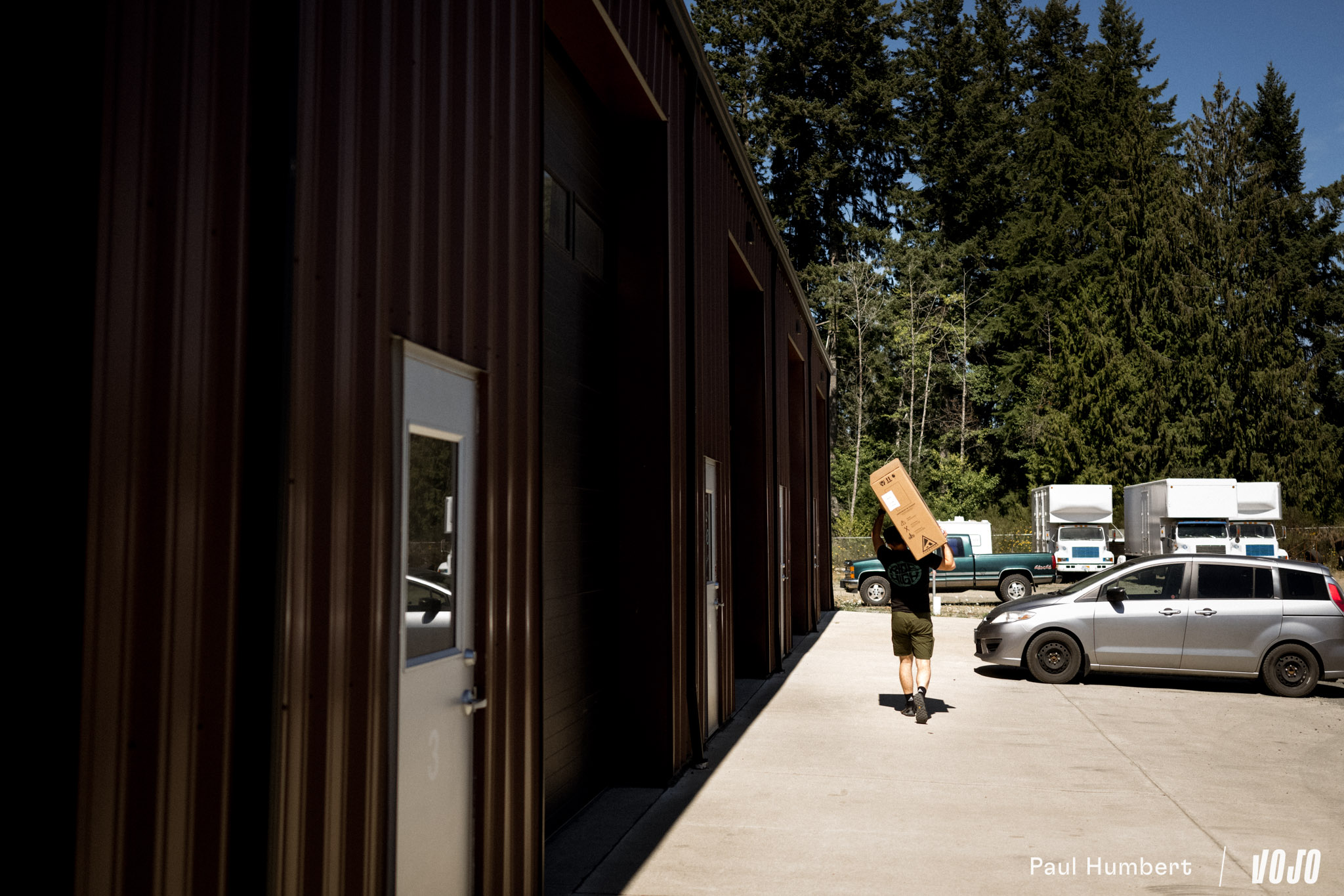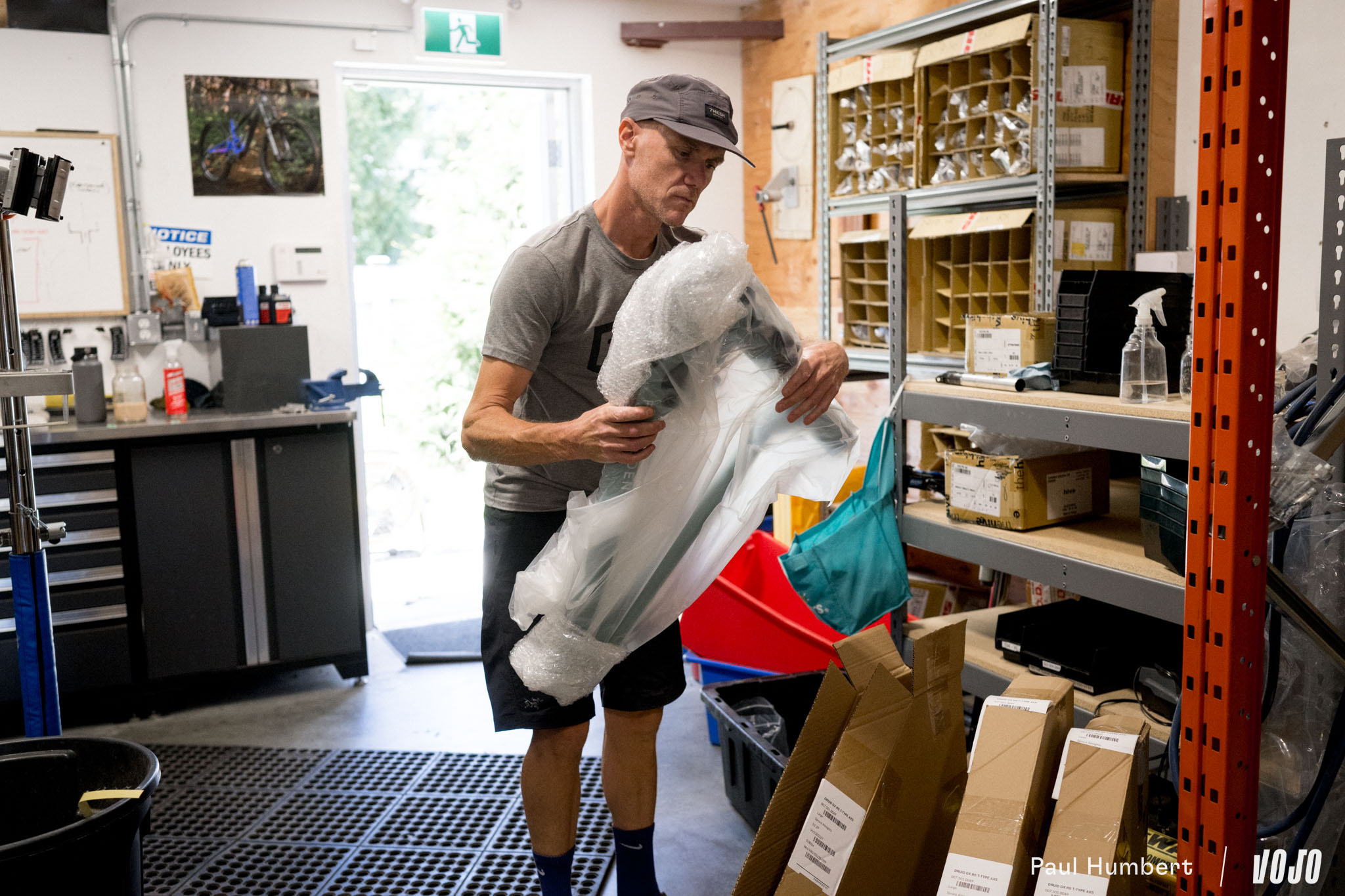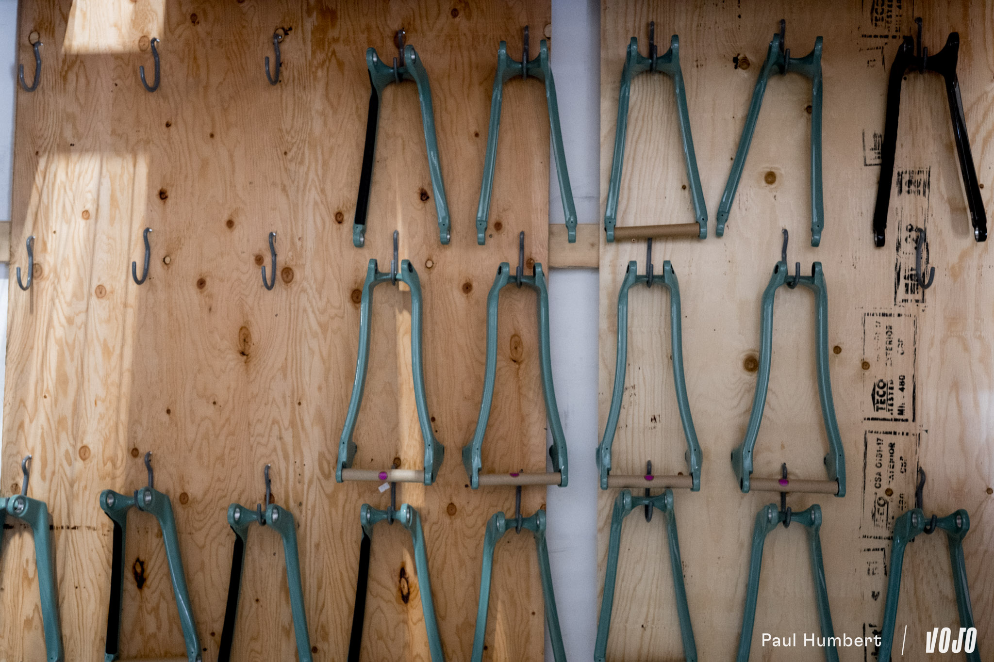 Quand nous arrivons, nous croisons une dizaine de personnes. Ils sont une vingtaine à travailler pour l’entreprise au total. Certains terminent d’installer les roulements sur la nouvelle itération du Druid, et tous les autres se préparent à aller rouler. Les employés ne passent pas par quatre chemins : « Ici on conçoit et on assemble les vélos avec lesquels on a envie d’aller rider. »