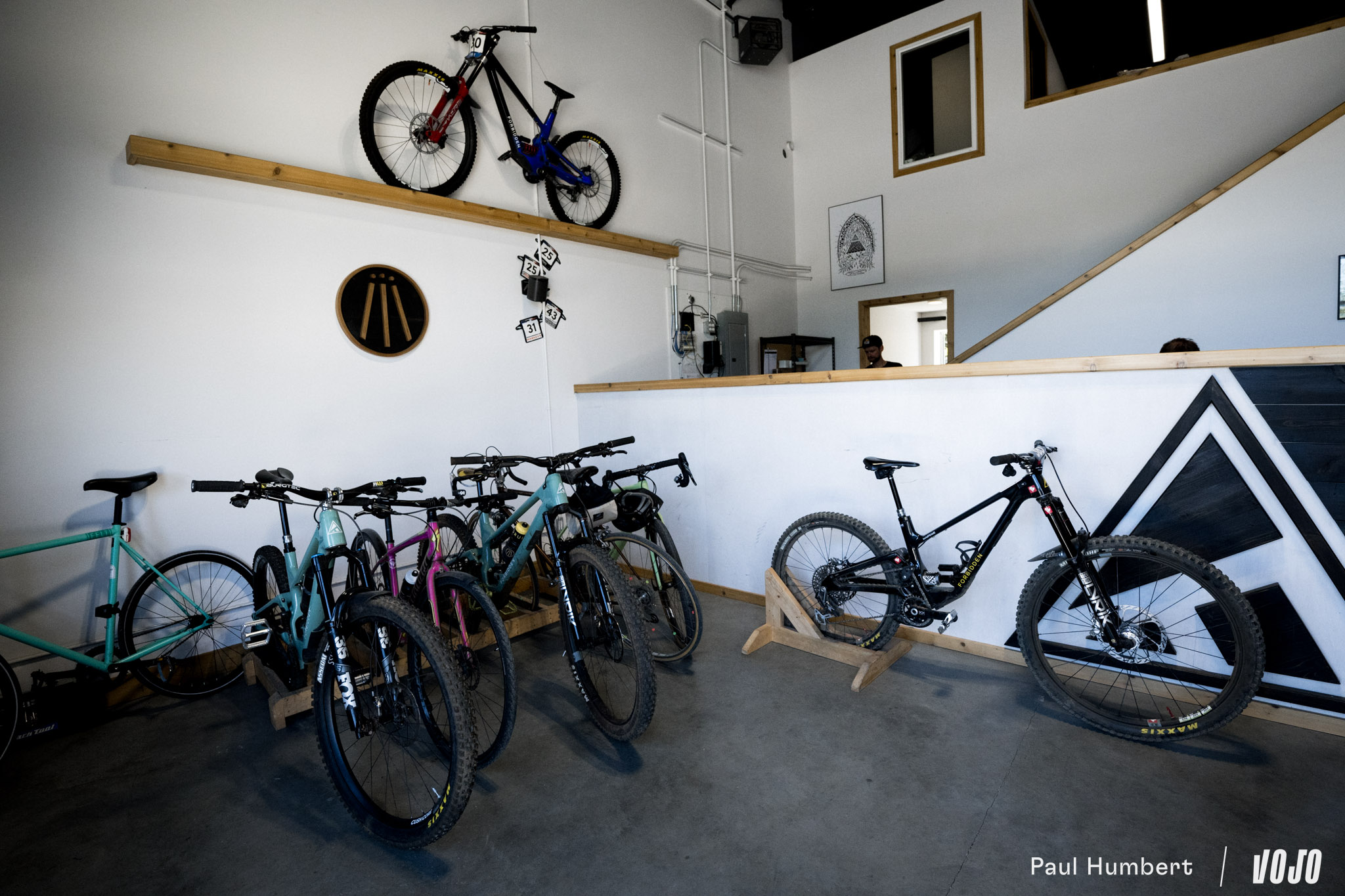 Dans la rue principale de la petite ville, on retrouve des bars, des magasins de vélo, des cafés et un tout nouveau showroom Forbidden. Ouvert tout récemment, il expose certains des trophées récents de la marque et ses deux vélos : le Druid et le Dreadnought.