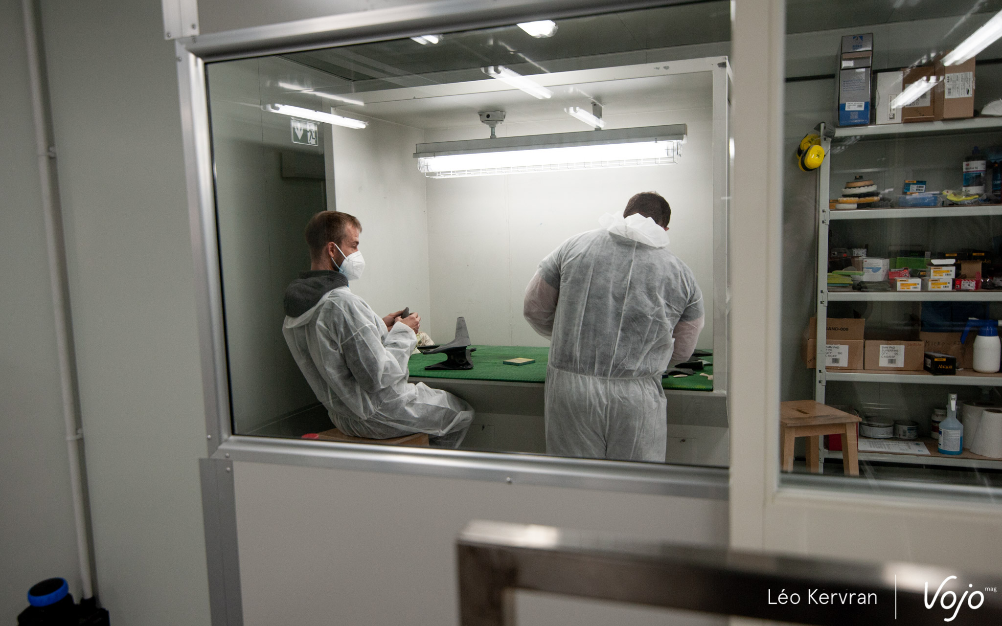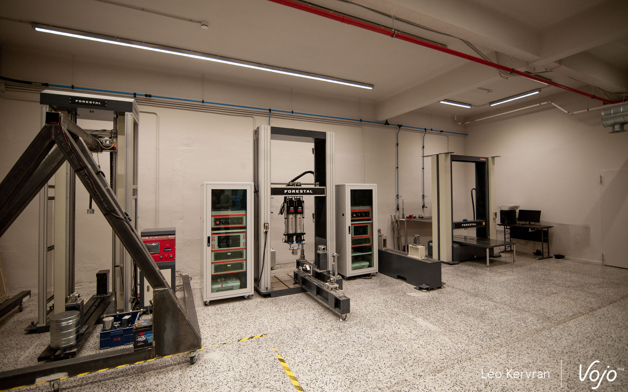Retour au carbone et à Forestal. Pour produire des cadres en carbone en Andorre et malgré tout se montrer (relativement) compétitif face aux autres marques, Forestal mise sur un autre procédé de fabrication (ci-dessus, les diverses machines de test des cadres), où un thermoplastique doit remplacer l’habituelle résine époxy.
