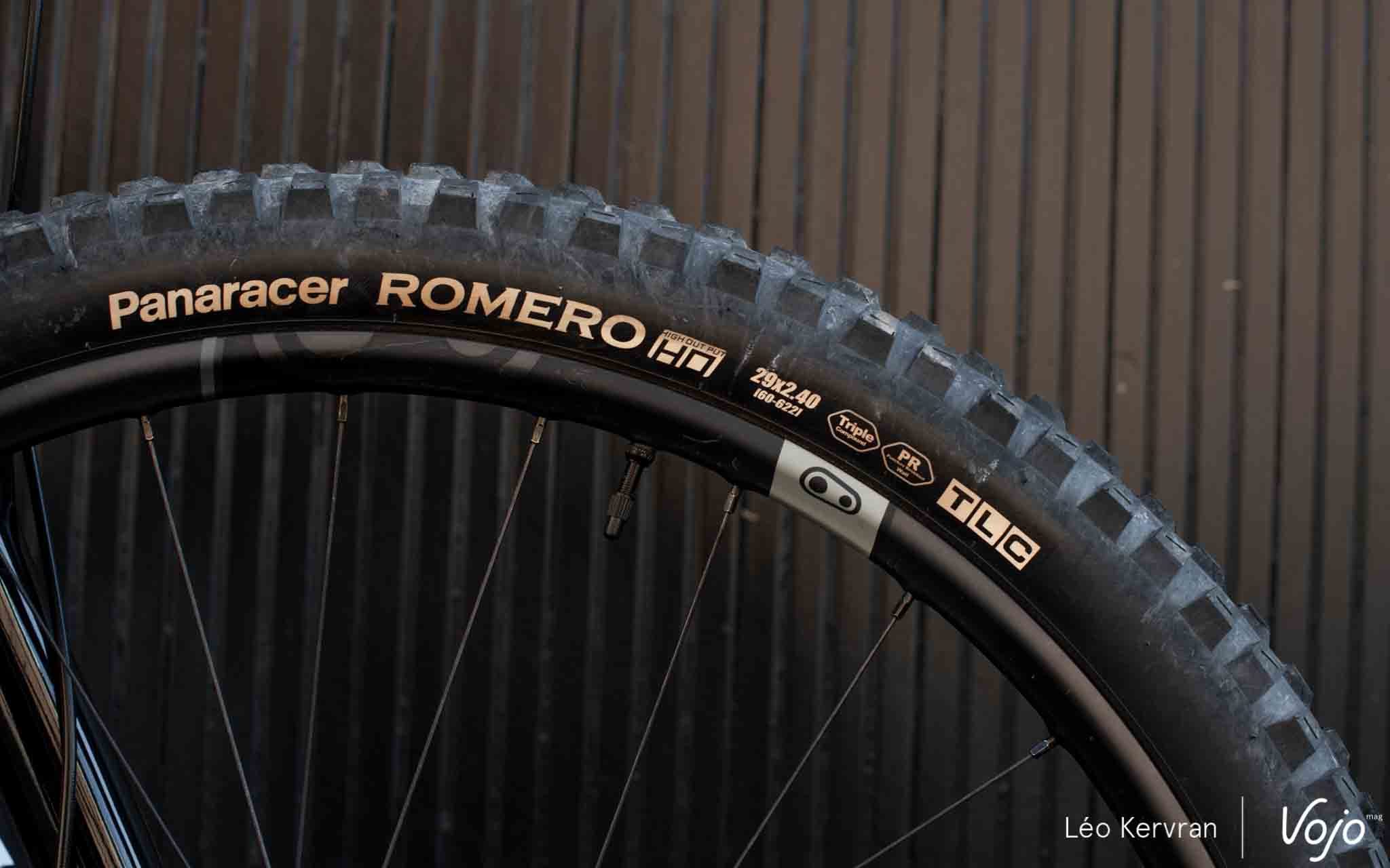 Le train roulant est presque exotique, avec des roues Crankbrothers Synthesis Carbon E7 qui nous ont déjà agréablement surpris sur d’autres vélos et des pneus Panaracer Romero (AV) / Aliso (AR) en 2,4″ de section.