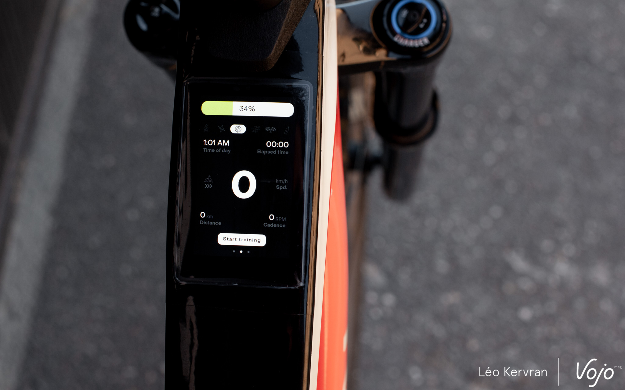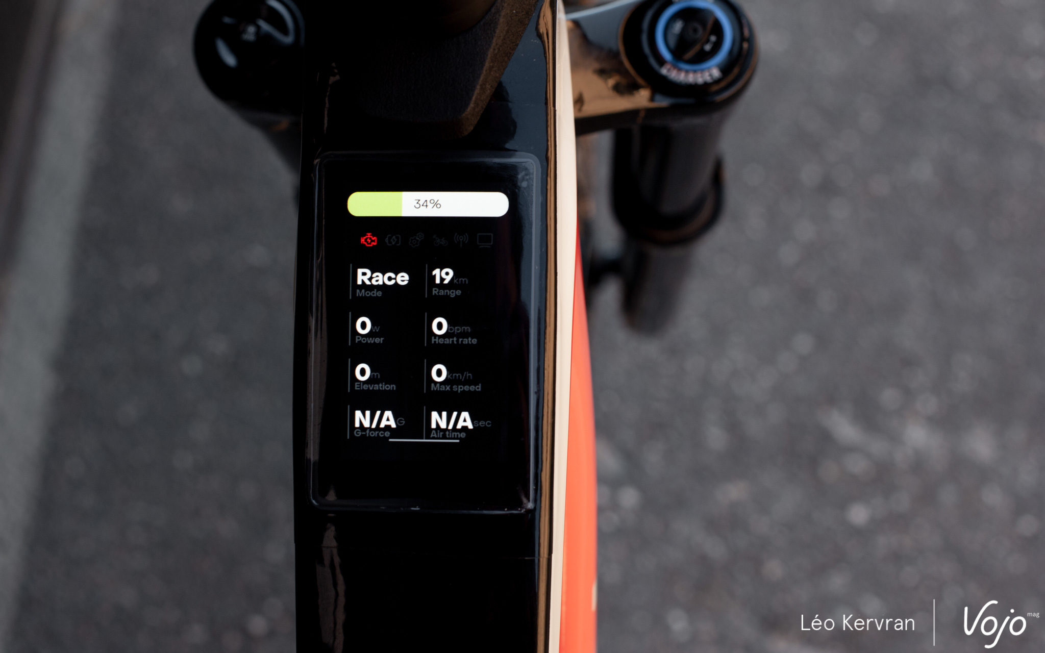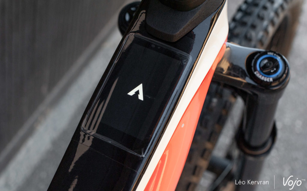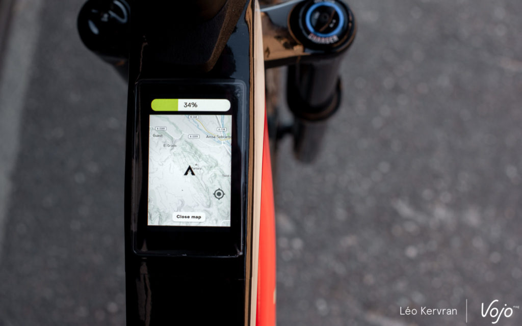 En couleur et tactile, l’écran Smart Display participe grandement à l’intérêt des vélos Forestal. Suffisamment grand pour être lisible, il fait office de GPS avec l’antenne intégré au cache du jeu de direction (carte OSM incluse, il n’y a qu’à charger la trace via l’application smartphone) et de compteur ultra-complet (autonomie, puissance, fréquence cardiaque, vitesse, cadence, dénivelé, temps passé en l’air, valeur maximale de G reçue…).