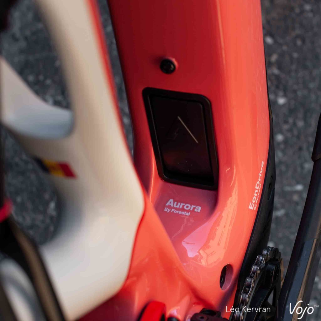 Côté assistance, c’est bien sûr le moteur maison EonDrive (60 Nm de couple et 1,95 kg) qui équipe le vélo, couplé à la batterie Aurora 350 Wh (1,8 kg) et au « centre de commande » Smart Display (écran) / Smart Trigger (manette).