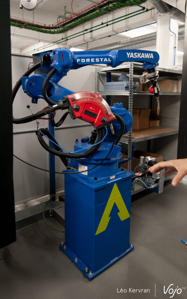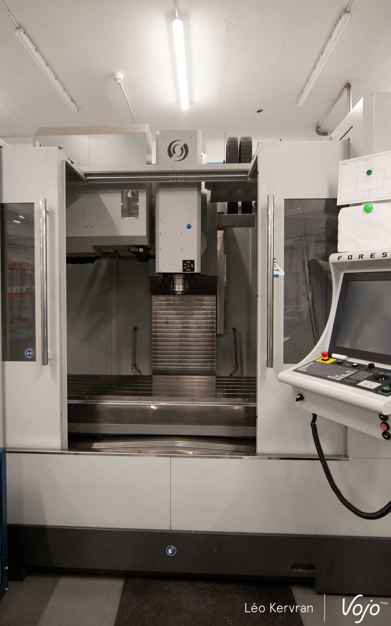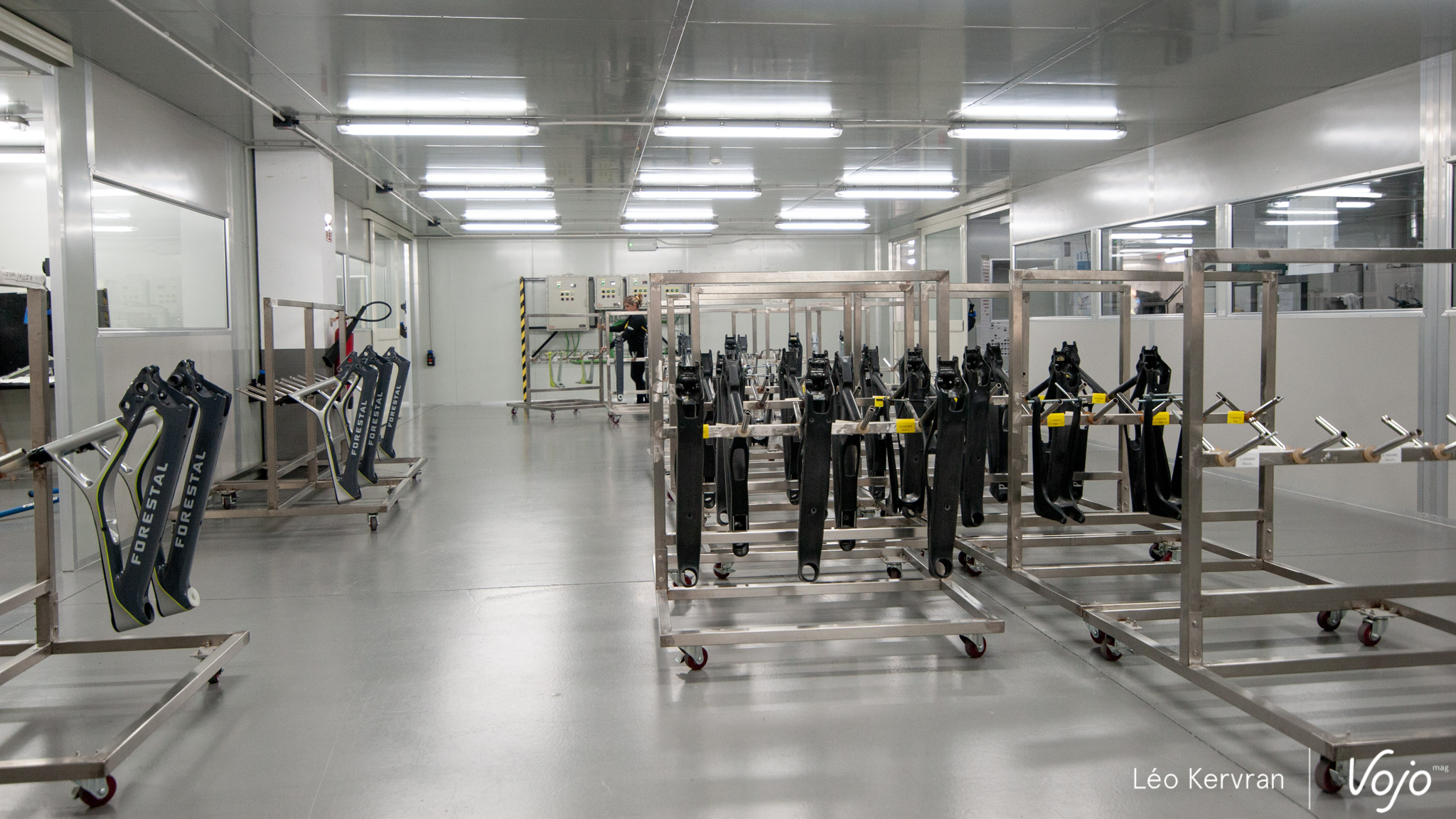 Retour au carbone et à Forestal. Pour produire des cadres en carbone en Andorre et malgré tout se montrer (relativement) compétitif face aux autres marques, Forestal mise sur un autre procédé de fabrication (ci-dessus, les diverses machines de test des cadres), où un thermoplastique doit remplacer l’habituelle résine époxy.