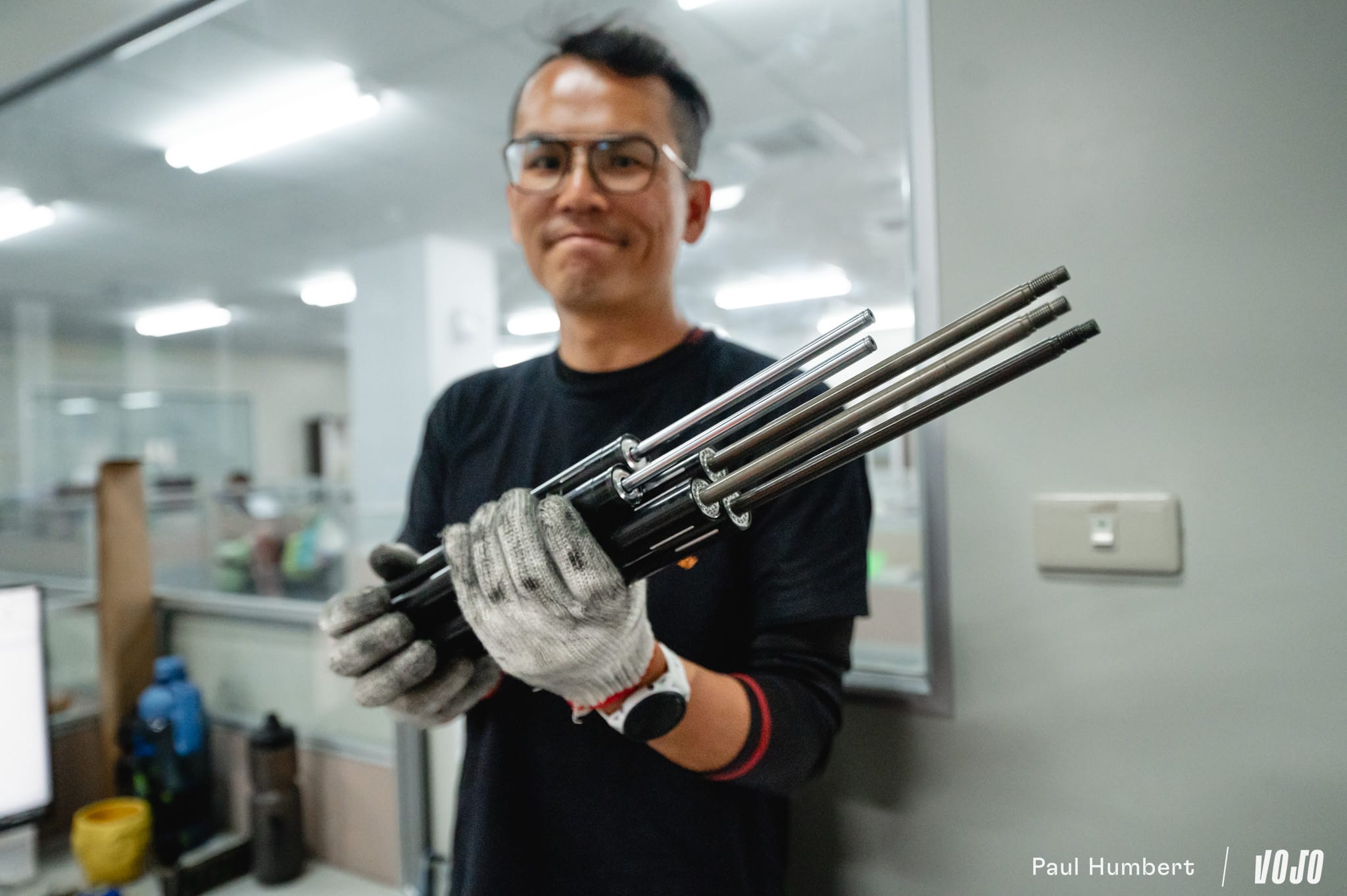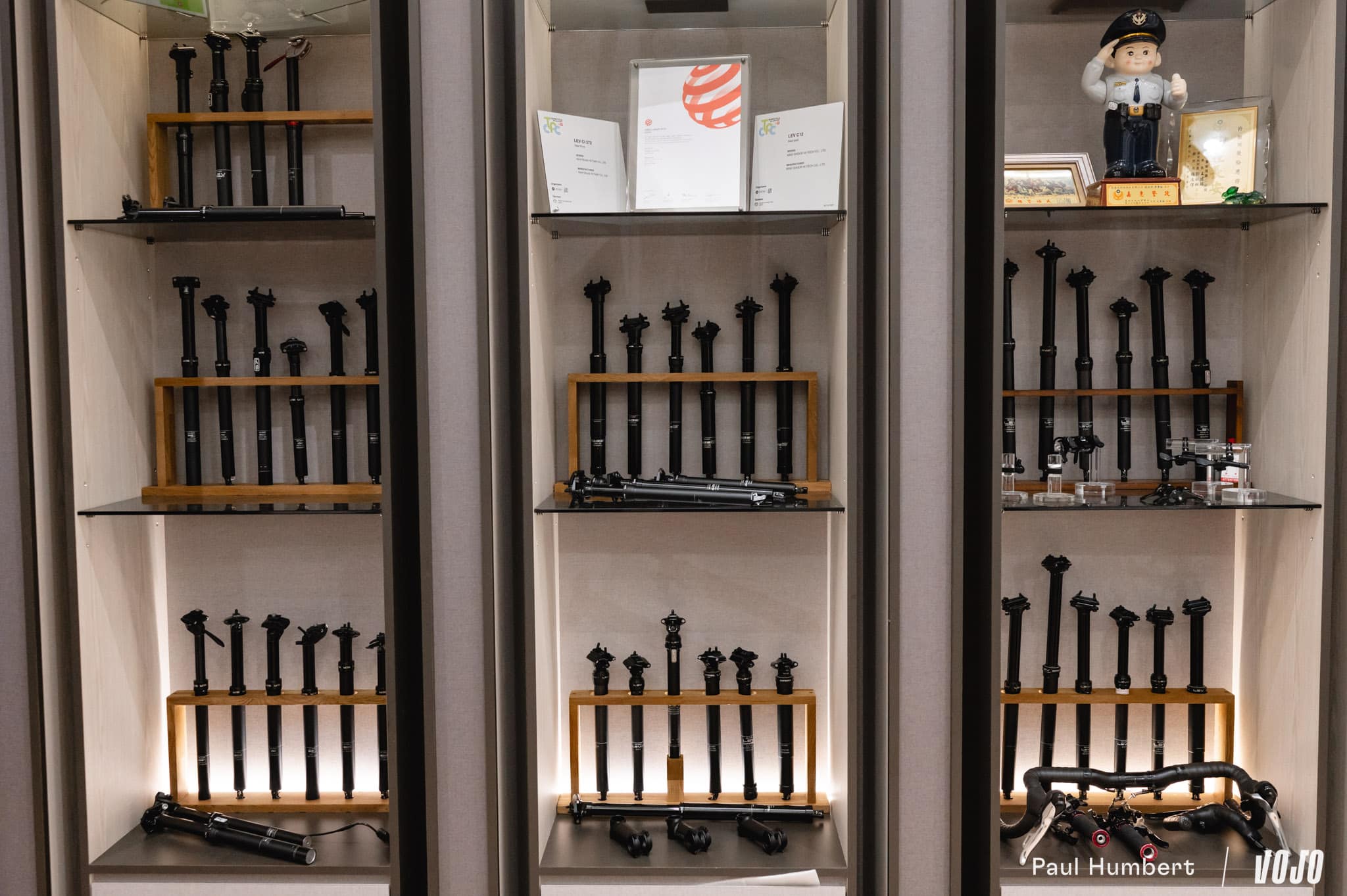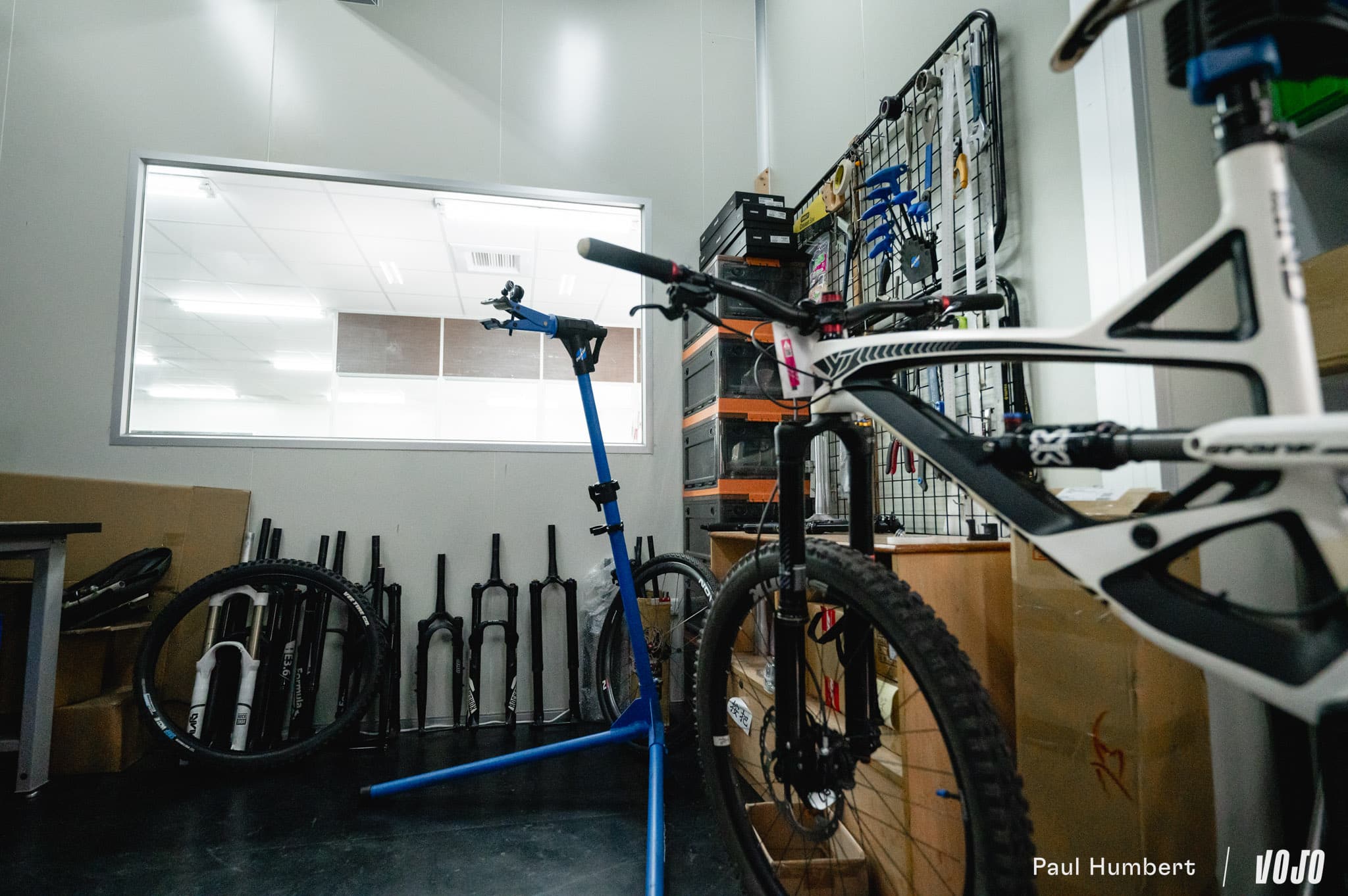 Tout est très moderne dans le bâtiment. On longe les bureaux commerciaux, le réfectoire, la salle de sport et la pumptrack KS pour se rendre dans les bureaux de développement. Si l’activité principale de la marque est la conception et production de tige de selle télescopique, KS produit également des suspensions, dont une fourche gravel que nous avons beaucoup appréciée lorsque nous l’avons testée.