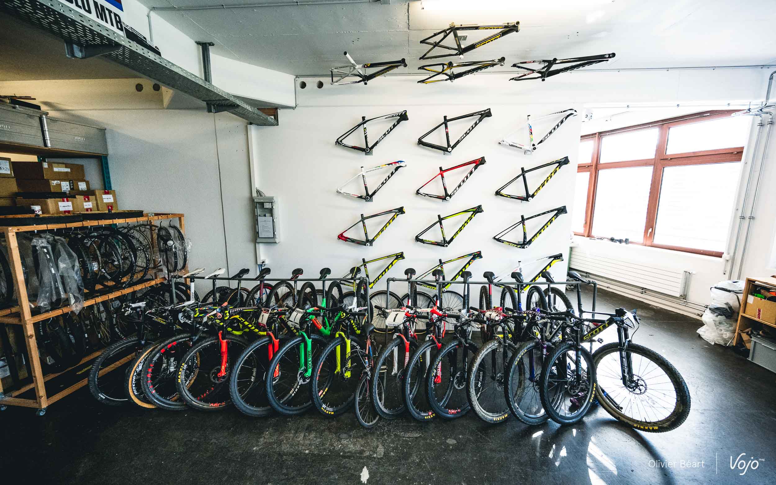 Certains vélos sont au domicile de Nino, d’autres au QG de Scott à Givisiez, mais le gros de la mémoire des machines roulées par le « G.O.A.T » (Greatest Of All Times) est conservé ici, pile entre le stock de pièces neuves du team et l’atelier où sont préparées les dernières machines de l’équipe. En tout, il y a ici plus d’une trentaine de vélos et cadres au pédigrée impressionnant.