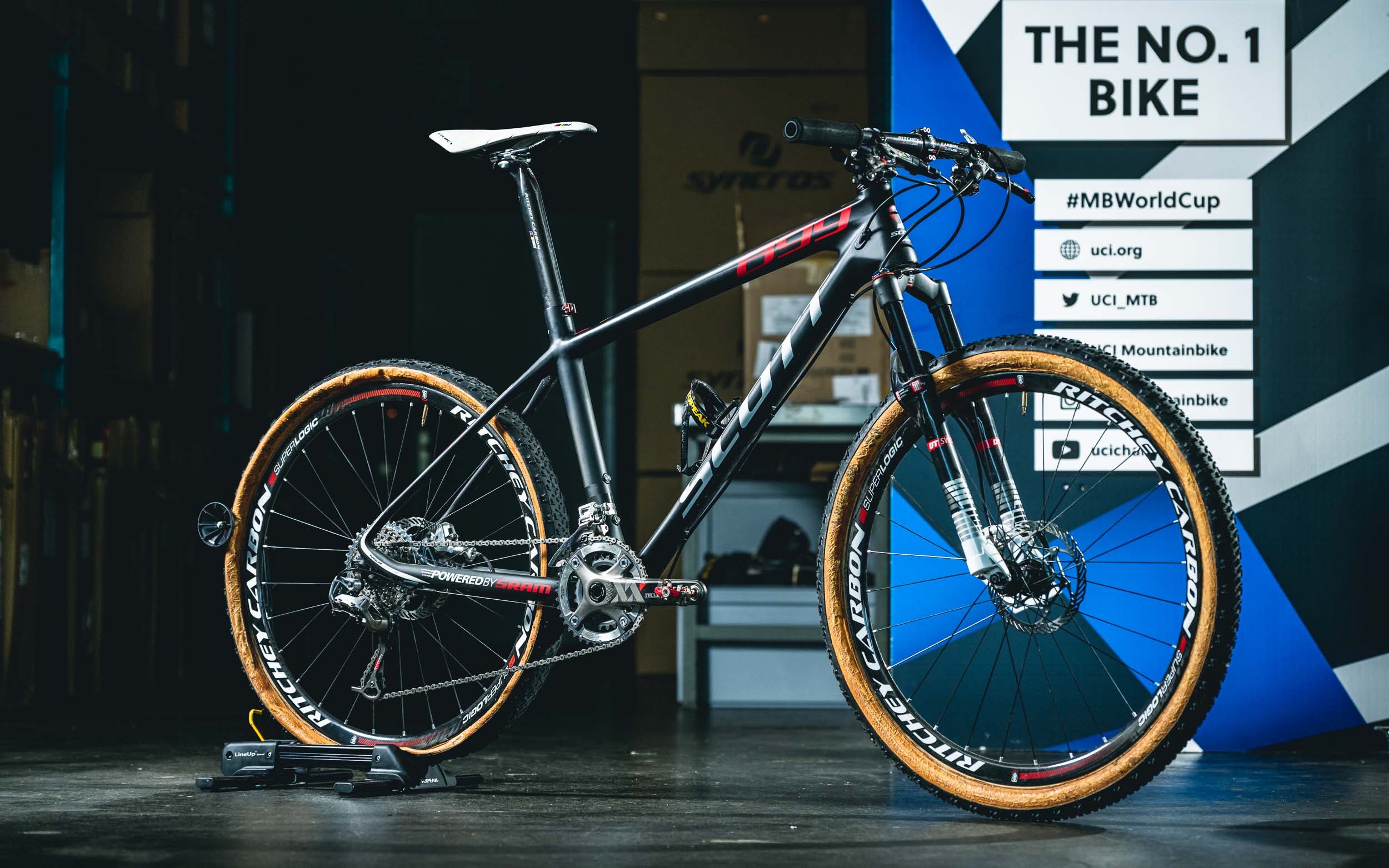 Yanick donne plus de précisions : « Avant ce vélo, Nino roulait déjà régulièrement en tout suspendu, mais encore très souvent en semi-rigide aussi. Puis, alors que tous ses rivaux passaient de plus en plus au 29 pouces, à commencer par Julien Absalon, Nino (qui n’est pas très grand), ne parvenait pas à trouver une position optimale sur le premier Spark 29. Il roulait donc toujours en 650b/27,5″. Et en boyaux. Mais dans la perspective de Rio, Scott a remis tout à plat, et nous aussi ! »