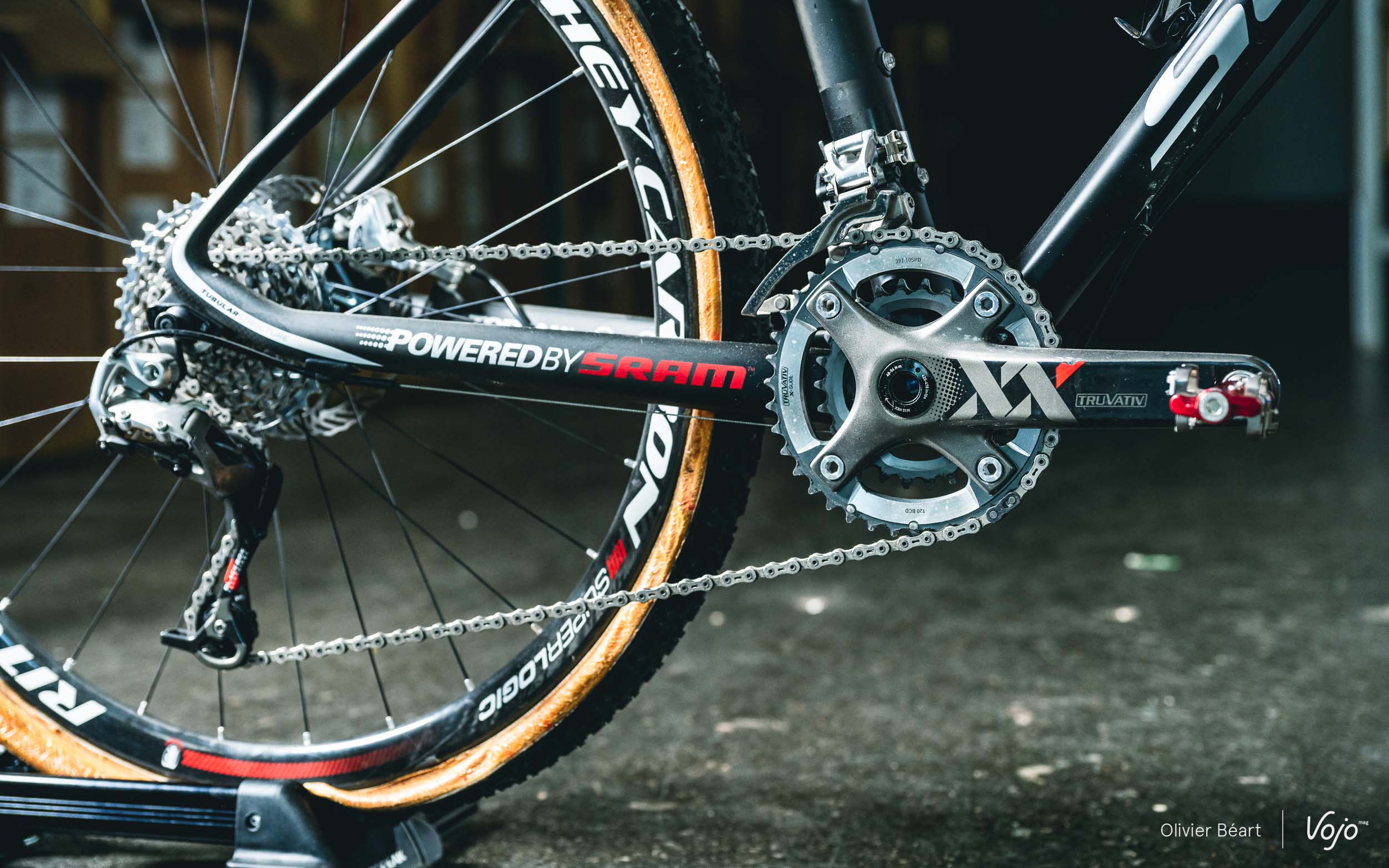 Côté tech/geek, ce vélo a marqué la première utilisation du tout nouveau groupe Sram XX SL T-Type, qui était encore en version Black Box (réservée aux meilleurs pilotes des teams sponsorisés par Sram) et qui n’a évidemment plus de secret pour vous puisque vous avez lu et relu nos articles à ce sujet !