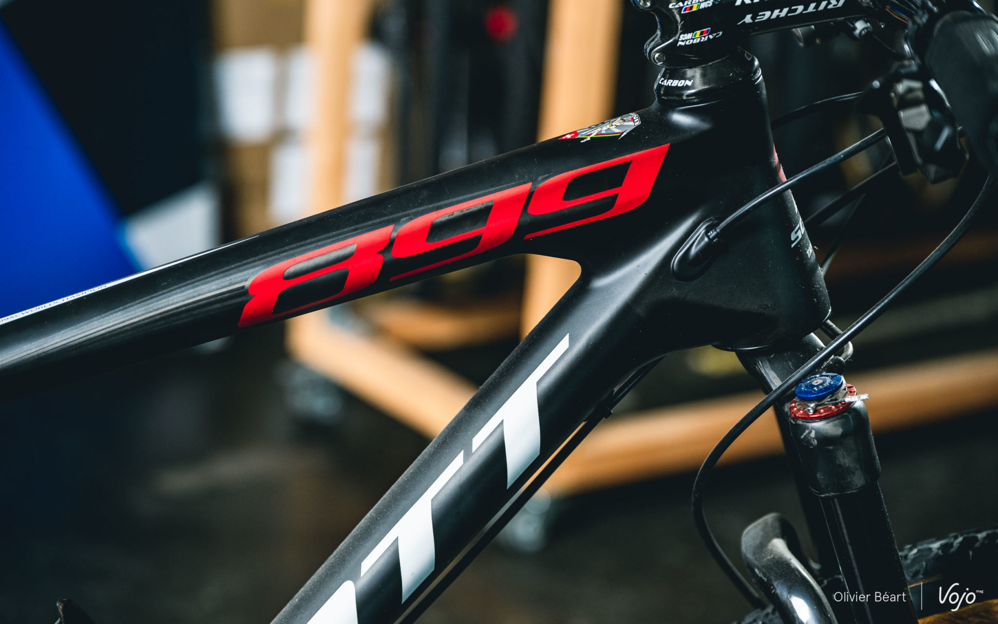 Par rapport au Spark roulé aux JO de Rio, le cadre est identique avec simplement ici une peinture spéciale faisant référence à l’or olympique et à ses principales autres victoires. Par contre, il y a du nouveau du côté des suspensions avec l’arrivée de RockShox à la place de DT Swiss ; le team s’appelant désormais Scott-Sram, ce qui est toujours le cas aujourd’hui.