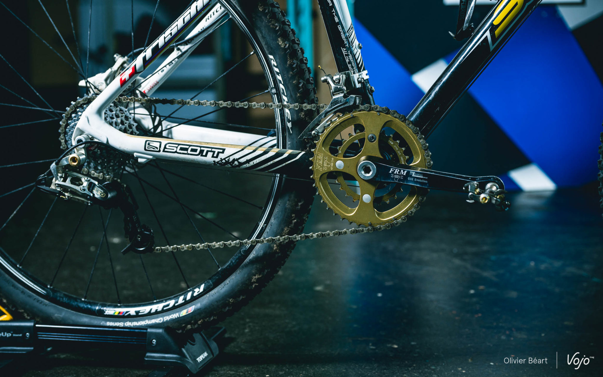 En effet, au-delà de l’évolution globale des vélos, il faut noter que ce qui est aujourd’hui le team Scott-Sram est un des plus stables au niveau de ses sponsors. Et Nino un des plus fidèles, puisqu’il aura roulé sur des vélos Scott… et des transmissions Sram toute sa carrière. Au fil des vélos présentés ci-dessous, vous aurez donc aussi un bel aperçu de l’évolution des châssis et des transmissions au fil des saisons.