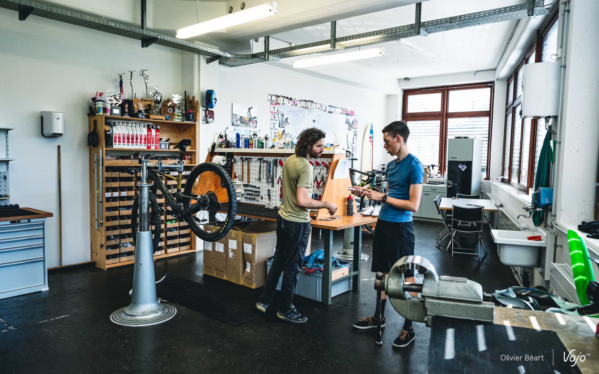 Quand il n’est pas sur une course, c’est dans un petit village suisse près de Zurich qu’on peut trouver Yanick. Là, dans son « antre », accompagné d’un jeune mécano à qui il met le pied à l’étrier, il prépare les vélos de l’équipe pour les manches suivantes. Ce qui, croyez-nous, n’est pas une mince affaire au niveau logistique, surtout quand on n’a pas les moyens et le personnel d’un team de F1.