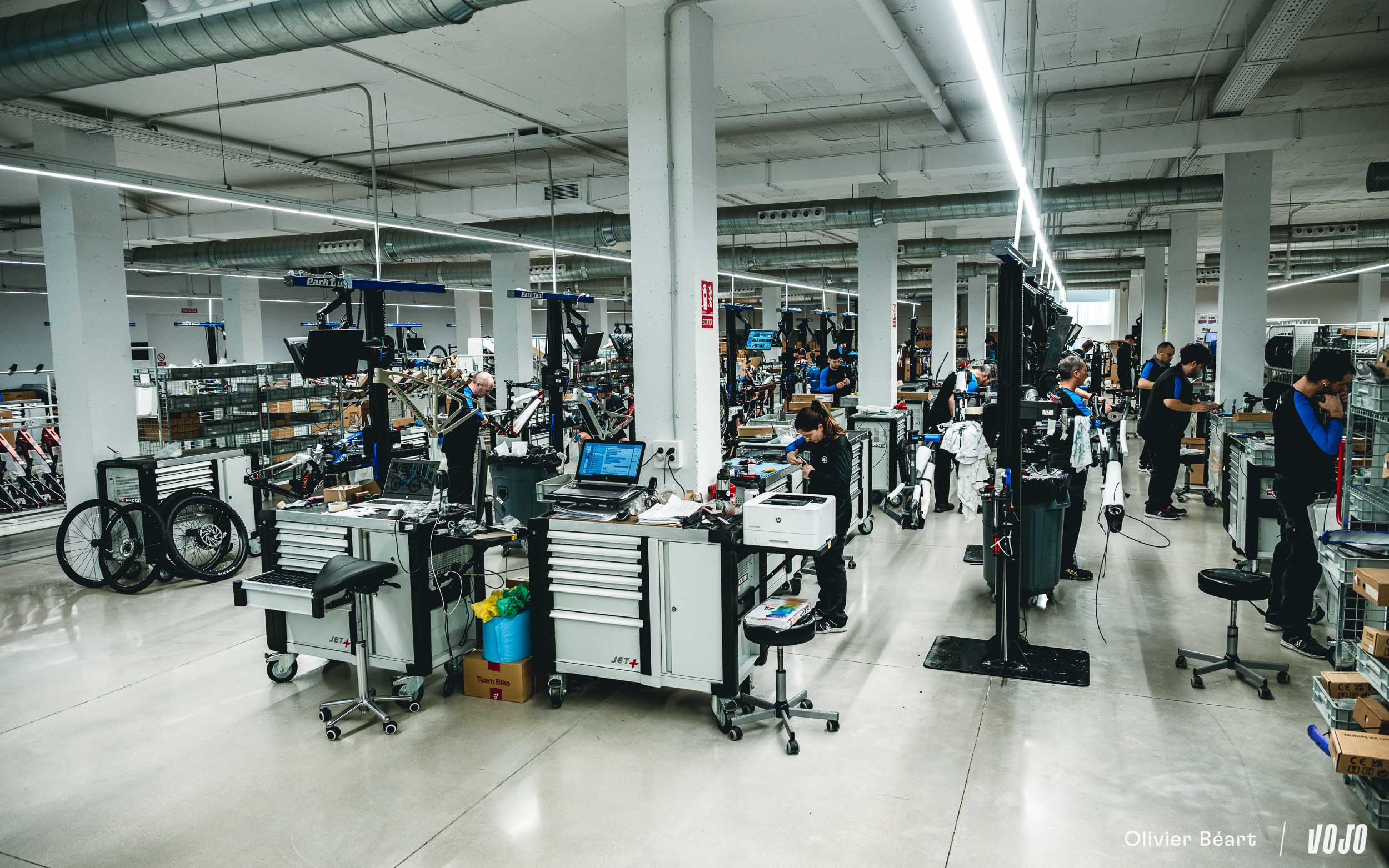 Ici, une grosse centaine de personnes travaillent au montage des vélos, sur les 270 que Mondraker emploie de par le monde.