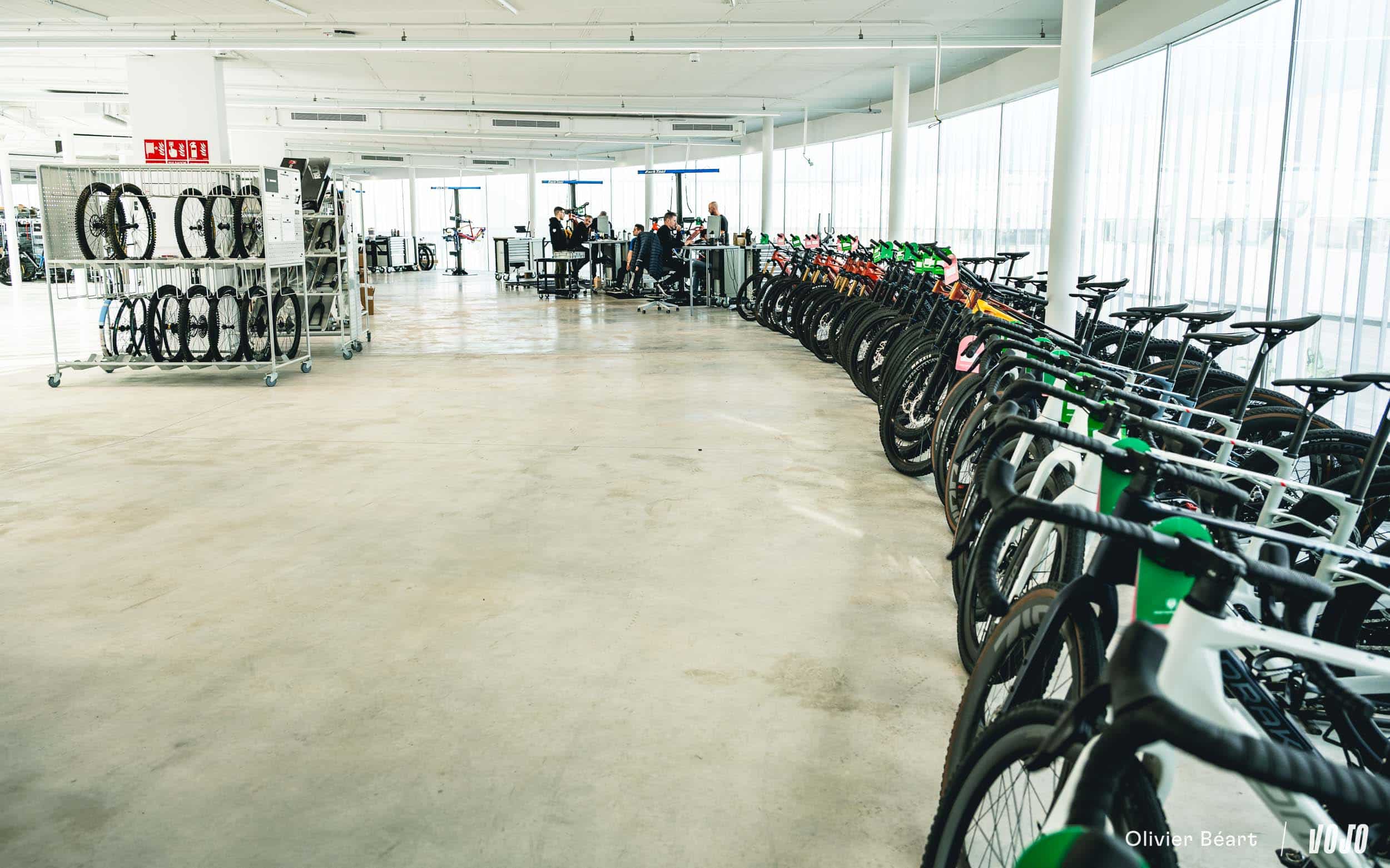 Quant aux vélos « spéciaux », les prototypes de test pour les équipes R&D, les vélos historiques que la marque conserve, ou encore ceux destinés aux ambassadeurs ainsi que le parc de vélos de test, ils sont assemblés et maintenus dans un espace dédié, situé quant à lui au dernier étage du bâtiment. Les protos qui préfigurent de futurs modèles avaient été (plus ou moins) cachés pour notre venue, mais rien que pouvoir voir les prototypes de vélos déjà sortis, c’était comme une sorte de visite de la caverne d’Ali Baba !