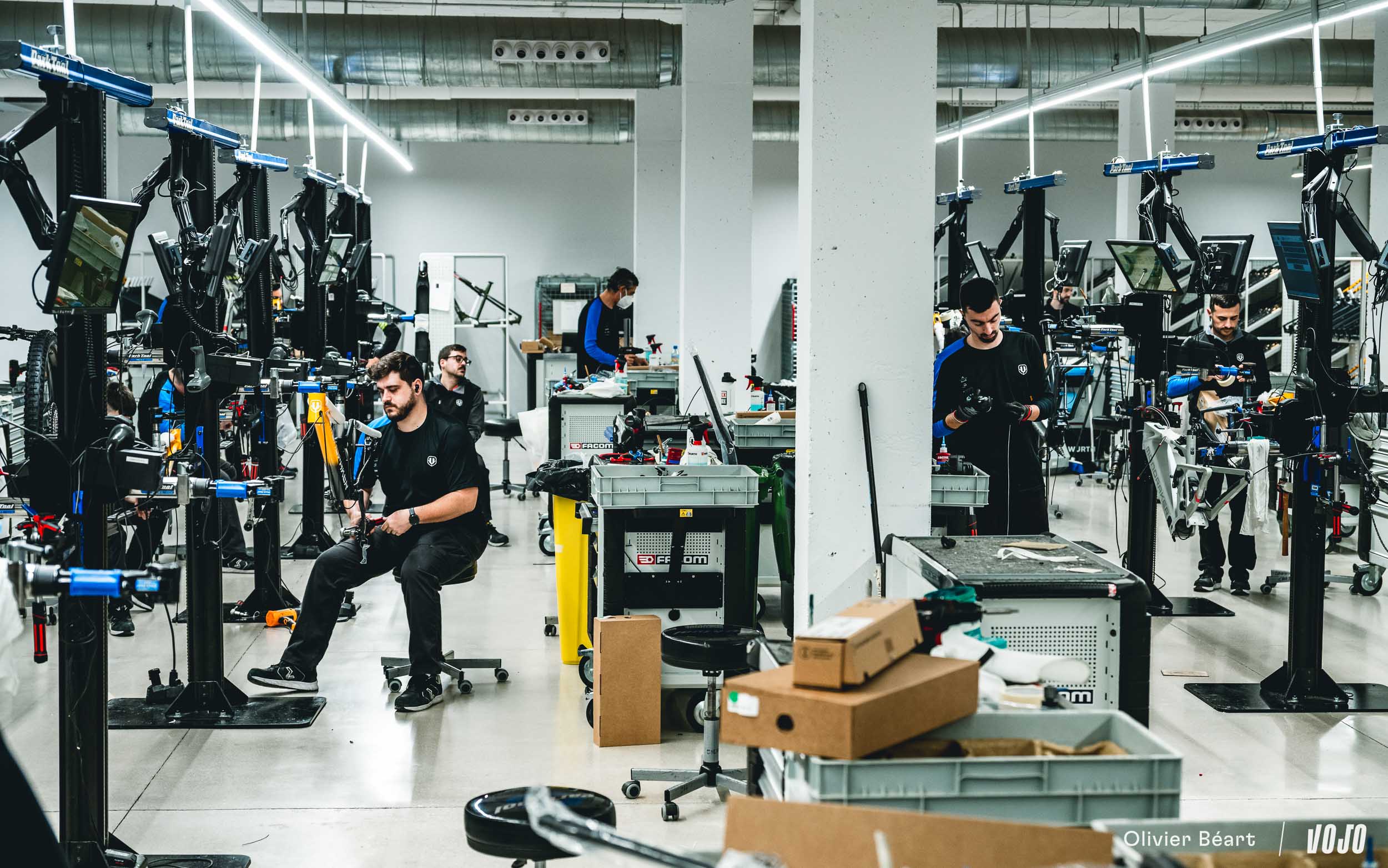 Ici, une grosse centaine de personnes travaillent au montage des vélos, sur les 270 que Mondraker emploie de par le monde.