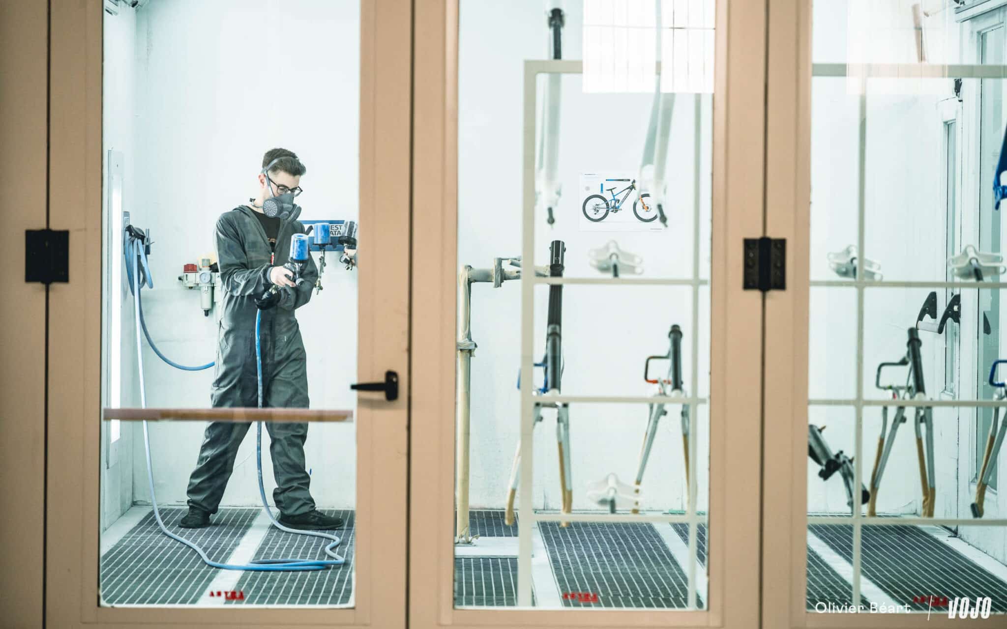 « Ce qui est très important dans ce lieu, c’est que nous avons juste à côté la cabine de peinture. C’est là que sont peints les vélos des teams, et aussi certaines séries limitées aux couleurs très particulières. Mais elle nous donne aussi énormément de flexibilité dans nos recherches. »