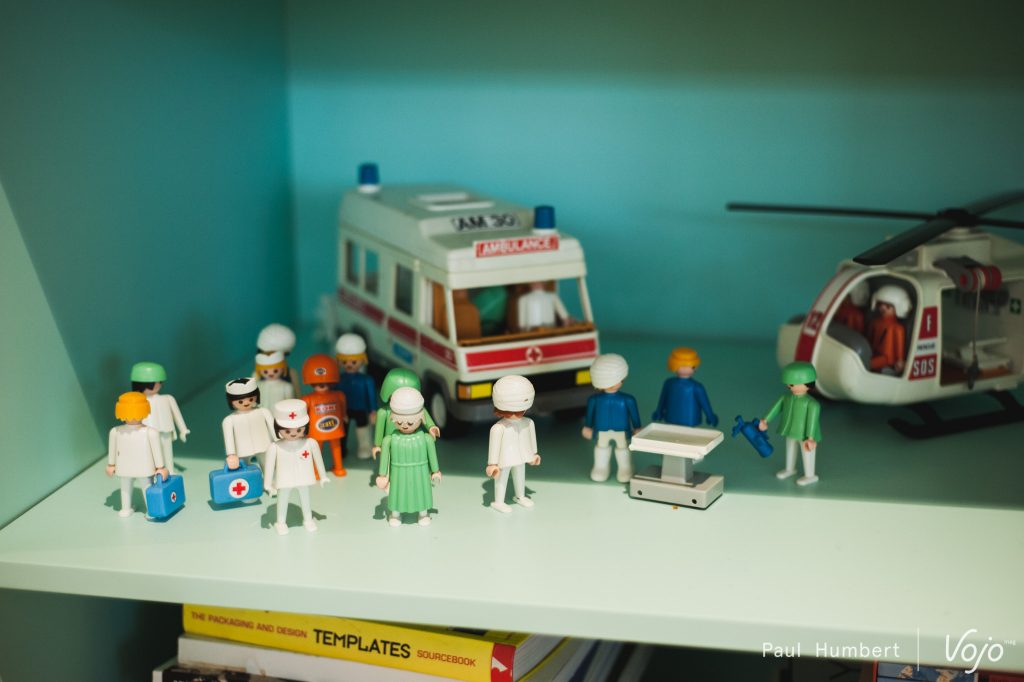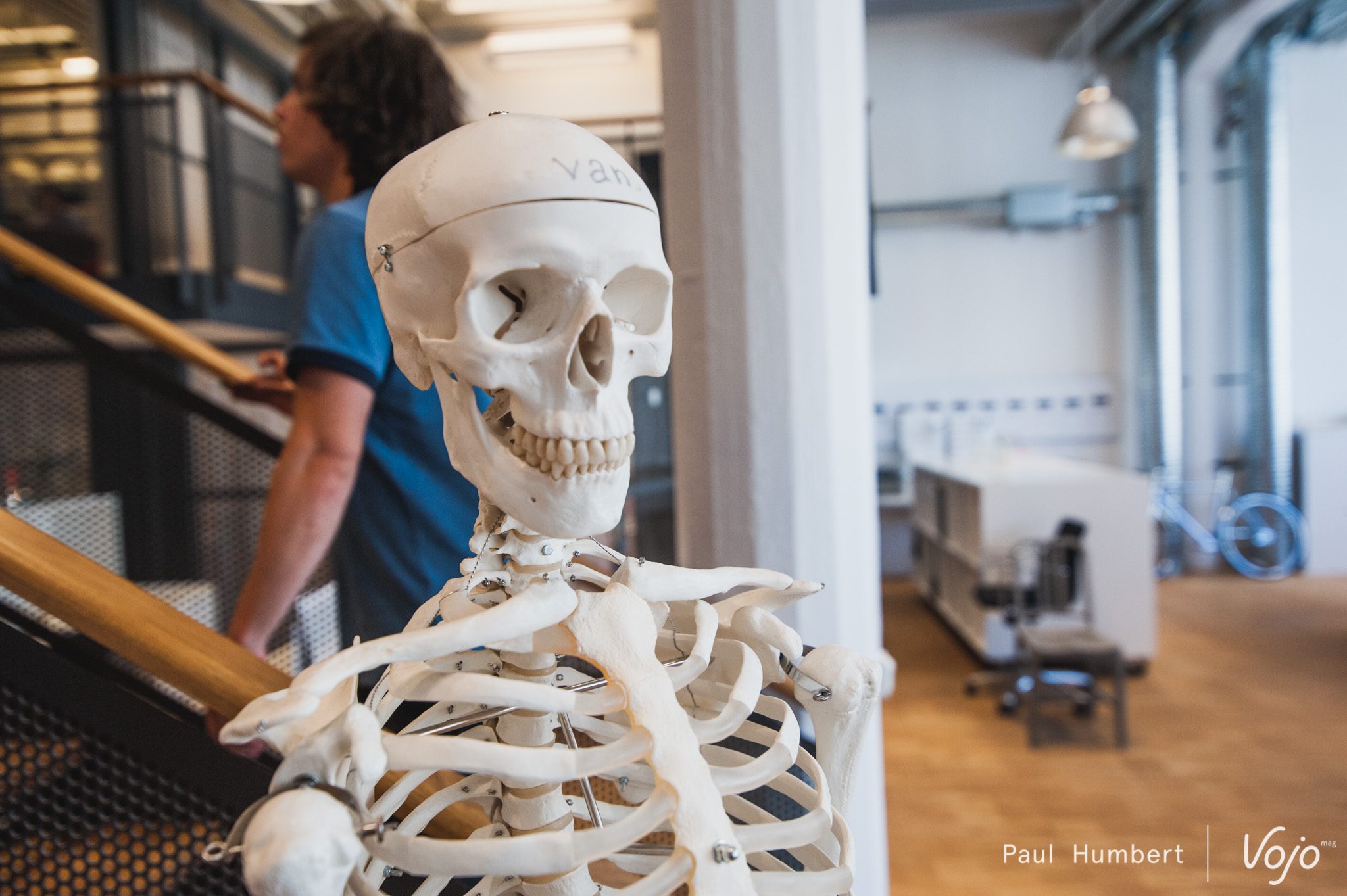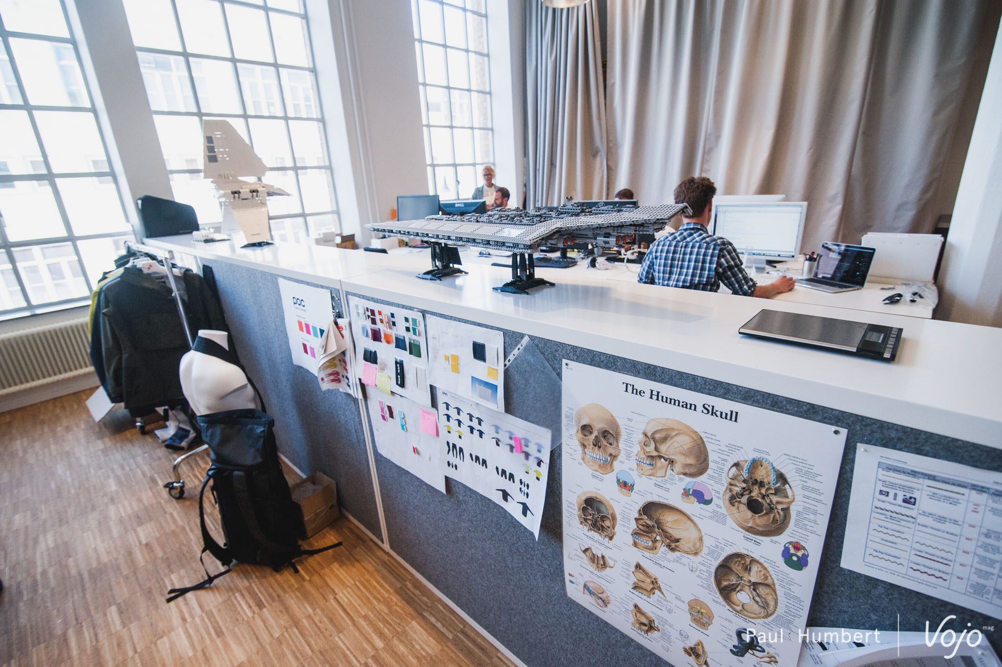 On attrape un morceau à grignoter et on commence le tour des locaux. Plutôt qu’une visite formelle, on nous laisse simplement vagabonder entre les bureaux. Une grosse vingtaine de personnes sont présentes dans l’open space et quelques bureaux et salles de réunion occupent l’étage. Entre les ordinateurs, on repère des gadgets, des souvenirs, des éléments de décoration ou des outils, on ne sait jamais trop. Entre les schémas du crâne humain, des palettes de couleur et des « mood-board », on prend la température. Le cadre de travail est sympathique mais le sujet mérite de l’attention.