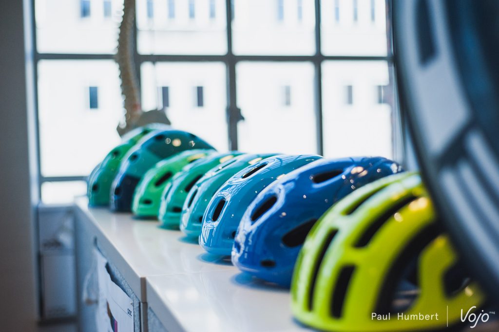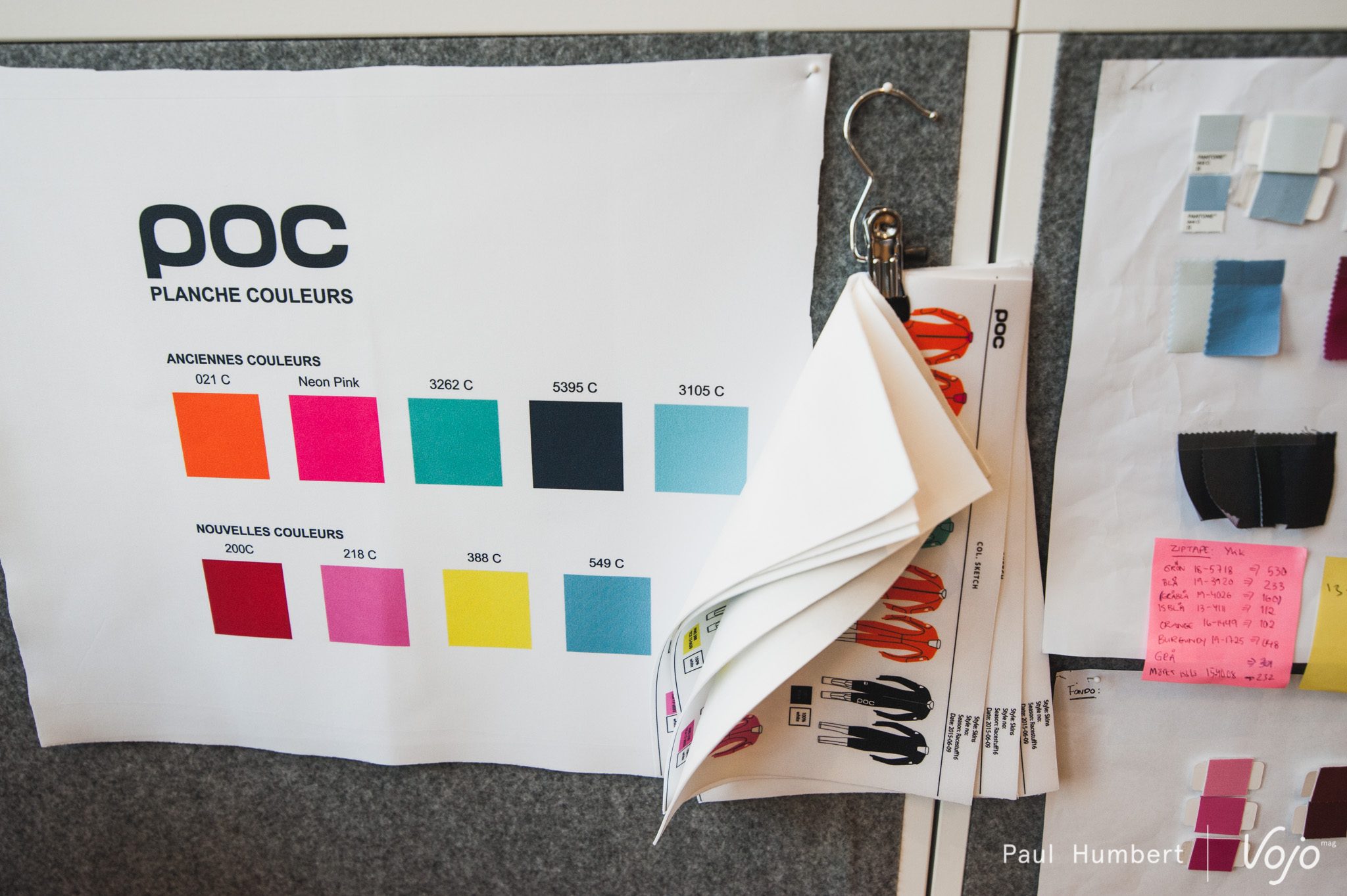 Entre harmonie, sobriété, impératif de visibilité et tendances, il est difficile de définir les bonnes couleurs pour les produits. Les idées sont inspirées par la nature mais également par le cyclisme dans le cas de la gamme cross-country. Les couleurs « fluo » sont éliminées des lignes « raceday » où les impératifs de visibilité sont moins grands. Pour les casques, le travail de design se fait en collaboration avec les ingénieurs car chacun doit penser à servir la cause de l’autre. Quand on se penche sur les coupes des vêtements, on apprend que l’influence de Manuel Fumic a joué son rôle dans le développement de shorts pour les pratiques XC que POC considère comme un gain de sécurité.
