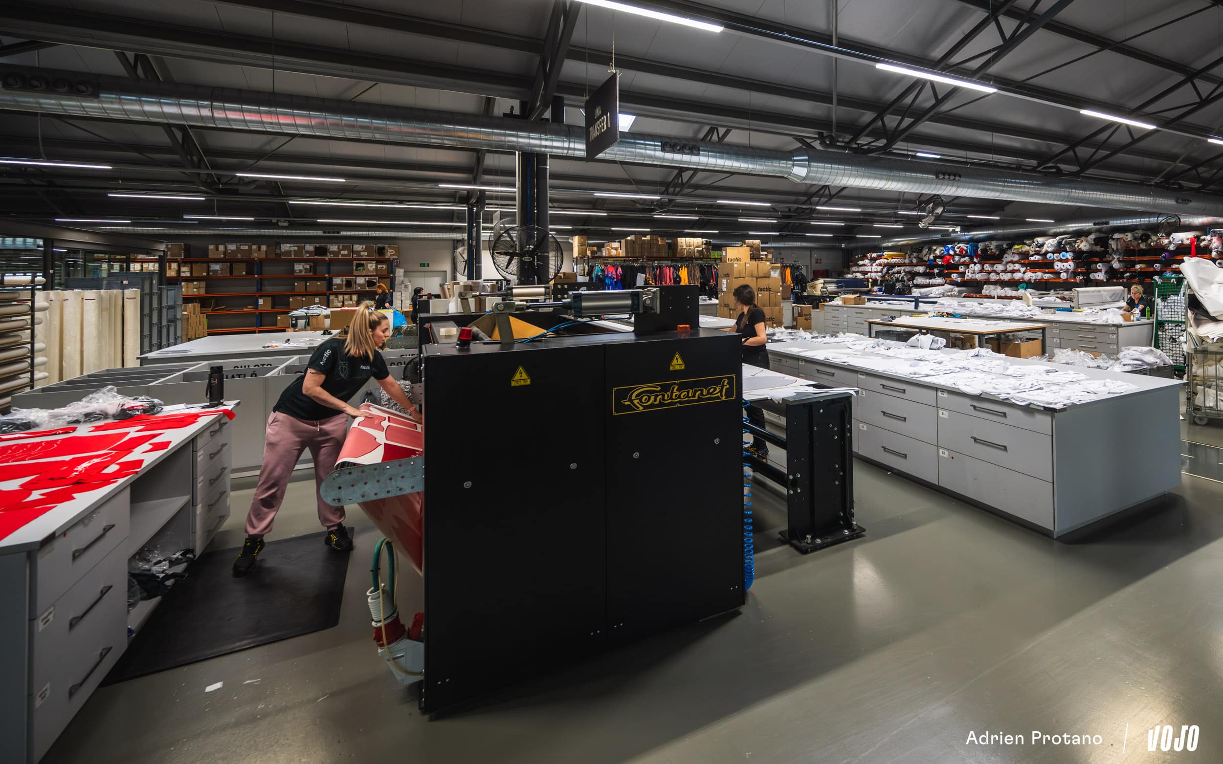 Avant de partir à destination de cet atelier d’assemblage, un dernier contrôle qualité est toutefois effectué avec attention. Tactic nous explique qu’à plein régime, la marque peut produire aux alentours de 700 maillots par jour, en sachant que les imprimantes peuvent tourner jusqu’à 24h sur 24h.