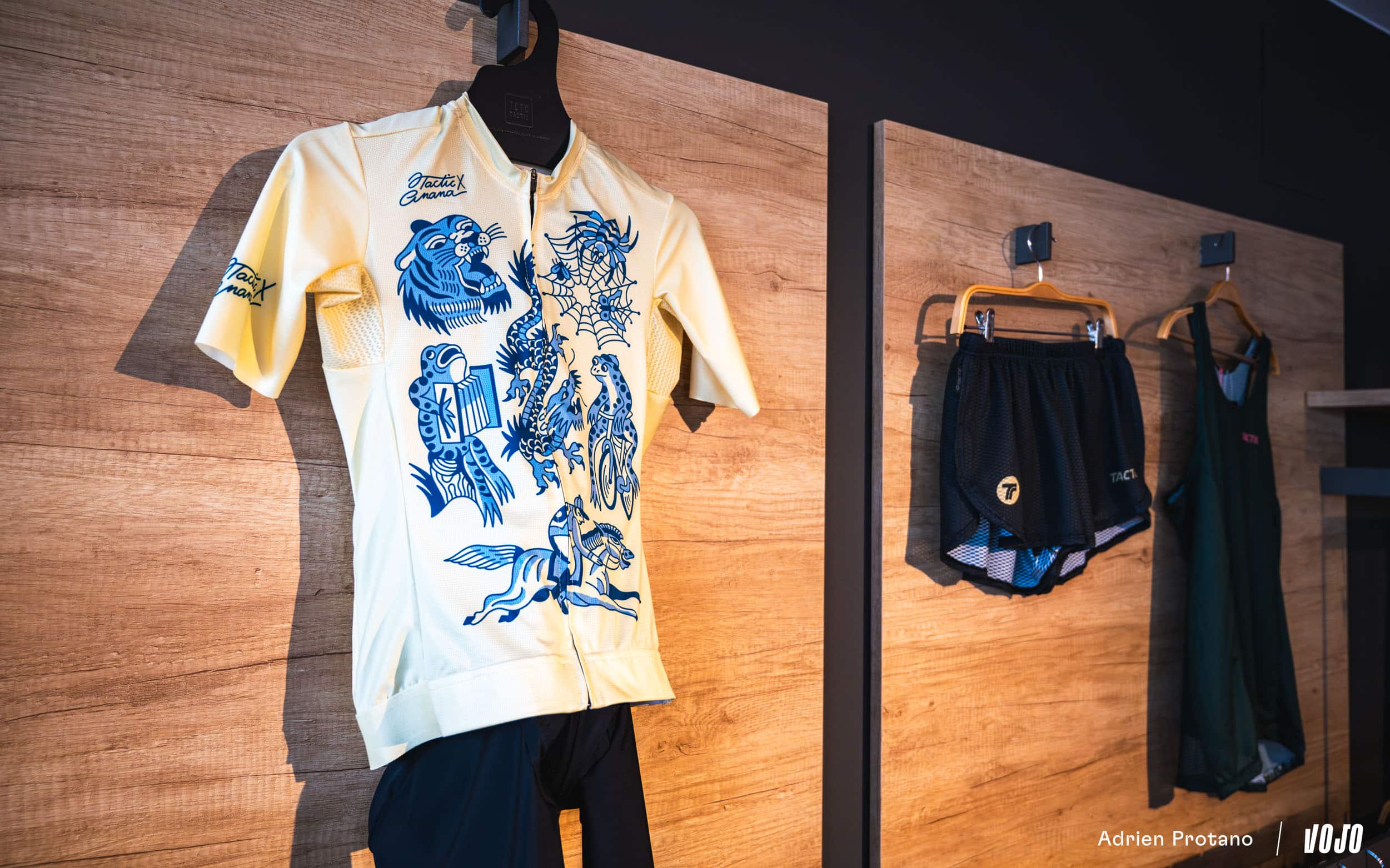 Des marques de vêtements de vélo, il y en a un paquet… Le parti pris de Tactic ? La possibilité de personnalisation poussée par le client. Que ce soit des couleurs, des logos, des écritures, le champ des possibles est très large !
