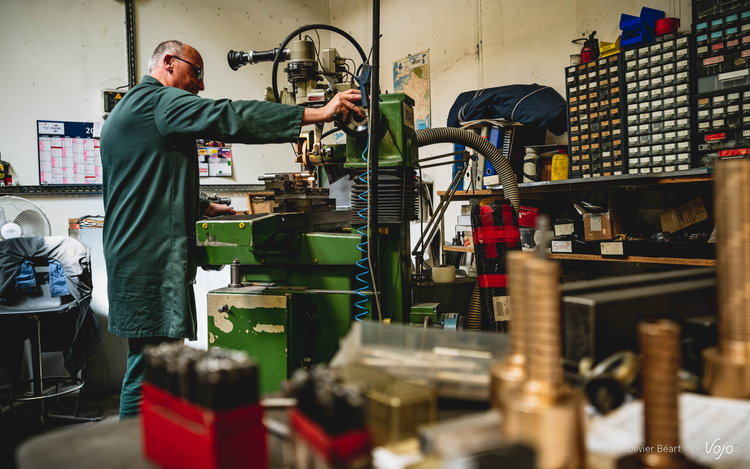 Non seulement plusieurs corps de pompe sont encore fabriqués ou finalisés ici selon une technique d’emboutissage bien précise…