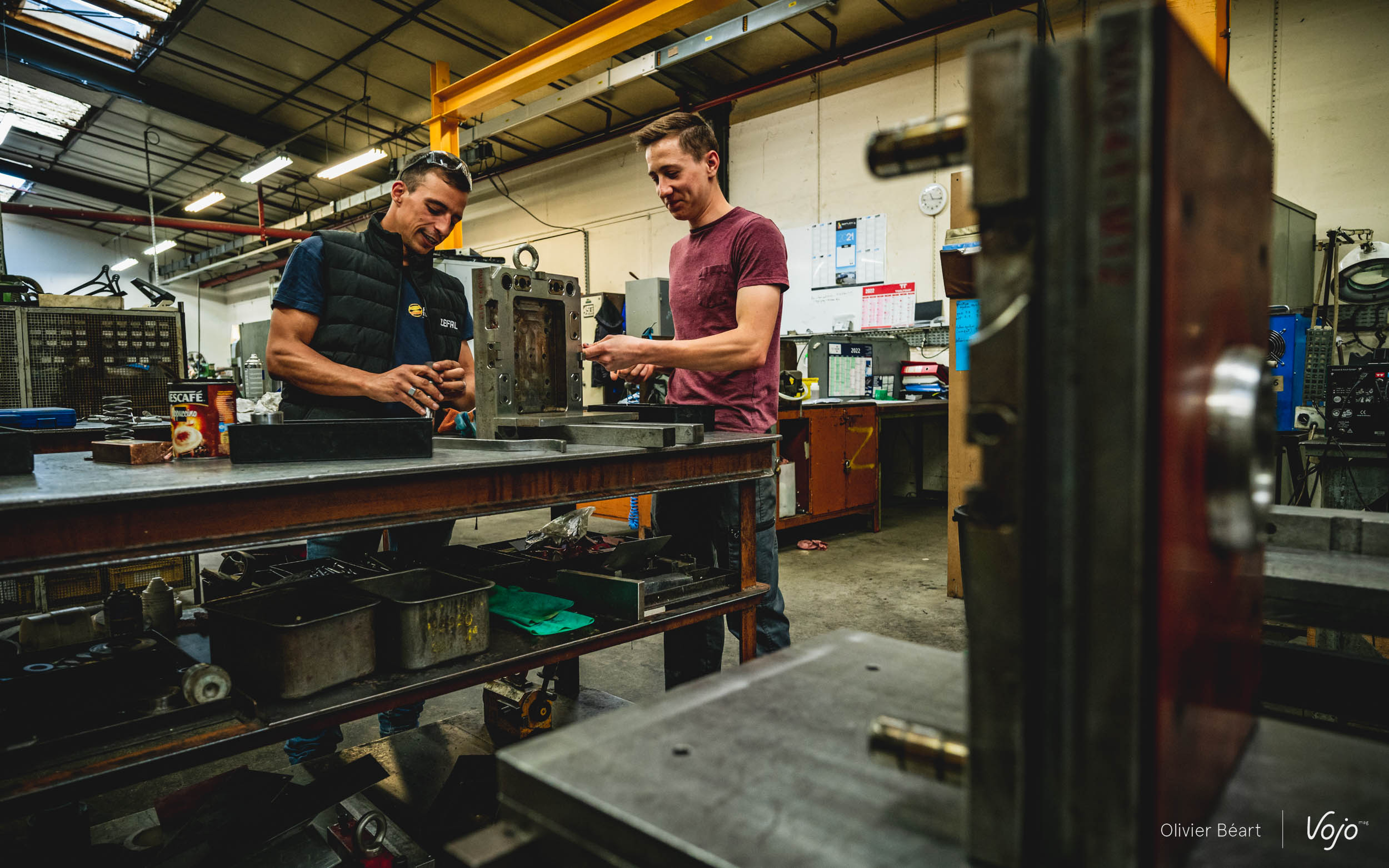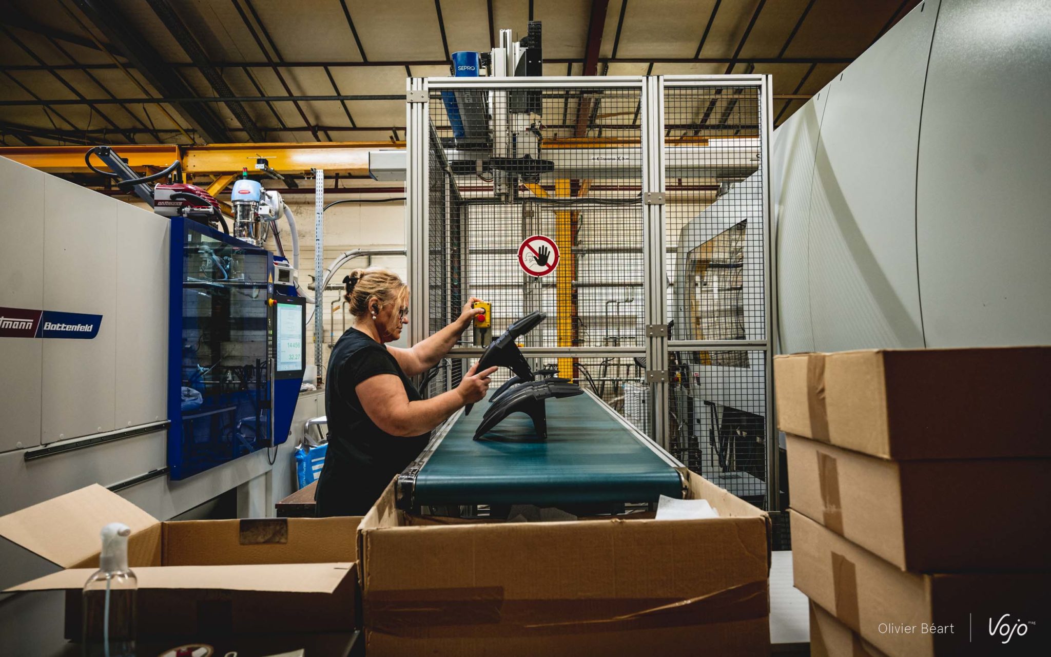 En tout, il y a plus de 130 moules différents qui tournent en alternance ! Et devinez quoi ? S’ils ne sont pas fabriqués en interne, ils sont bel et bien entretenus ici grâce à une importante équipe d’entretien et support technique. Et on met un point d’honneur à former la jeunesse, comme ce stagiaire en plein apprentissage (à droite).