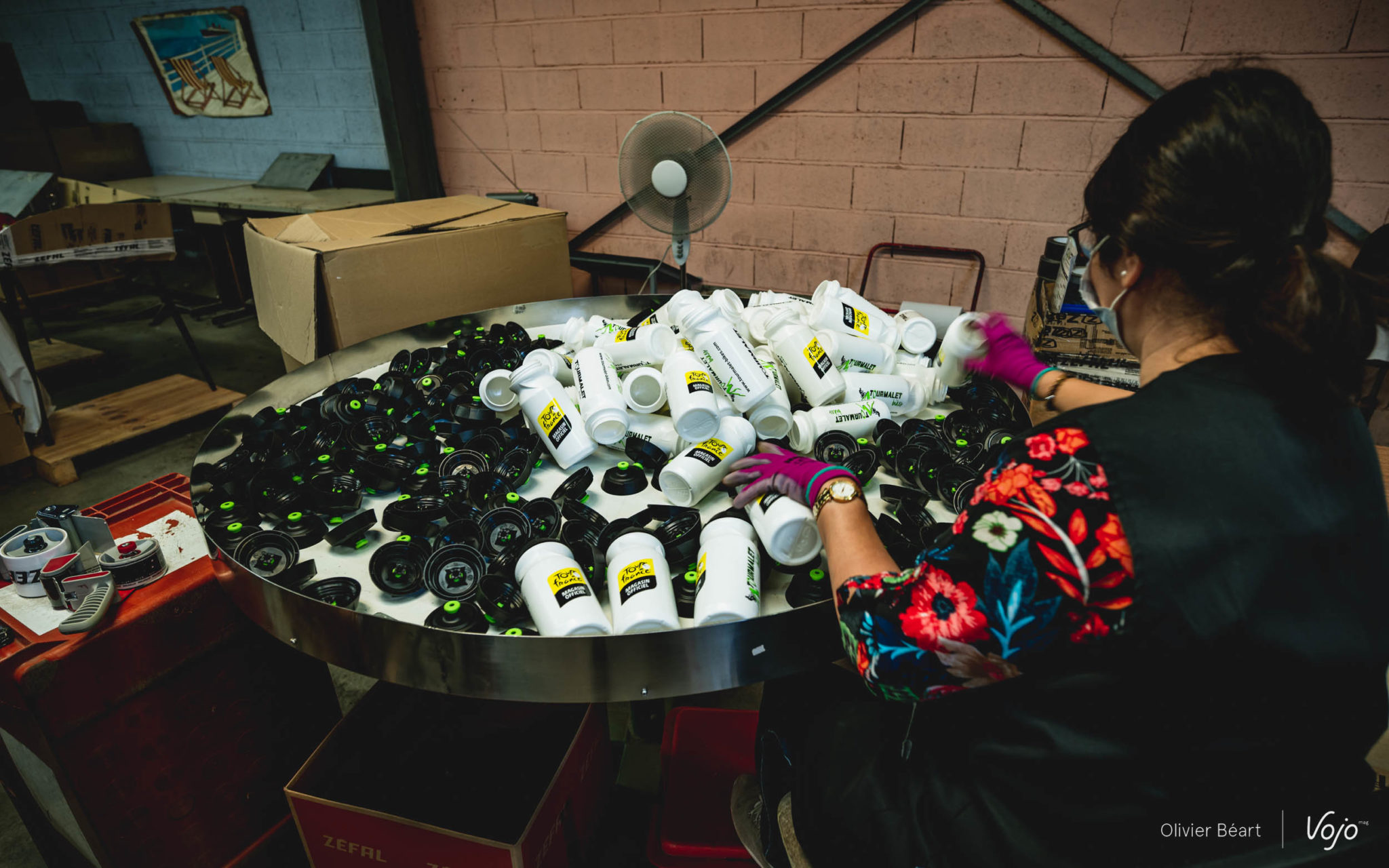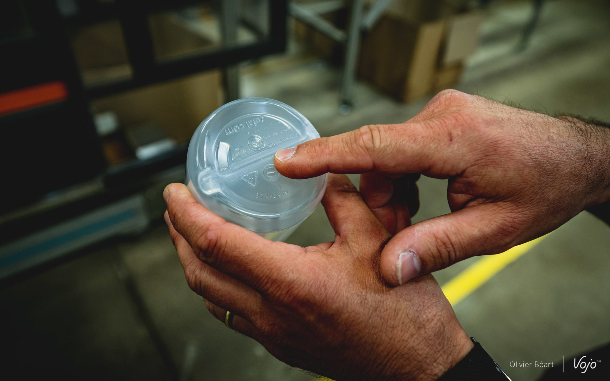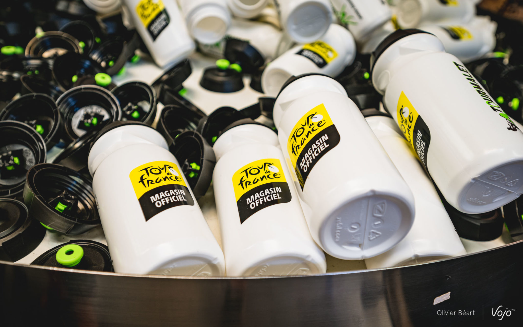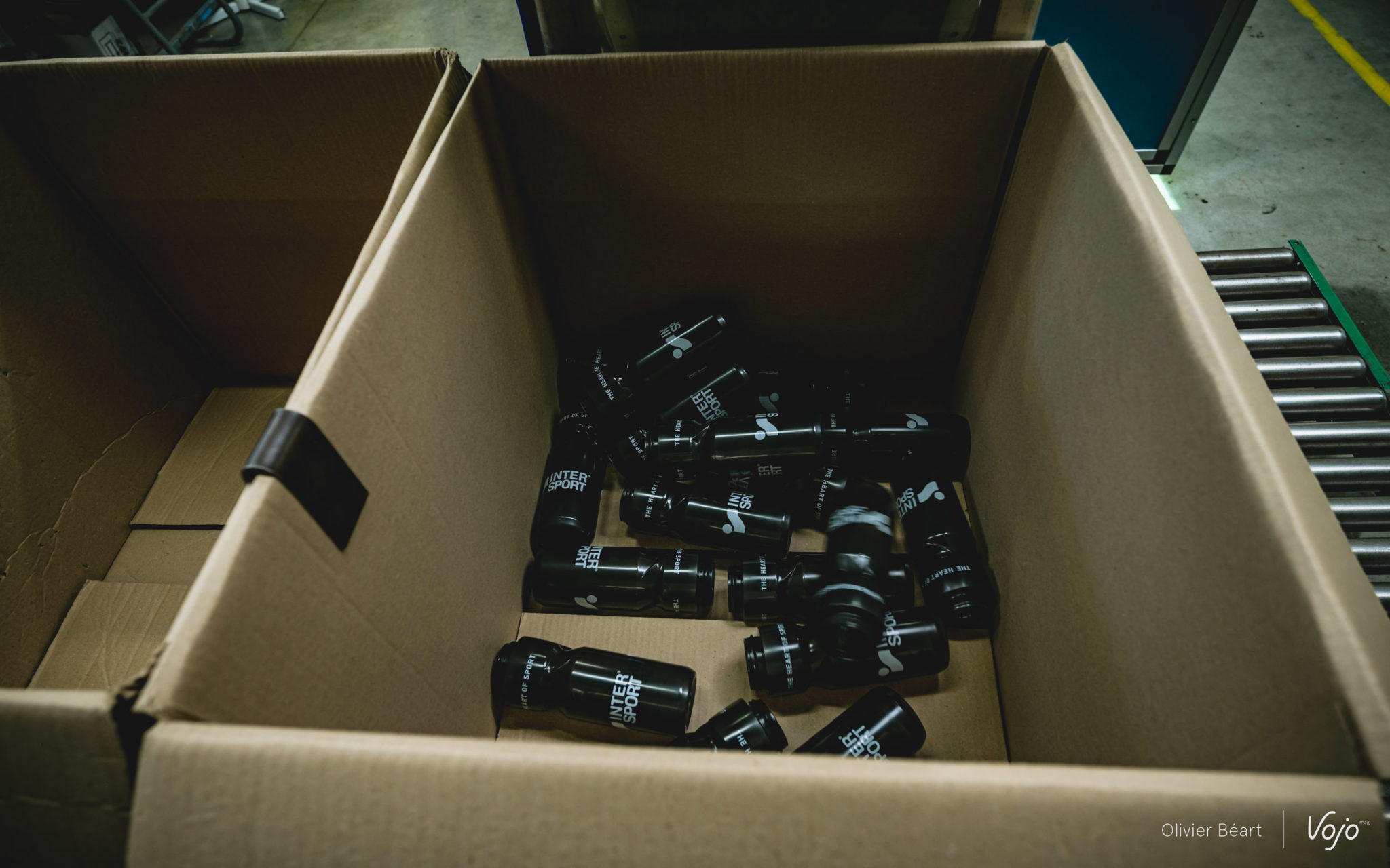 Lors de l’assemblage final, une opération encore largement manuelle, on constate que ces possibilités de personnalisation séduisent de très prestigieux clients, comme ici un des magasins officiels du Tour de France, qui commande ses bidons chez Zéfal.