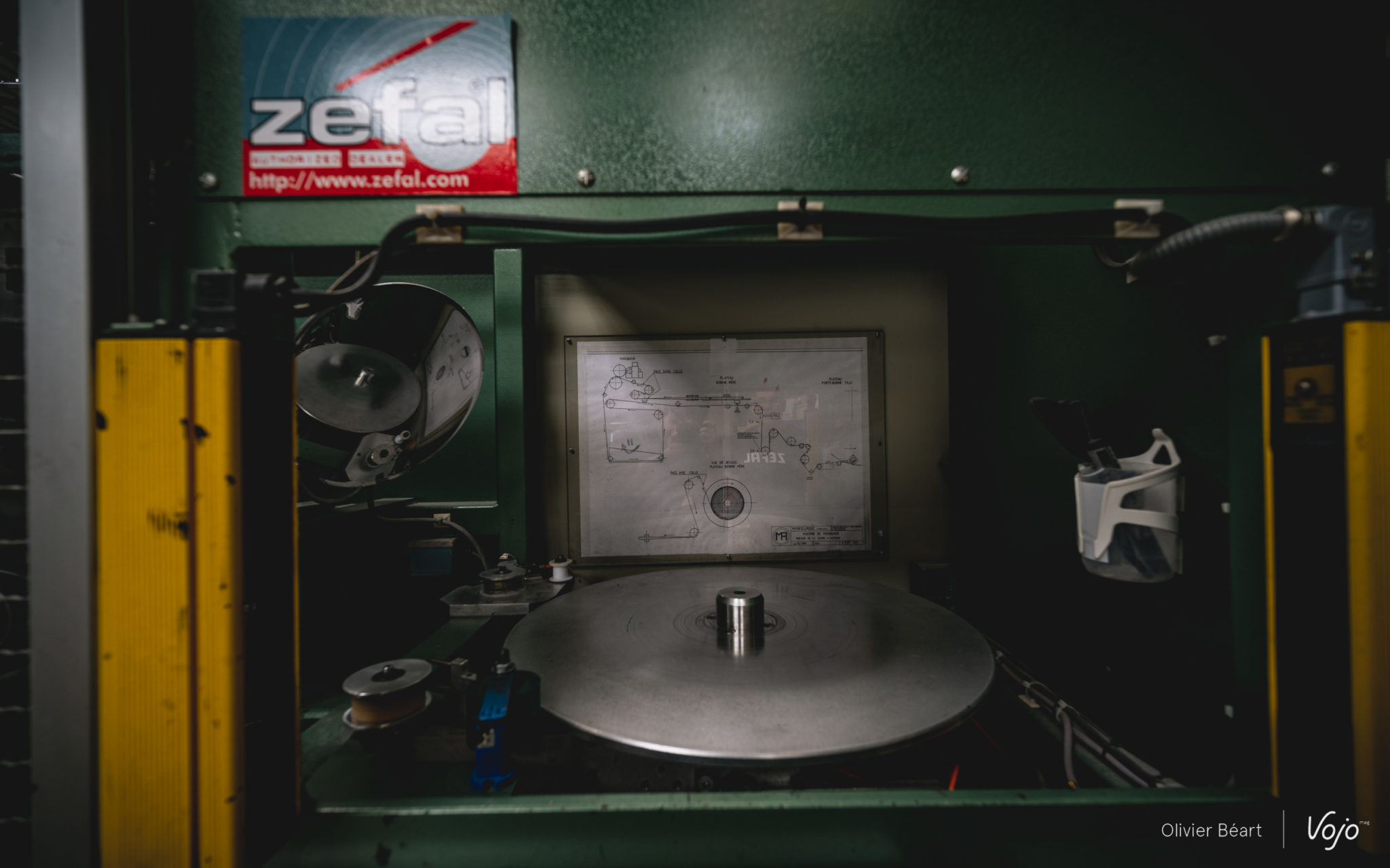 Ce n’est autre qu’une impressionnante machine d’assemblage des pompes ! Une des activités historiques de la marque, et qui compte toujours parmi les plus importantes. Savez-vous d’ailleurs que le nom de Zéfal vient de là ? Il s’agit à la base du nom d’un modèle de pompe lancé au milieu des années 1930, venant de la contraction de « Zéfir » (personnification du vent d’ouest) et de « aluminium », le matériau de la pompe, que Zéfal a été un des premiers à utiliser et qui a fait sa renommée. C’est dans les années 90 que ce patronyme s’est imposé à toute l’entreprise.