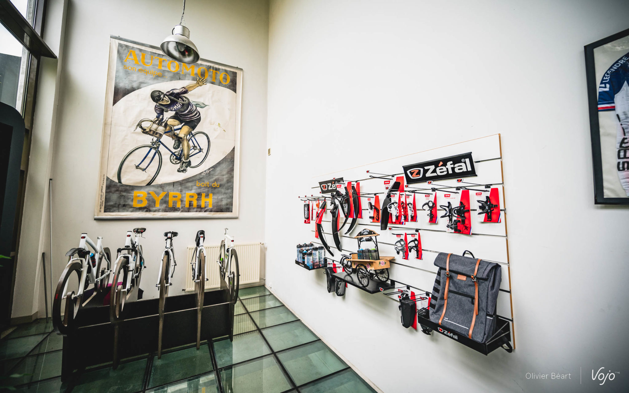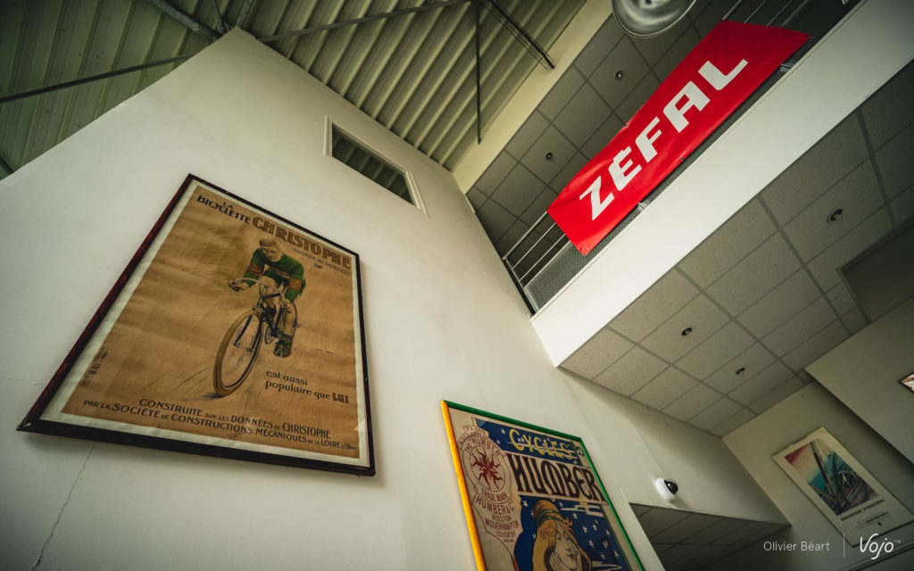 Cette rencontre entre passé et présent se remarque quasiment à chaque étape de notre visite. Dès le hall d’entrée, les anciennes affiches cyclistes (dont le père d’Aurélien et Mathieu était un grand collectionneur) côtoient les derniers produits de la marque.