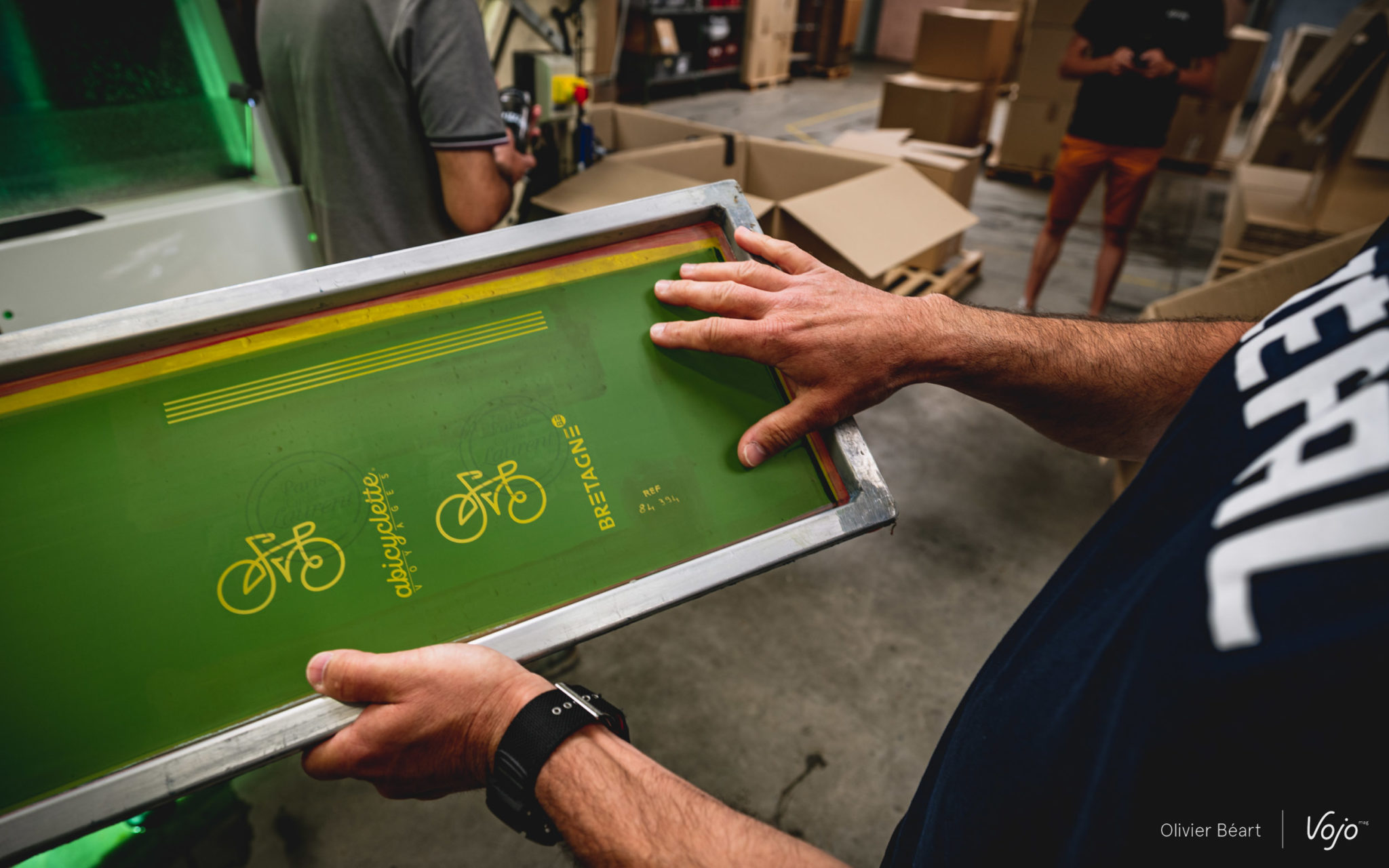 Ici aussi, tout est fait en interne, y compris les plaques de sérigraphie, ce qui permet une flexibilité totale. De quelques pièces à plusieurs milliers, tout est possible ou presque.