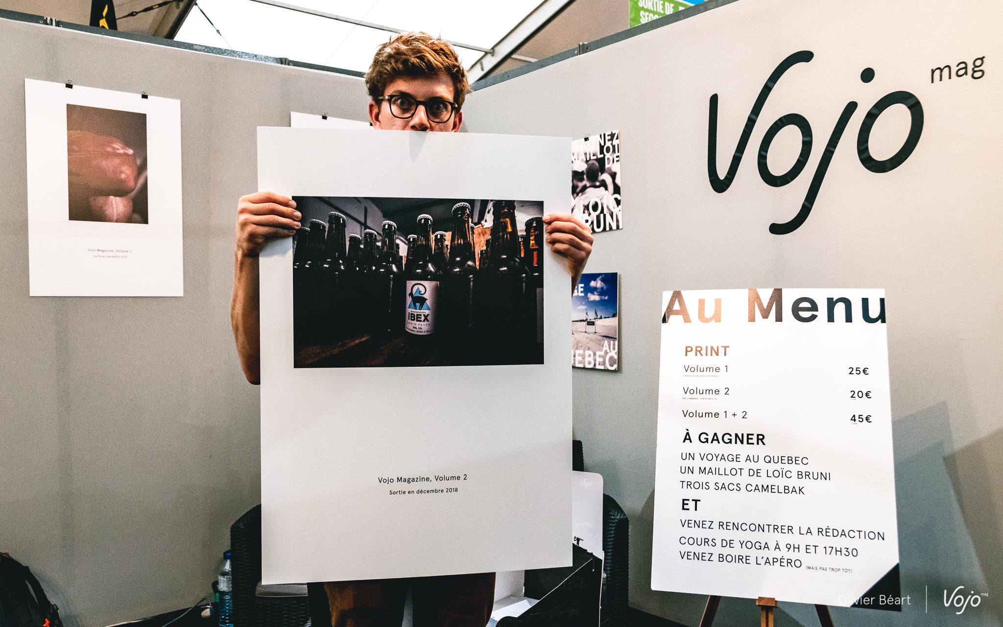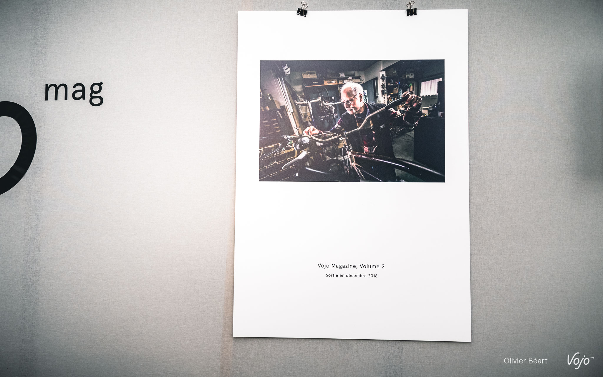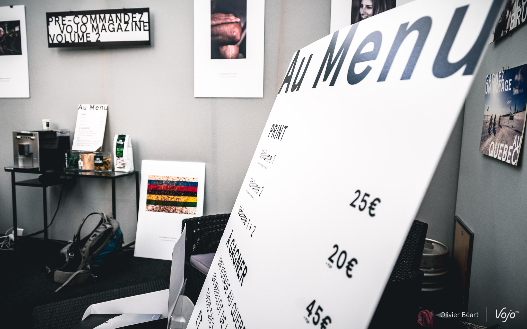 « Le même dans l’autre », c’est un peu l’idée. Et elle n’est pas simple. En fait, c’était presque plus facile de faire un numéro 1. Parce qu’on crée tout. On prend un risque, c’est sûr, mais la page est entièrement blanche, alors on ne risque pas le hors-sujet. Pour ce Volume 2, on avait l’envie que ça ressemble au Volume 1 (d’où « le même ») pour continuer à, mais aussi celle de créer quelque chose de différent (rapport à la question du « dans l’autre »), qui ne vous donne pas l’impression de revoir le Volume précédent. Sur notre stand du Roc d’Azur, nous avons exposé six visuels de quelques-uns des sujets qui ponctuent les 300 pages du Volume 2. Si vous n’avez pas eu la possibilité de passer à Fréjus, pas question de vous priver malgré tout de cet aperçu ! Ce qu’il y a de commun avec le Volume 1 ? L’envie de vous surprendre. De partager avec vous des rencontres marquantes, des histoires inédites que l’on a trouvées fortes, un regard peut-être différent sur ce milieu du vélo qui nous et vous passionne. Alors rendez-vous en décembre 2018 pour le tenir dans les mains. Mais d’ici là, si vous souhaitez le précommander pour être sûr de le recevoir pour les fêtes de fin d’année, cliquez sur notre boutique en ligne : shop.vojomag.com Pour le lancement des pré-commandes, un tarif spécial vous est proposé : 20 euros au lieu de 25 (+ frais de port de 6 euros). On y retourne, histoire de boucler la dernière ligne droite !
