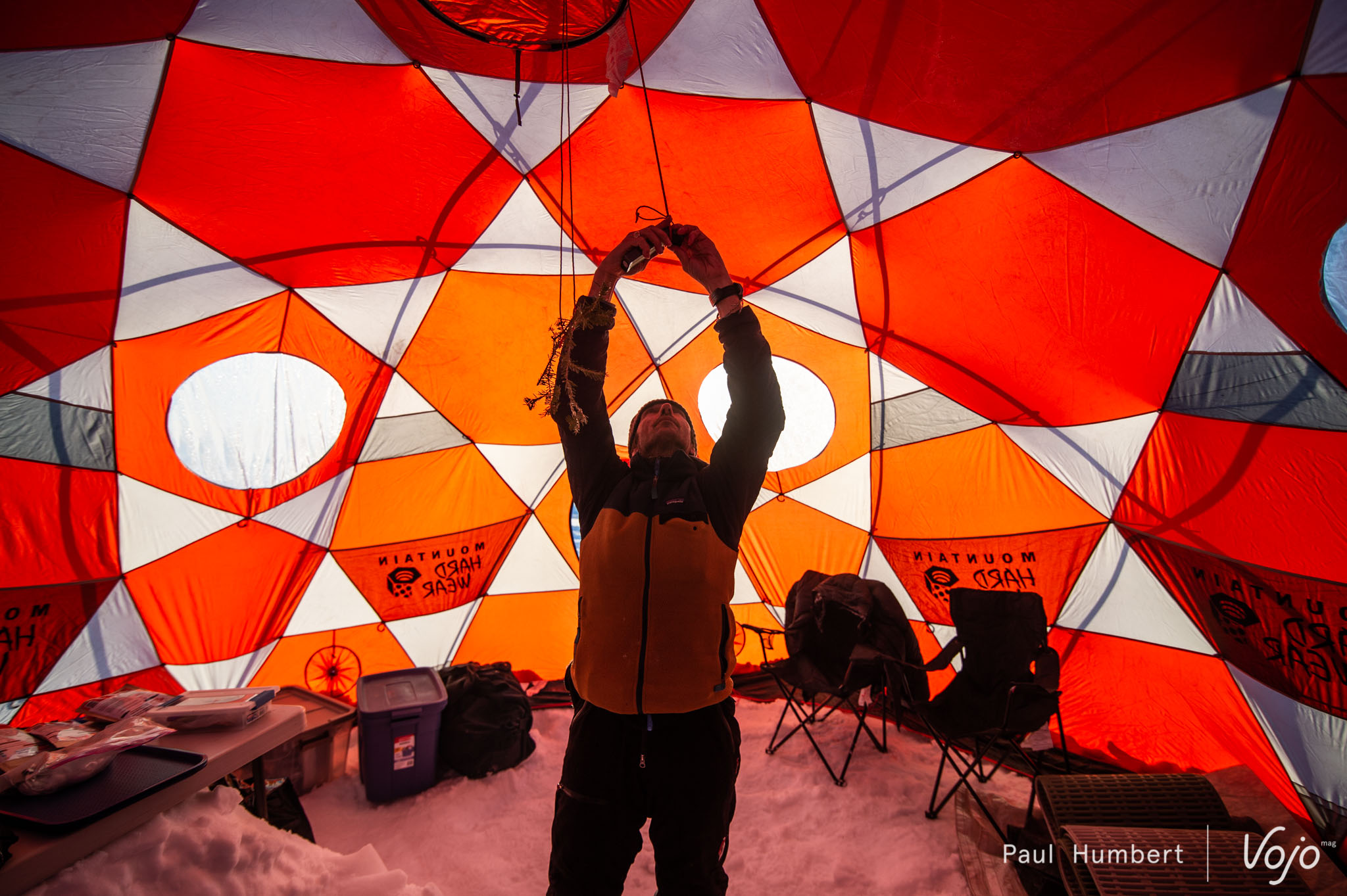 Nos hôtes ont tout prévu pour nous, et après un repas lyophilisé avalé avec appétit et quelques marshmallow grillés, on file se glisser dans nos gros sacs de couchages. On se serre dans nos sacs de couchage, habillés, une bouillotte entre les jambes et les chaussons de nos bottes avec nous pour une nuit de Saint Valentin que personne n’est près d’oublier !