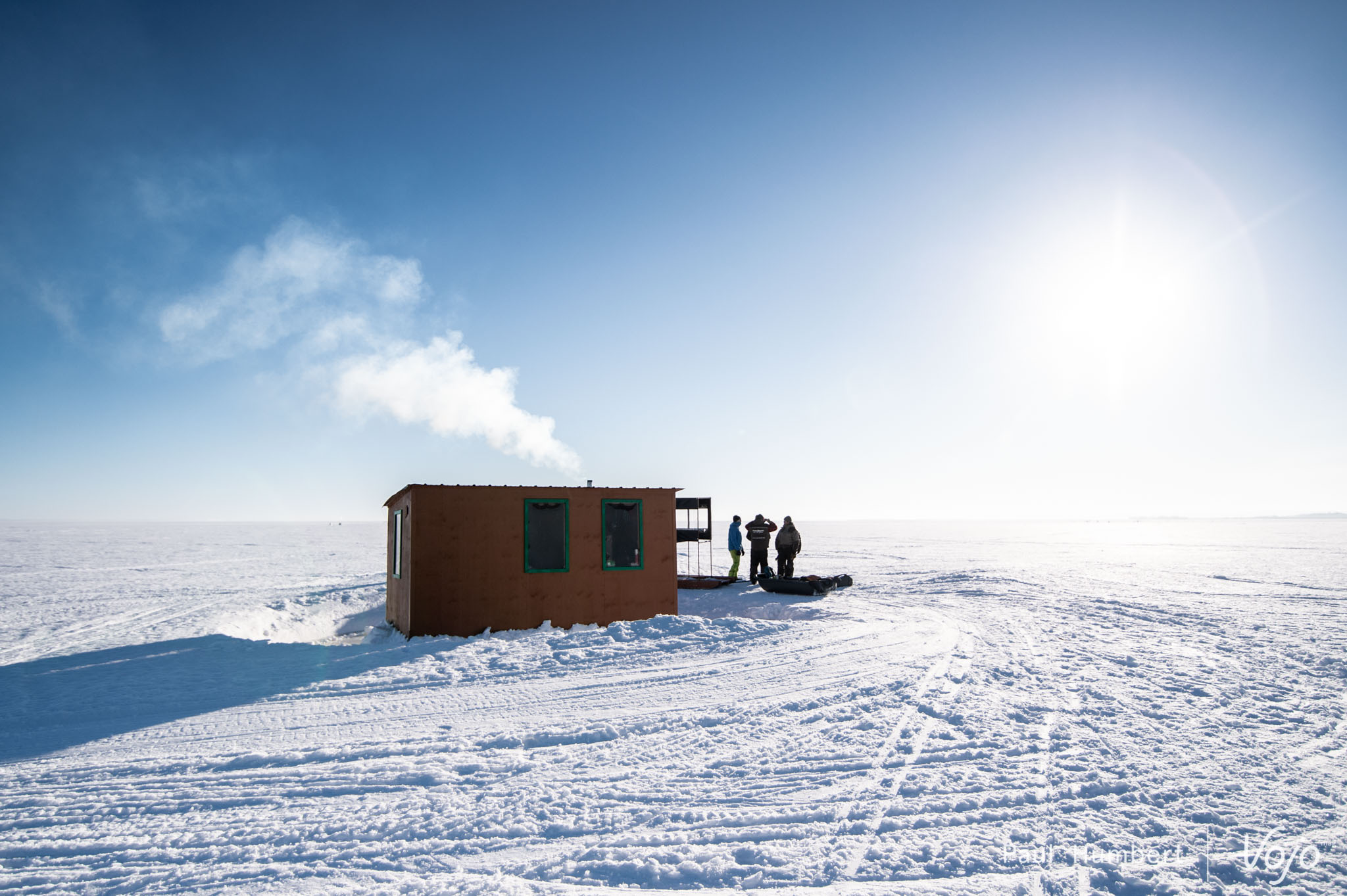 Le lac compte d’innombrables cabanes de pêche qu’on rejoint en fat bikes (il paraît), ou en motoneige (surtout) pour une expérience paisible en quête de poisson.