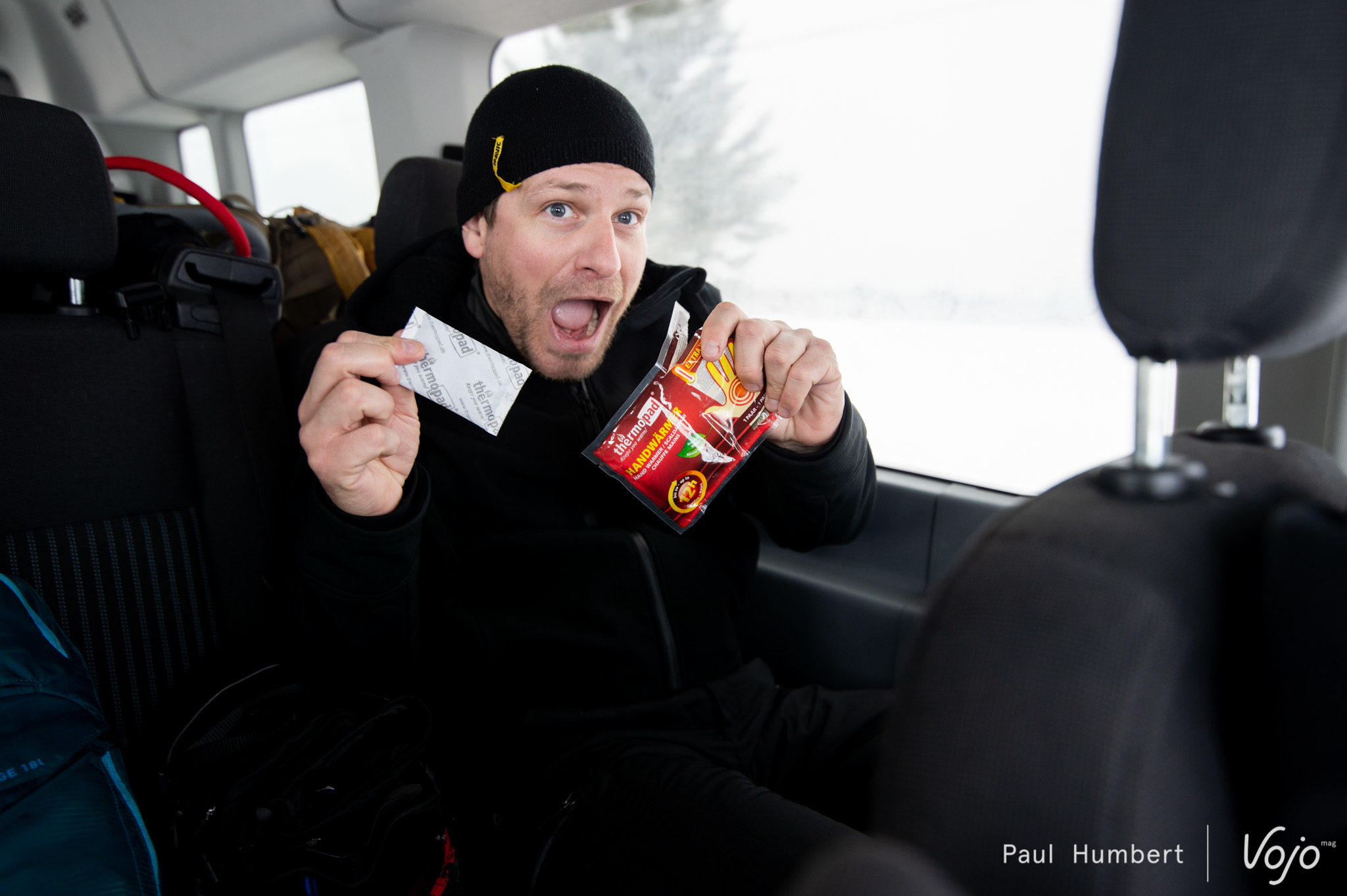 Pierre et Gaëlle sont les premiers de notre groupe à découvrir ce qui nous sauvera pendant notre voyage : les chaufferettes. Ces petits sachets à combustion lente produisent de la chaleur pendant plusieurs heures et se glissent dans nos chaussures comme dans nos poches. Et si nos équipements d’européens sont plutôt réfléchis, ils peuvent envier ceux de nos voisins québécois. Ces chaufferettes ont été d’une belle aide pendant tout notre séjour.