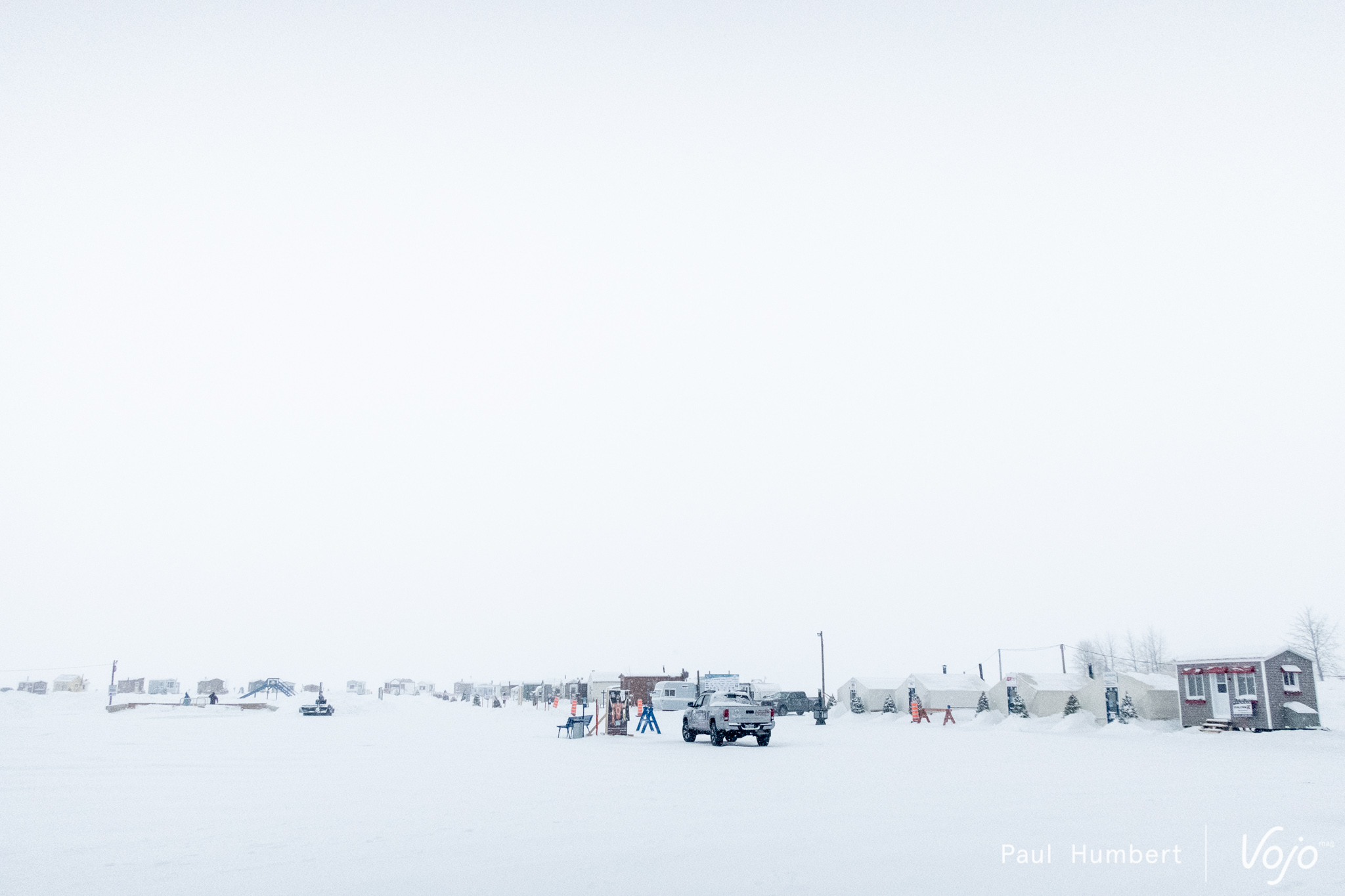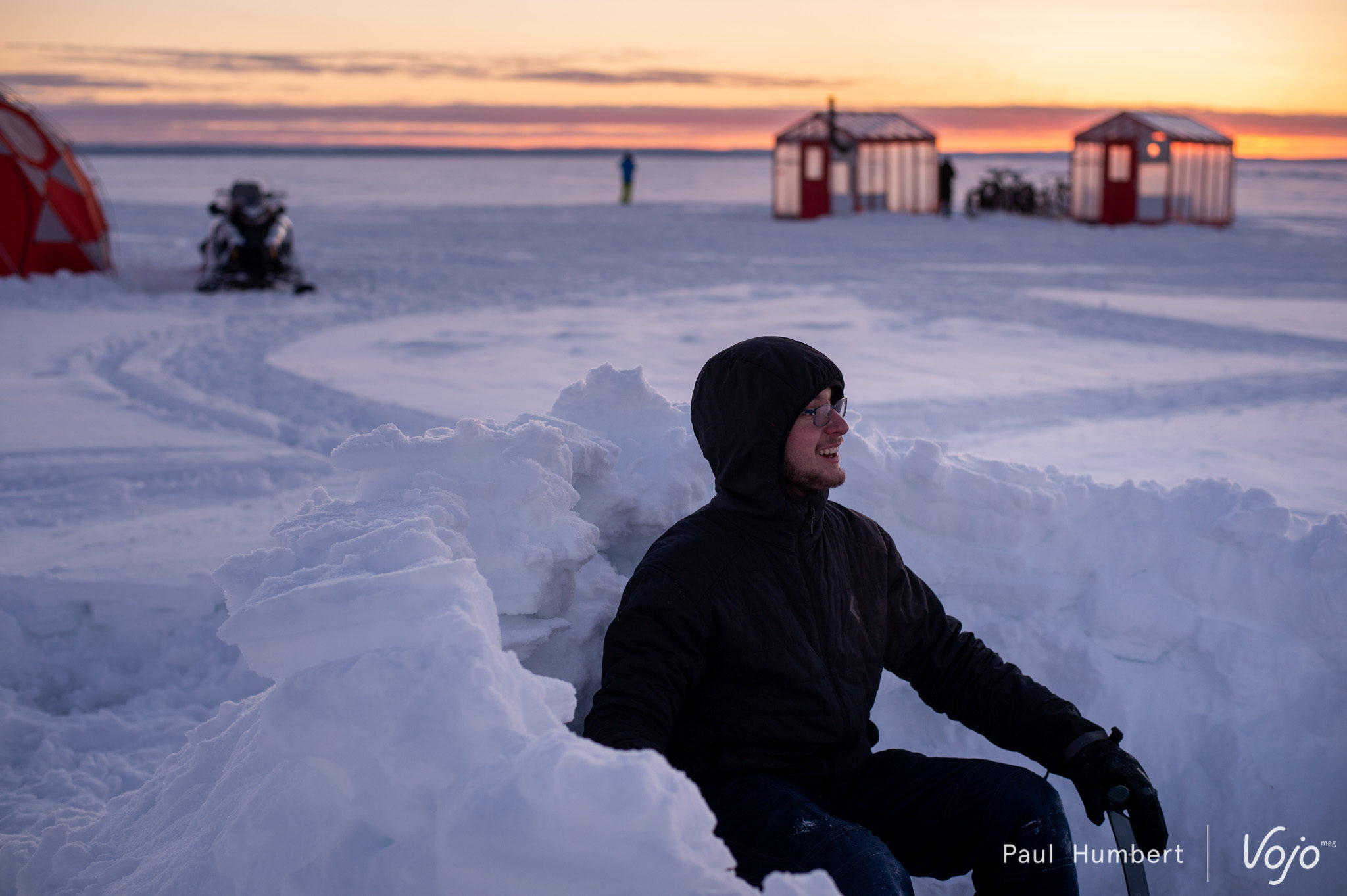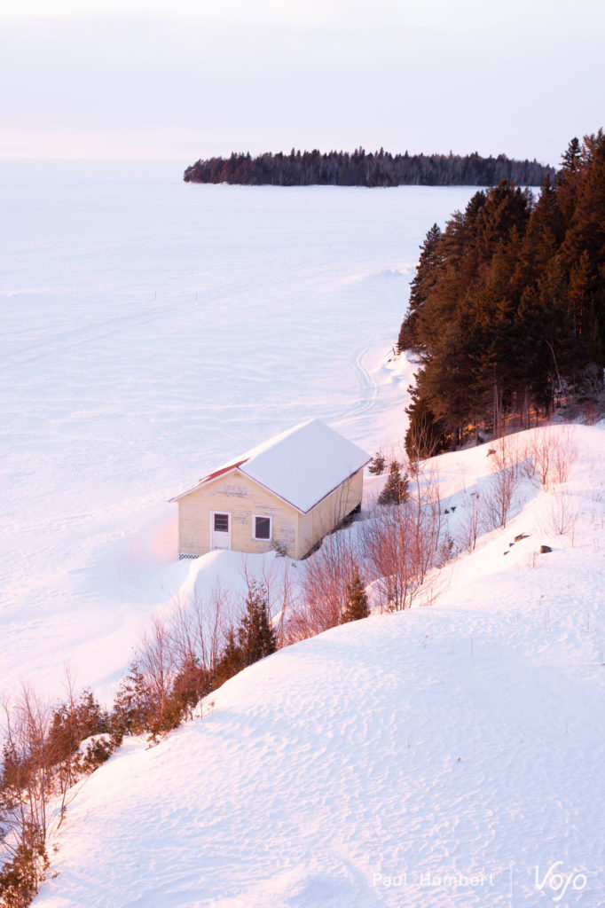 Le lac compte d’innombrables cabanes de pêche qu’on rejoint en fat bikes (il paraît), ou en motoneige (surtout) pour une expérience paisible en quête de poisson.