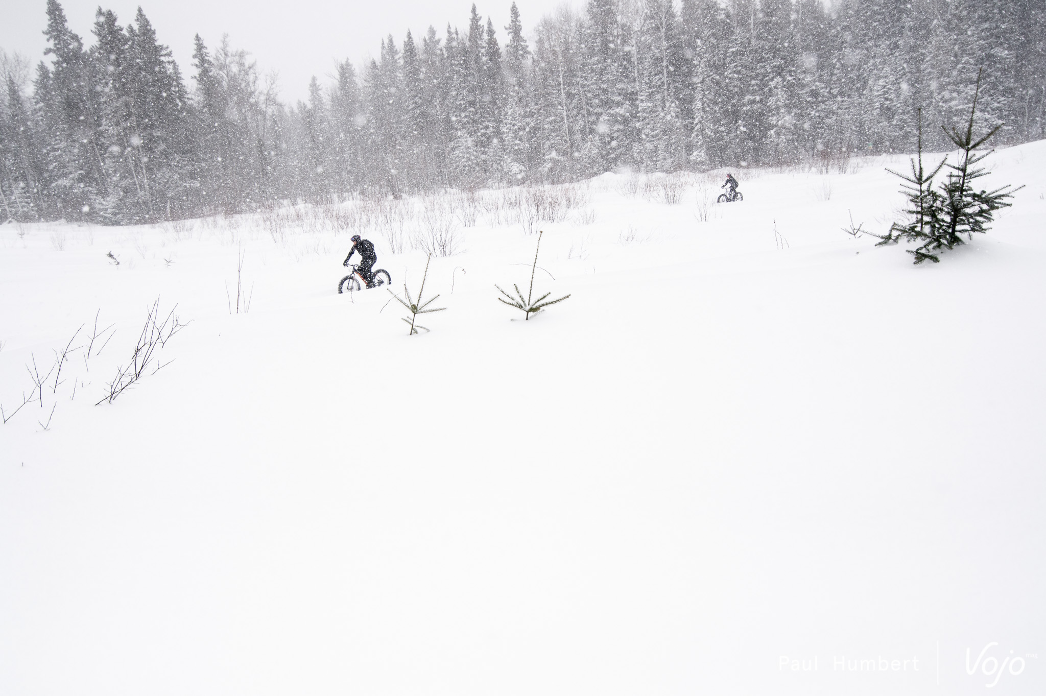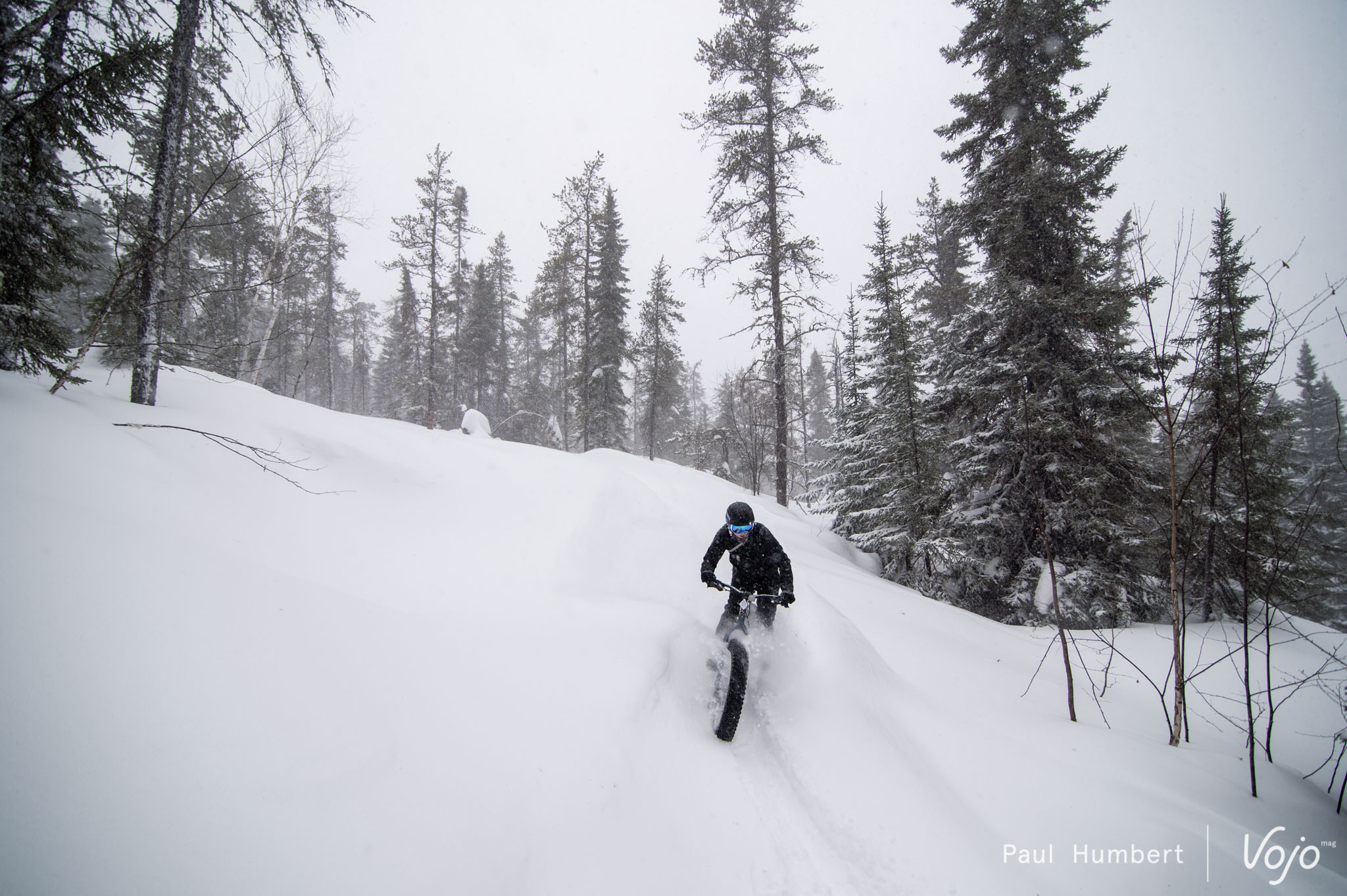 Dans la tempête, rien ne nous arrête. Nous étions tout simplement aux anges, survoltés devant ces reliefs, ces forêts et cette ambiance unique. Les VTTistes que nous sommes avons mis un bon moment avant de raccrocher nos sourires (on se demande d’ailleurs s’ils nous ont vraiment quittés). Les sensations sont uniques mais finalement bien proches d’un VTT classique. On ajoute toutefois un pilotage hasardeux qui nous vaut quelques plongeons dans des mètres de neige, mais comme le rappellent très bien les locaux : « C’est l’fun ! »