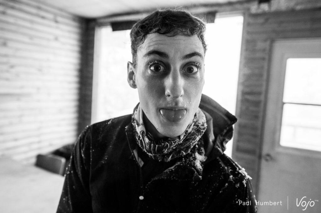 Après quelques heures de voyage et un trajet reliant Montreal au bord du lac, c’est face au coucher de soleil qu’on retrouve notre équipe et notre guide. Justement, notre petite équipe de quatre se connait sans se connaître puisque tout le monde a pu échanger pendant notre préparation dans une discussion baptisée « l’âge de glace » sur Messenger quelques semaines plus tôt. C’est Hugues qui nous permet d’y voir plus clair dans nos valises : il fait froid au Québec, mais inutile de faire n’importe quoi.