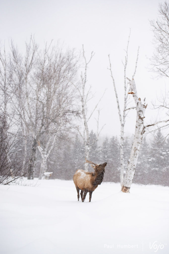 Dans notre cas, les conditions météo ont ajouté une couche de sucre glace sur une petite surprise : nous sommes partis à 4 avec un guide à bord d’un 4×4 pour traverser le zoo, à notre rythme, en pleine tempête. Une expérience unique où les photographes que nous sommes se laissent rêver à des aventures en compagnie de Vincent Munier.