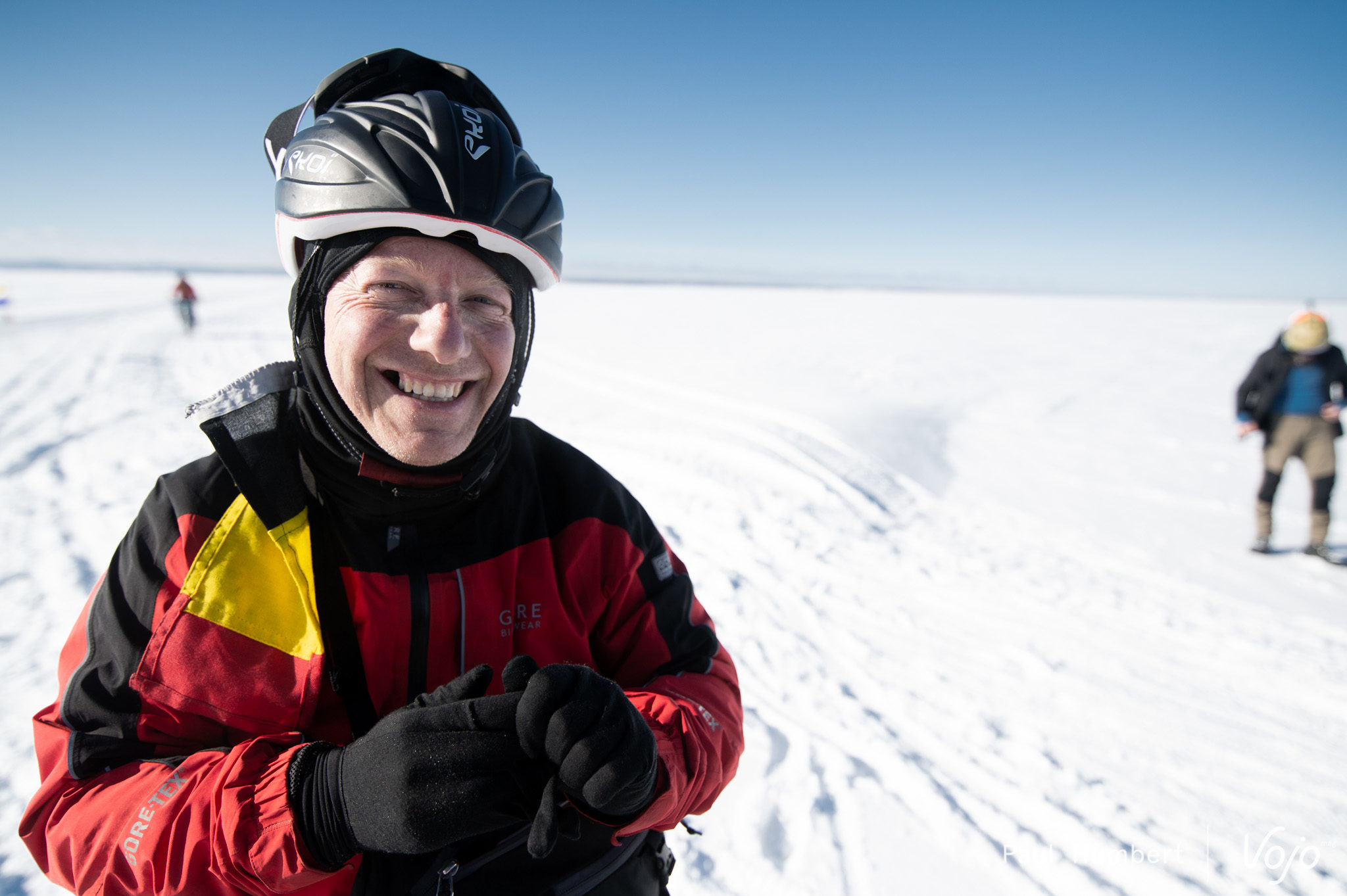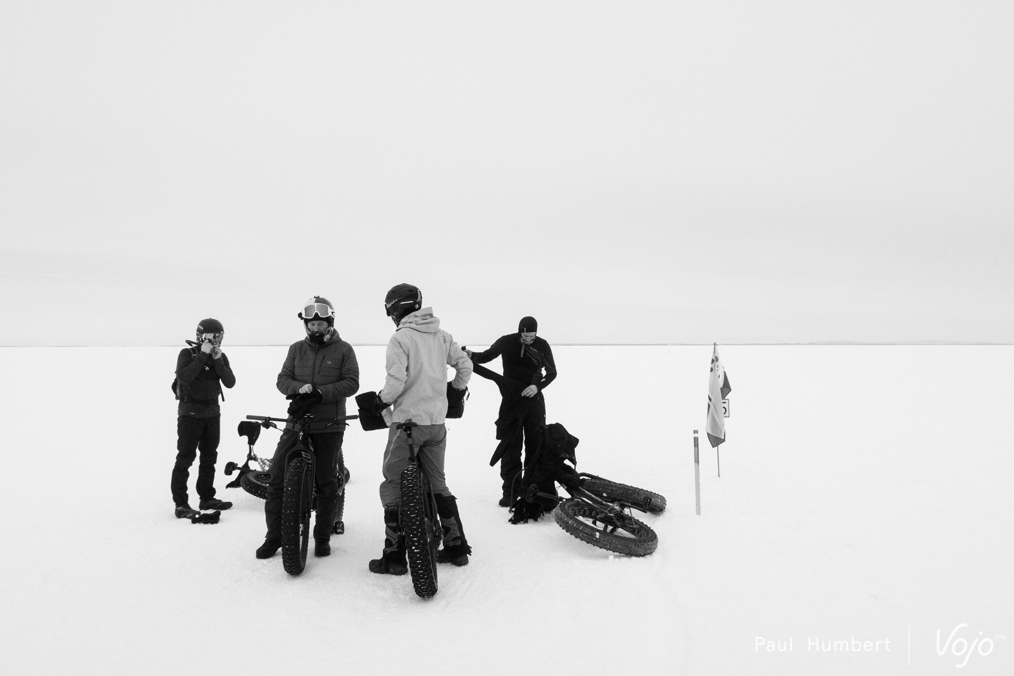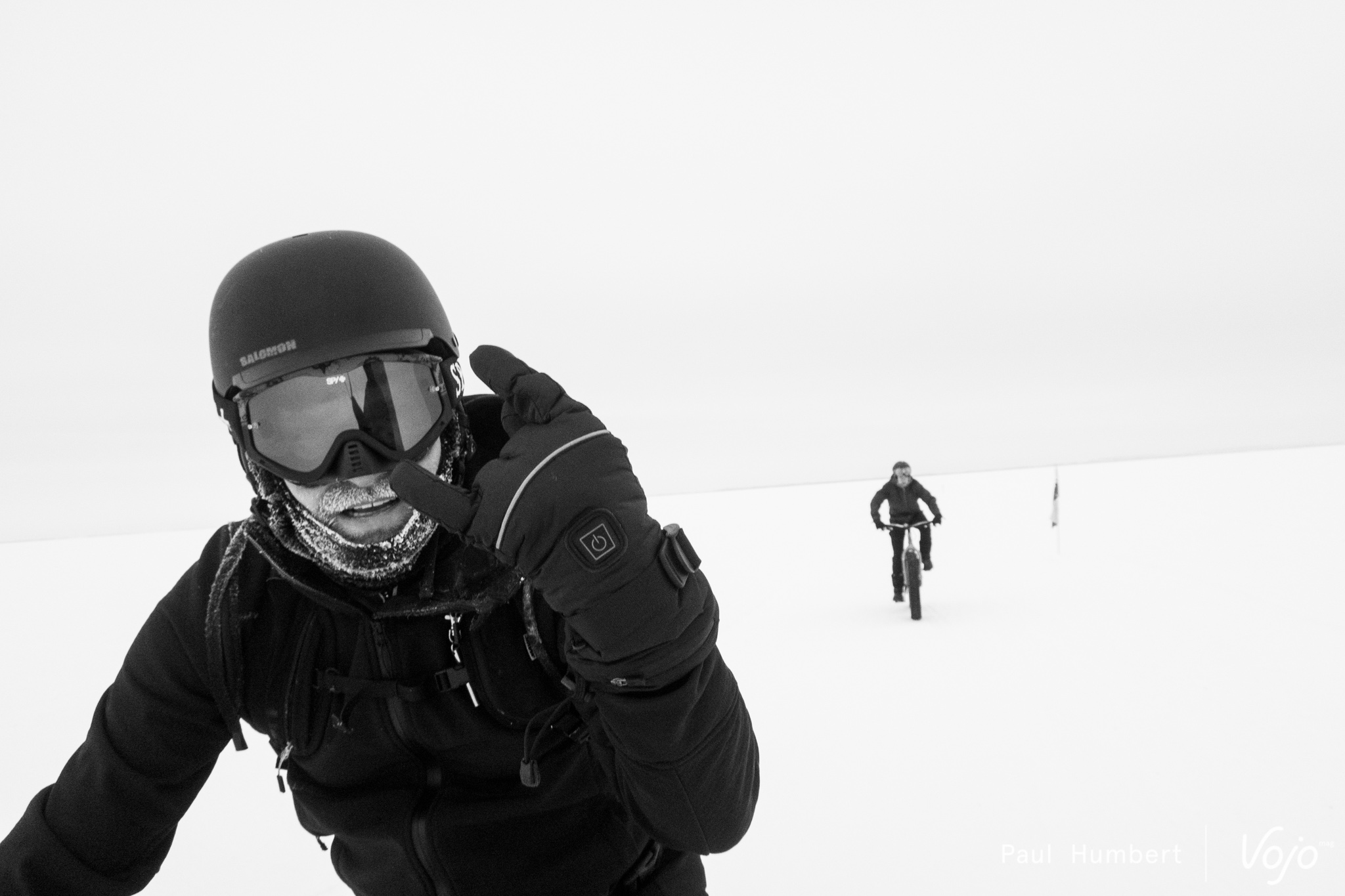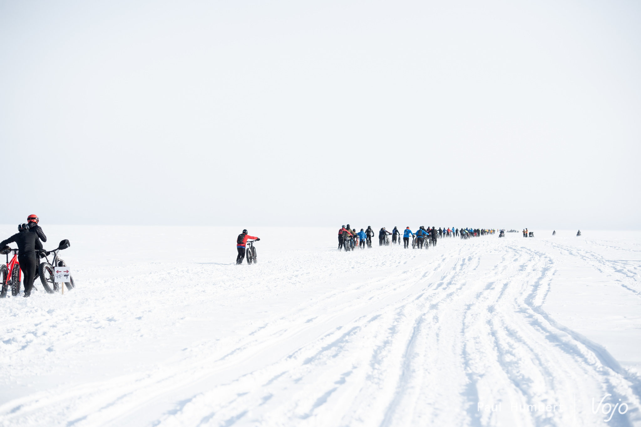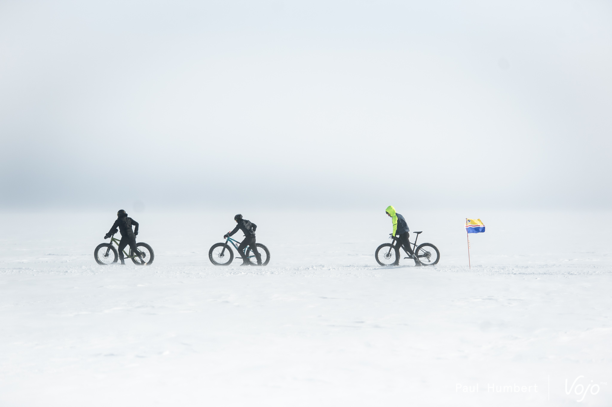 Cette traversée est unique à plus d’un titre, mais c’est surtout le seul moment de l’année où des cyclistes peuvent se lancer sur l’étendue givrée en toute sécurité : loin des crevasses et protégés par des motoneiges en patrouille.