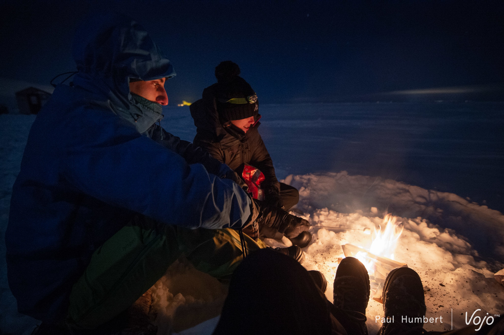 Nos hôtes ont tout prévu pour nous, et après un repas lyophilisé avalé avec appétit et quelques marshmallow grillés, on file se glisser dans nos gros sacs de couchages. On se serre dans nos sacs de couchage, habillés, une bouillotte entre les jambes et les chaussons de nos bottes avec nous pour une nuit de Saint Valentin que personne n’est près d’oublier !