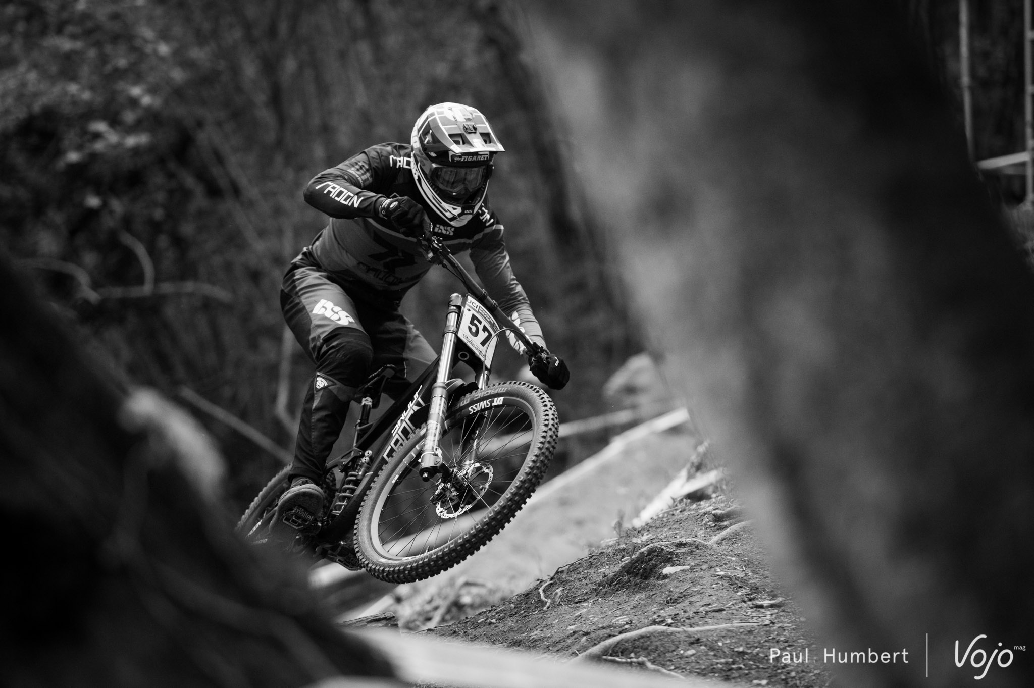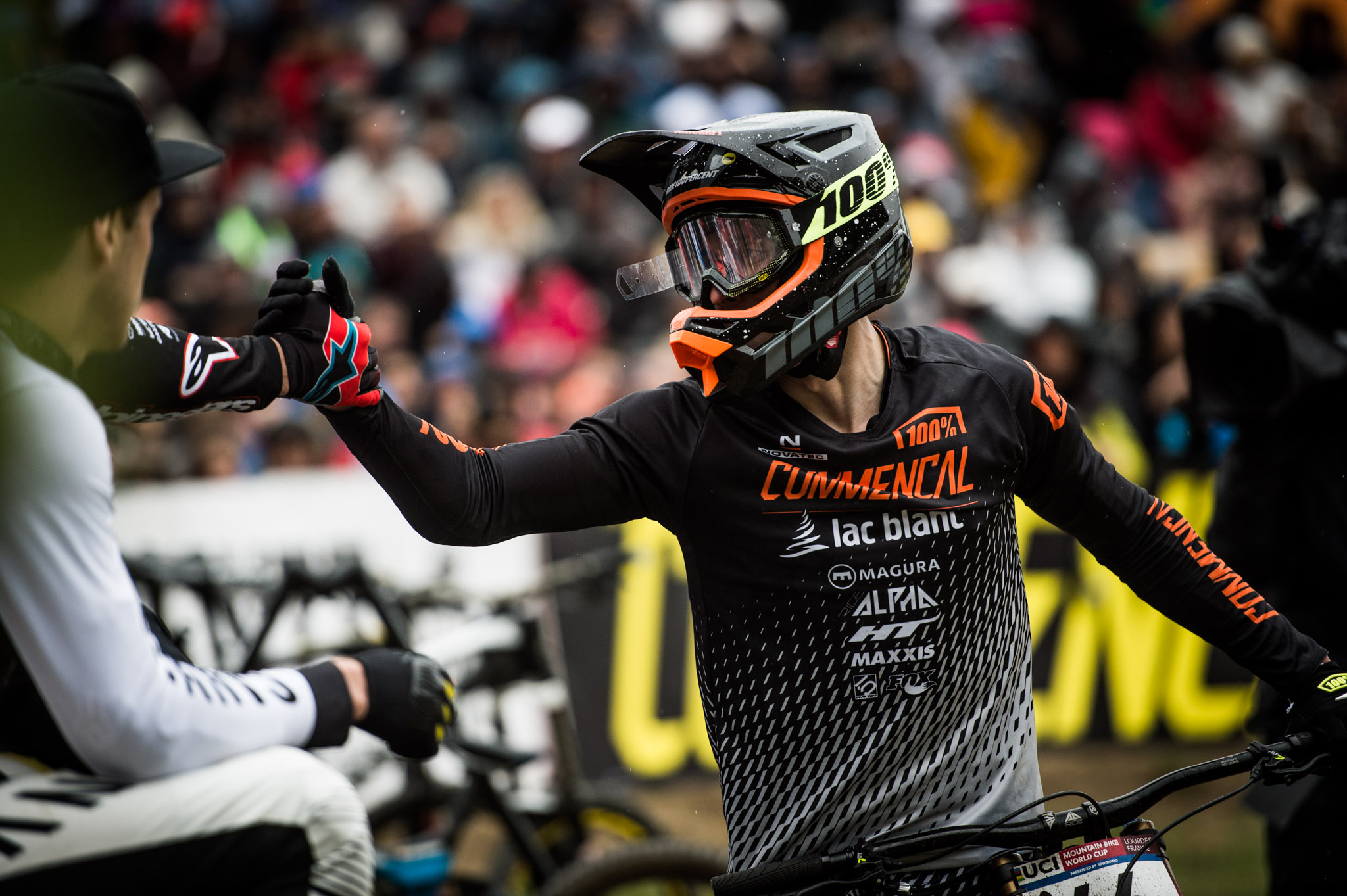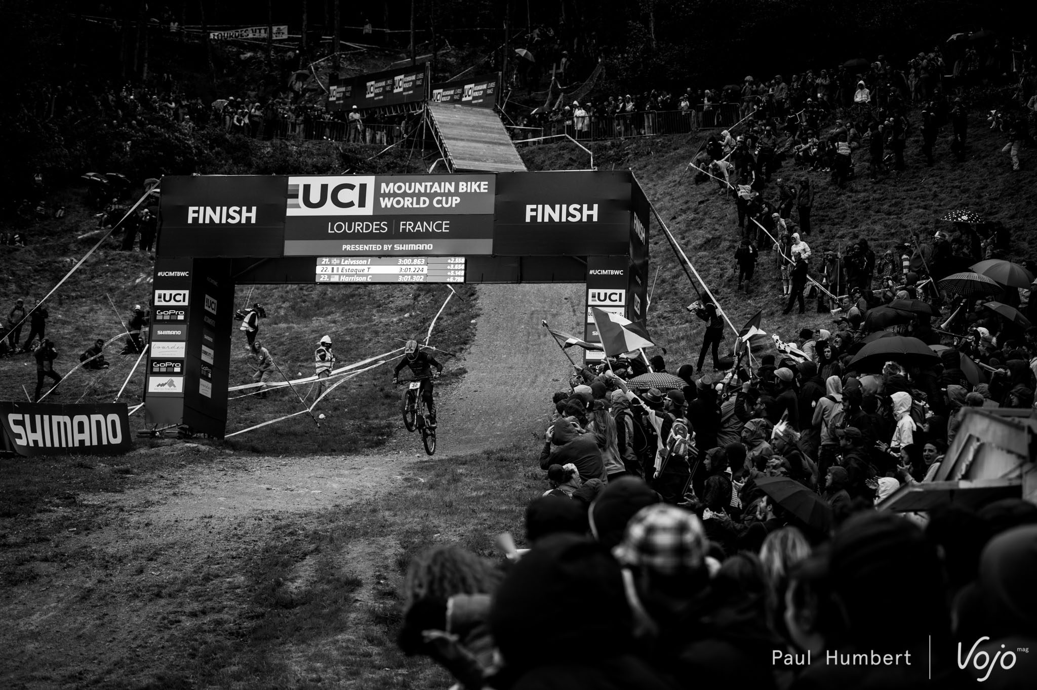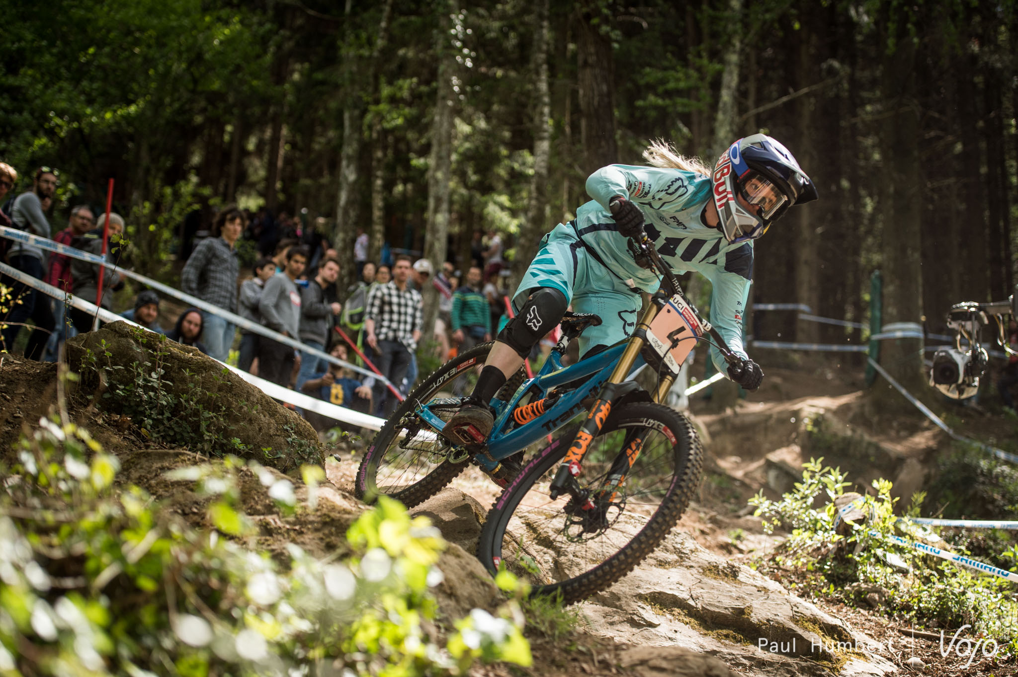 Tous les pilotes se cassent les dents sur le chrono et on comprend que plus personne ne pourra la détrôner quand des pilotes comme Danny Hart ou Rémi Thirion se voient relégués à 15 secondes dès le premier chrono intermédiaire. Aaron Gwin paie lui aussi les frais de la météo, chute et est disqualifié en remontant sur la piste plus loin qu’à l’endroit où il l’a quittée.