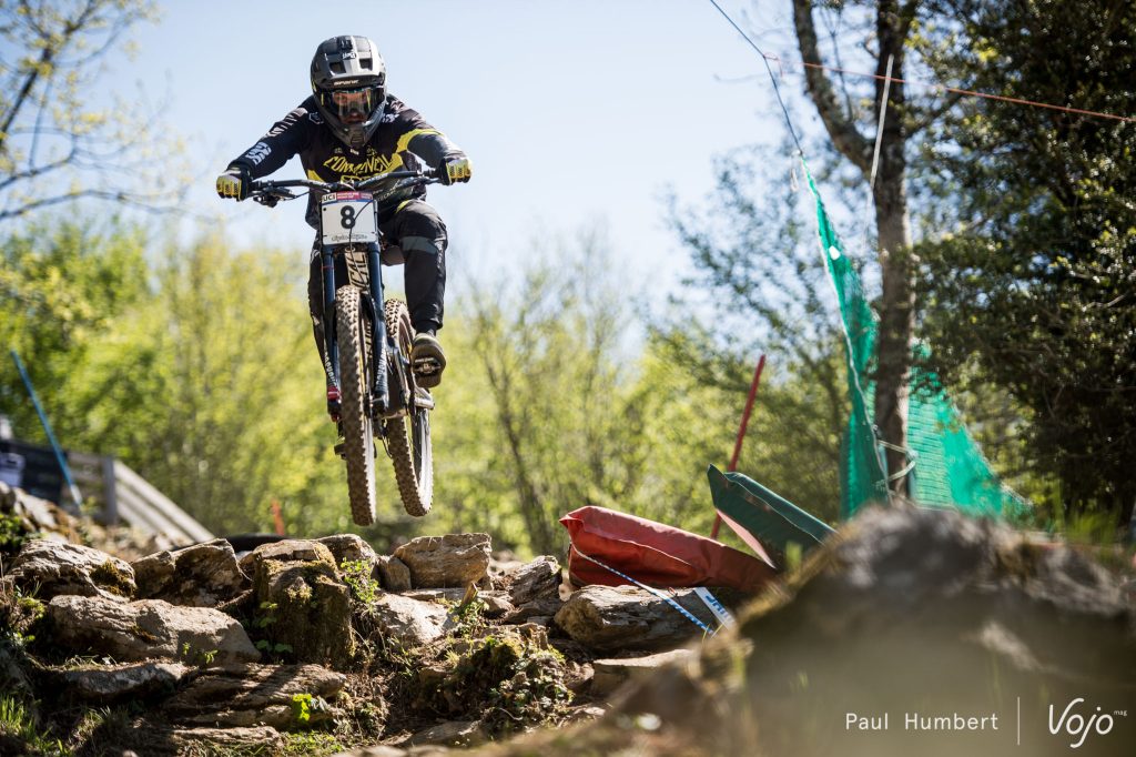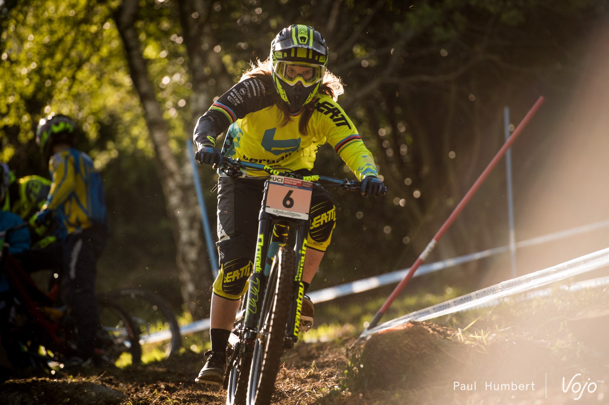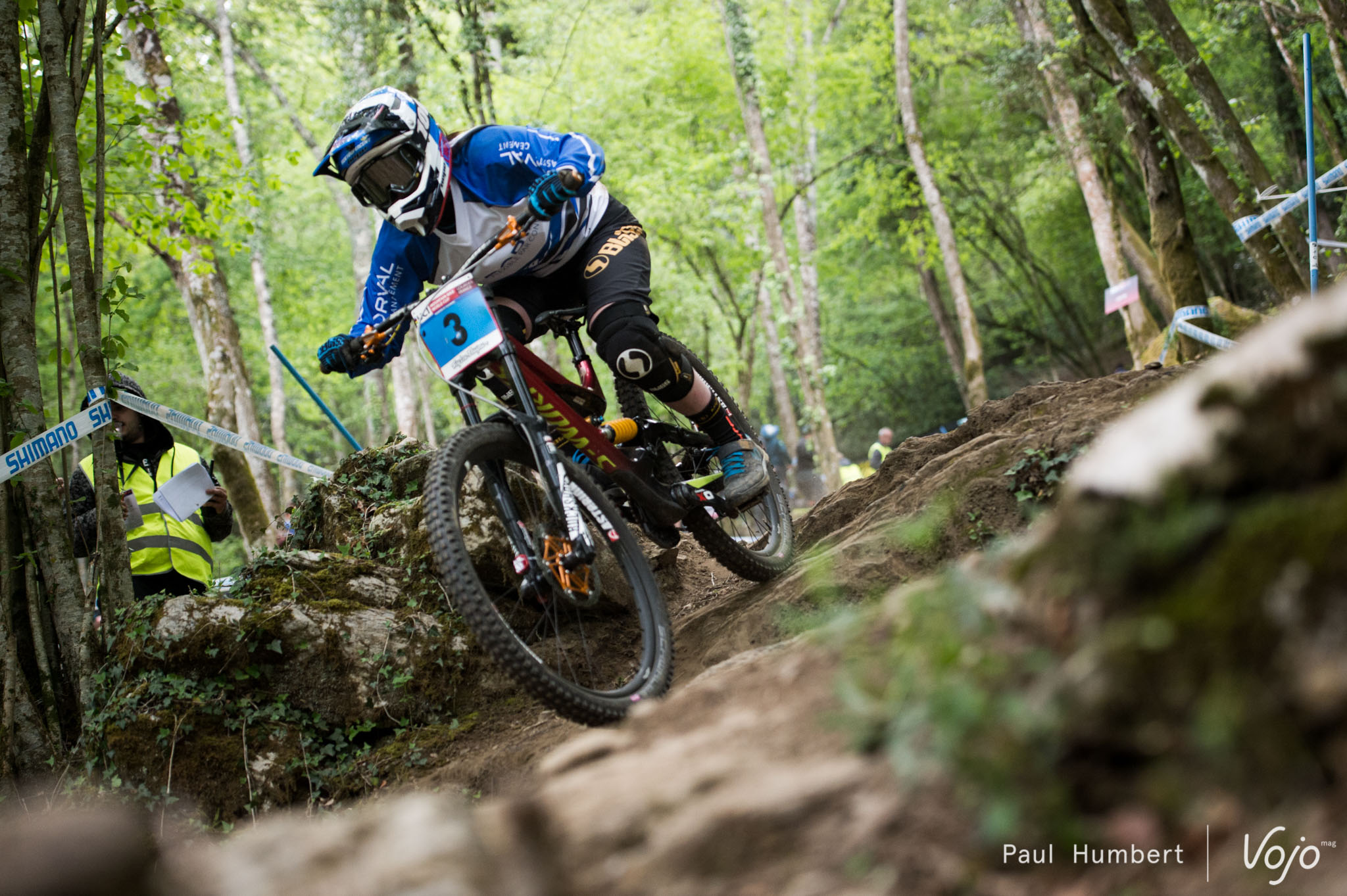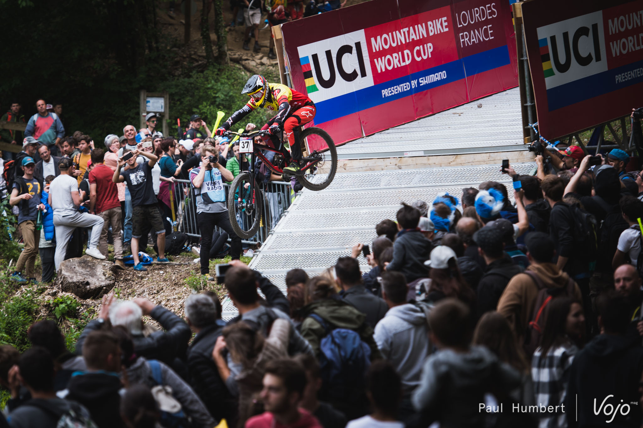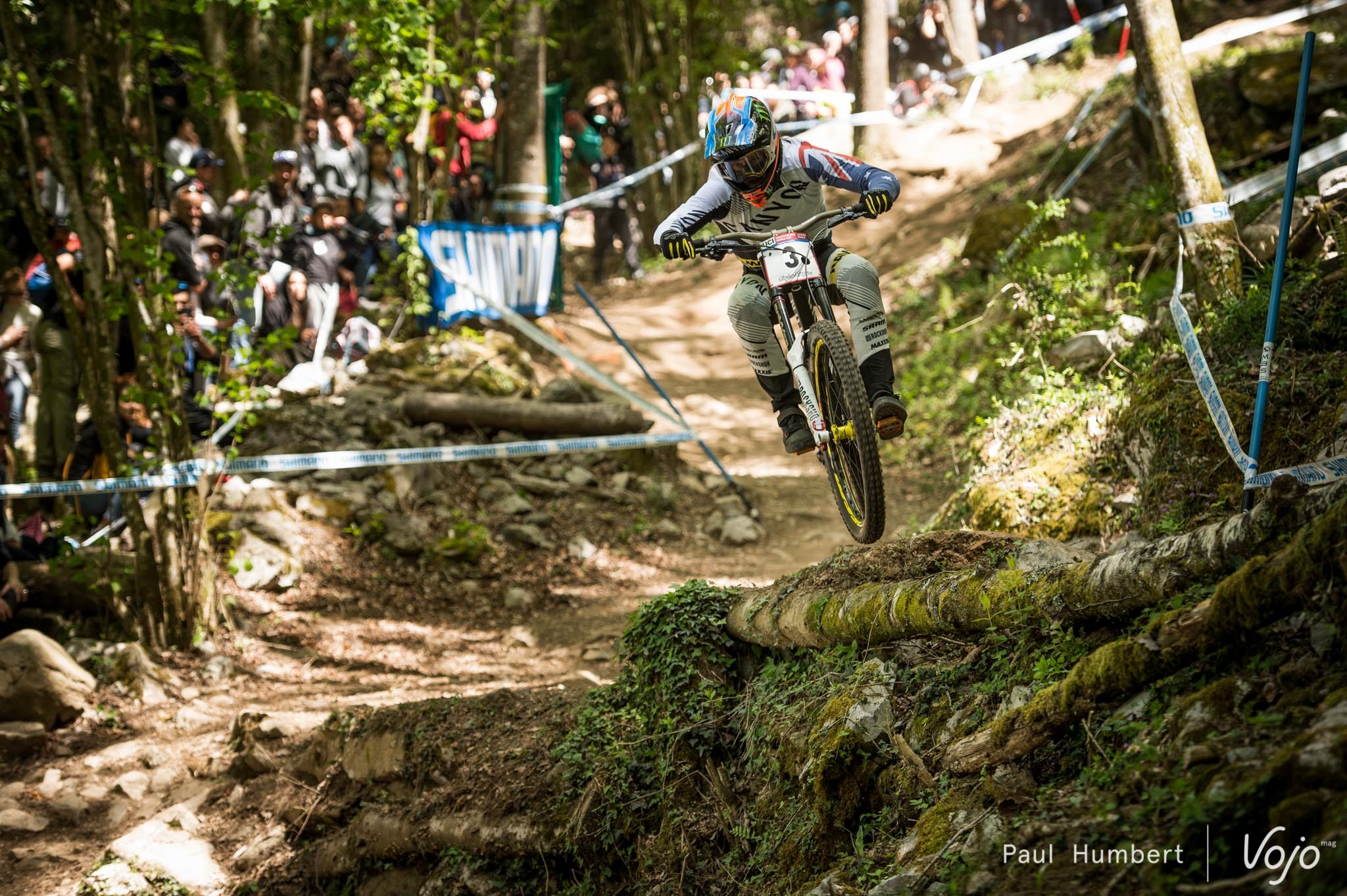 Tous les pilotes se cassent les dents sur le chrono et on comprend que plus personne ne pourra la détrôner quand des pilotes comme Danny Hart ou Rémi Thirion se voient relégués à 15 secondes dès le premier chrono intermédiaire. Aaron Gwin paie lui aussi les frais de la météo, chute et est disqualifié en remontant sur la piste plus loin qu’à l’endroit où il l’a quittée.