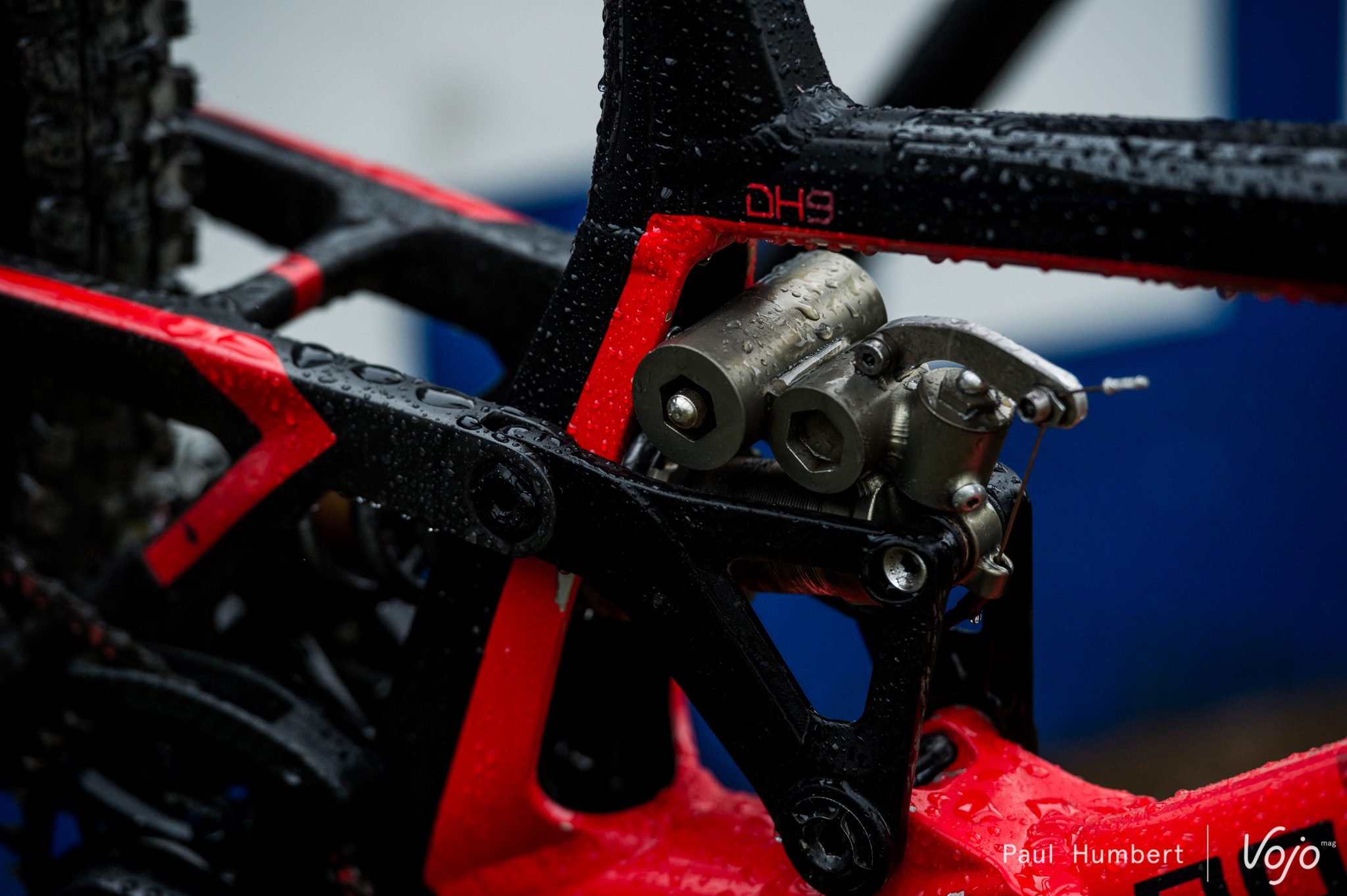 Le vélo d’Alexandre Fayolle a été préparé par son mécano, Hugues, et nous vous préparons rapidement un petit focus sur son amortisseur « maison », complètement optimisé pour le vélo et son pilote.