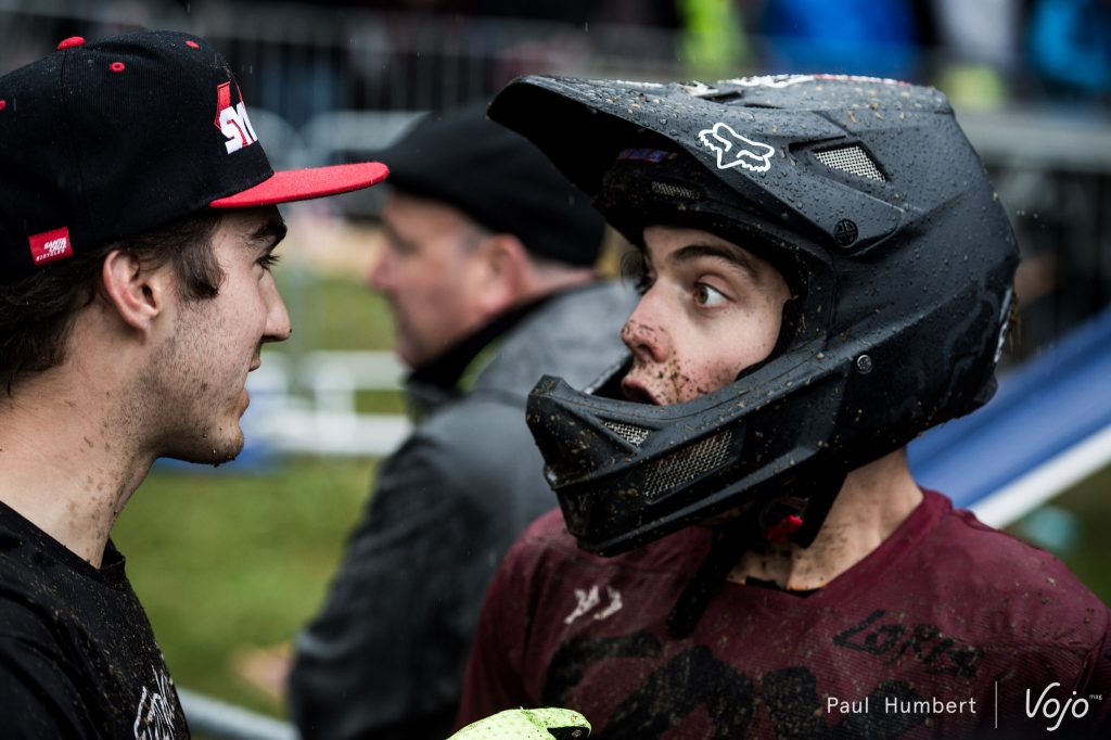 Tout le monde était prévenu, il risque de pleuvoir au courant de l’après-midi. Tous les mécanos montaient un jeu de pneus secs sur le vélo des pilotes et un jeu de muds recoupés sur une autre paire de roue. Deux français ouvrent le chrono et la progression de la course suit son cours. Il faudra attendre le run de Loris Revelli pour passer sous la barre des 3 minutes.